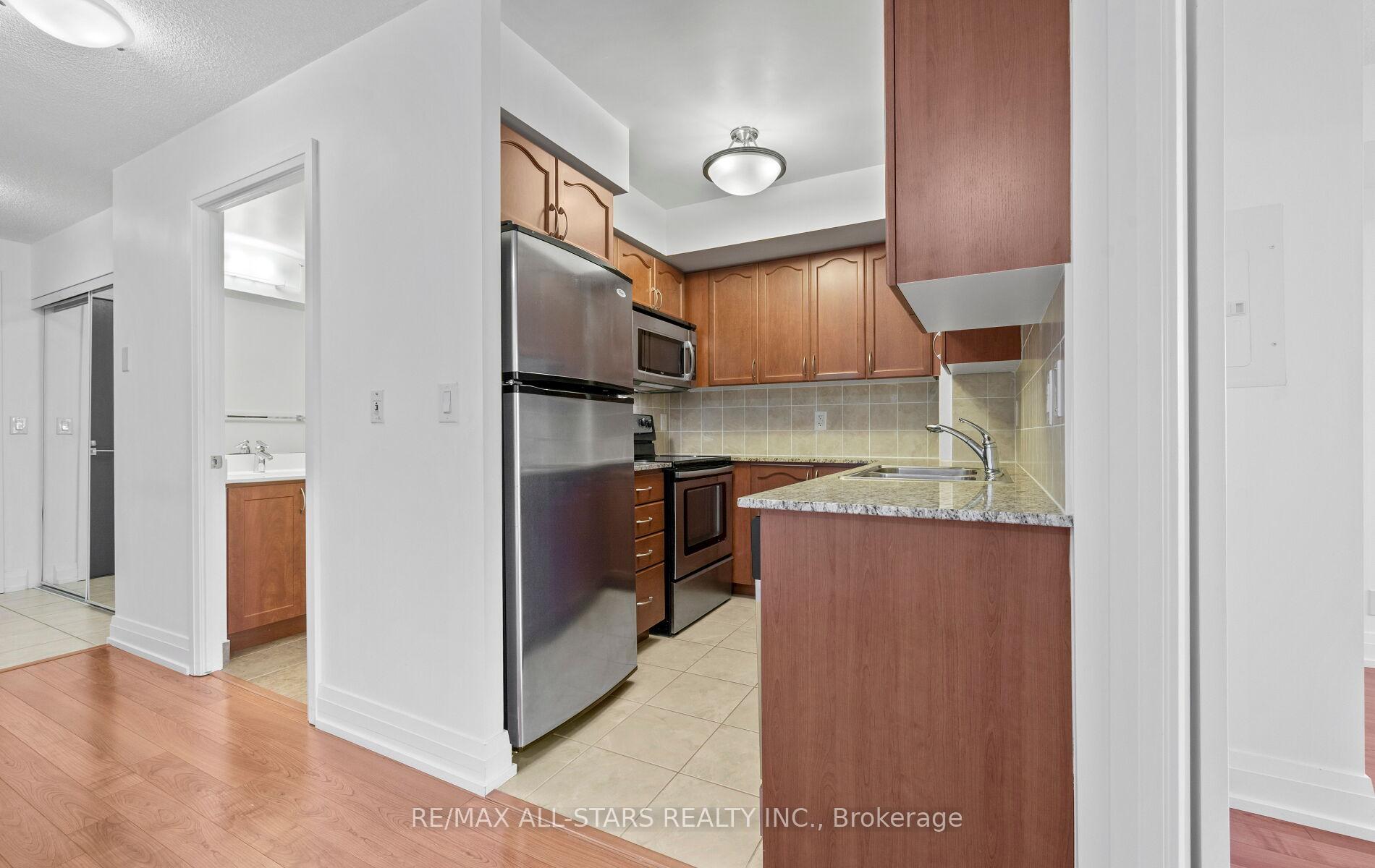 Welcome home to unit 703, a beautifully well-maintained, spacious one bedroom unit at desirable 1060 Sheppard Avenue West! This sunny, open-concept condo unit is situated just across from Sheppard West subway and all conveniences in the heart of North York! It offers an unbeatable value with urban living and convenience at its finest. The unit features a bright and functional layout with no wasted space, including an inviting foyer, a large living and dining area where a formal dining table and living furniture can be seamlessly integrated. The living space flows onto a large 80 ft (approx.) private balcony, overlooking a quiet courtyard. The modern kitchen boasts stainless steel appliances, granite countertops with a double sink, neutral backsplash and ample neutral wood cabinetry. A sun-filled and large primary bedroom comes complete with a large closet and grand window with unobstructed Western views overlooking the courtyard. This unit also offers a full-size 4-piece bathroom, in-suite laundry and owned parking and locker. Enjoy a full range of top-notch building amenities, including a fitness centre, an indoor pool, sauna, golf simulator, party room, guest suites, plenty of visitor parking and 24-hour concierge. Located directly across from the subway & just minutes to Go train/transit, 401, Yorkdale Mall, Downsview Park, hospital, York University, all retail, restaurants++- all convenience are at your door step! The perfect fit for first time buyers, professionals, investors or down-sizers. This one has it all!