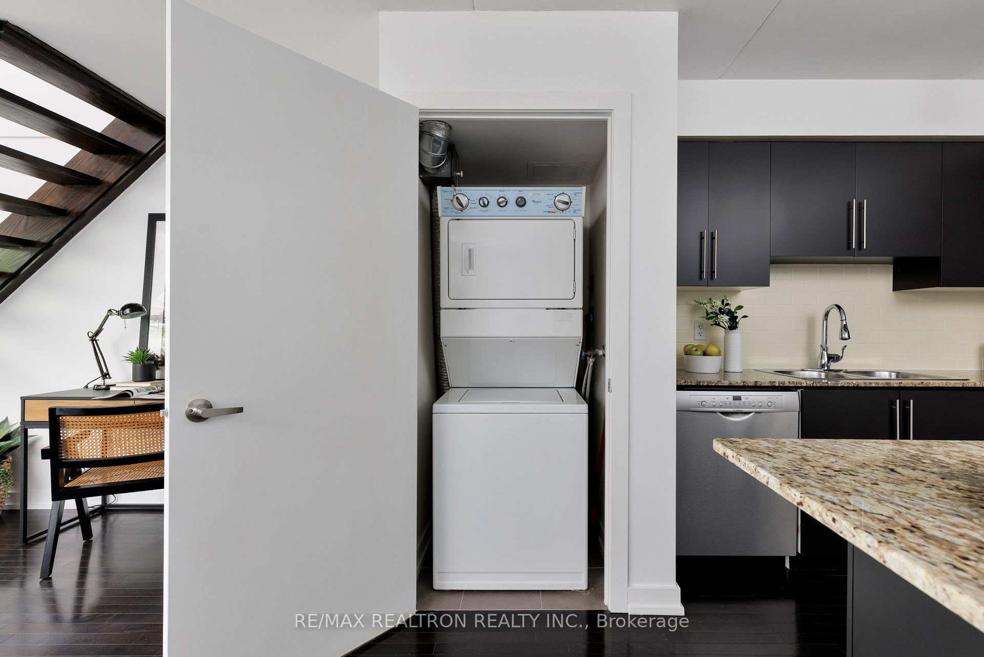 Welcome to the iconic Foundry Lofts, where historic architecture meets modern urban living. This striking two-storey, two-bedroom, two-bath residence is filled with natural light and rich in authentic character. Housed within the celebrated Foundry building, the space showcases soaring ceilings, dramatic archways, and original exposed brick that create an unforgettable first impression. Freshly painted and completely move-in ready, the open-concept main level features warm hardwood floors and a beautifully renovated kitchen with granite countertops, custom cabinetry, and a breakfast island that anchors the space for both everyday living and entertaining. Oversized industrial-style windows frame the living and dining areas, highlighting the building's heritage while flooding the home with sunlight. A powder room and in-suite laundry complete the main floor for added convenience.Upstairs, two generously sized bedrooms offer privacy and comfort, complemented by a sleek four-piece bathroom. The second bedroom's vaulted ceiling adds architectural flair and an airy, loft-like feel.The unit includes one underground parking space and a locker, with plenty of indoor visitor parking for guests. Residents enjoy access to a spectacular 6,000 sq. ft. indoor atrium-style courtyard with Wi-Fi and lounge seating, along with exceptional amenities including a gym, party room, conference space, and private movie theatre.Step outside and you're immersed in one of the city's most creative and evolving neighbourhoods, moments from Geary Avenue, The Junction, and St. Clair West. From coffee dates at Balzac's to dinner spots, galleries, and easy transit connections, this is loft living with real energy and personality. Historic bones, modern comfort, and a location that keeps getting better.