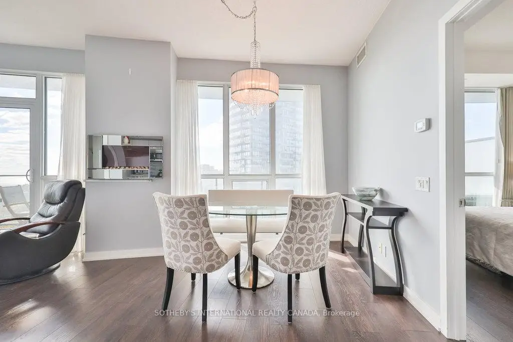 Discover the joys of lakeside living at Toronto's Westlake condo village community in South Etobicoke! Situated on the desirable 18th floor, the suite offers the ideal balance of elevation and comfort - high enough to offer expansive views, yet low enough to enjoy reduced wind exposure and added day-to-day convenience. Flooded with natural light from floor-to-ceiling windows, offering breathtaking panoramic views of Lake Ontario and the Toronto skyline. The open-concept layout features 2 bedrooms and 2 bathrooms, complemented by 9 ceilings and a thoughtfully designed floor plan. The spacious entrance includes a generous double-sized closet and convenient ensuite laundry with a full-size washer and dryer. Past the foyer, the upgraded kitchen, is perfect for cooking and entertaining, equipped with stainless steel appliances, quartz countertops, and breakfast bar seating for three.The open concept dining and living room offer unparalleled views of the Lake and allow for a generous entertaining space. The second bedroom, currently utilized as a den, is spacious enough for a queen bed and offers ample storage. Amazing views continue into the large Primary suite, with a full size ensuite and walk-in closet round out the suite. As part of the Westlake Village complex, enjoy Club W - with over 30,000 sq. ft. of amenities, including a concierge, indoor pool, a fitness centre with squash & racquetball courts, yoga/pilates studio, a children's room, a theatre room, a games room, and much more! A village unto itself, the Westlake community has easy access to essential amenities, with Metro, Shoppers, LCBO, and more just an elevator ride away. Proximity to the Downtown core is a snap, with streetcars, buses, GO transit, and major highways, all at your doorstep. With two international airports less than 20 minutes away. It's a fantastic offering in the city!