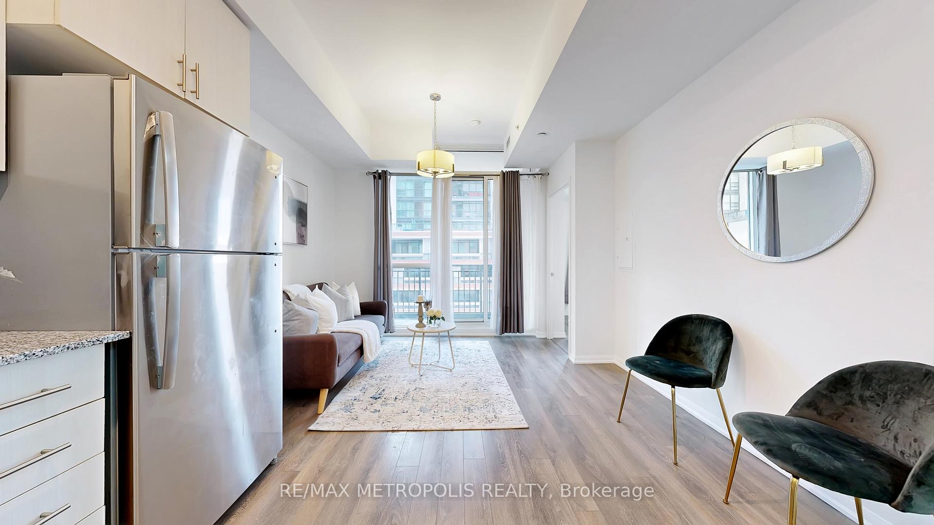 Experience Urban Elegance: Move-In Ready 1-Bed Condo at Treviso III! Discover the ideal blend of comfort, style, and convenience in this well-maintained one-bedroom, one-bathroom condo at the exceptional Treviso III community. Designed with an open-concept layout, the living and dining areas are bathed in abundant natural light, highlighting sleek, modern vinyl flooring and freshly painted interiors throughout. The modern kitchen is a chef's delight, with stainless steel appliances (including an over-the-top oven, 2024), elegant granite countertops, and ample storage. Step out onto your private, south-facing terrace for a perfect spot to relax and take in the serene views. The spacious bedroom offers a large window and generous closet space, ensuring a comfortable sanctuary. Enjoy unparalleled access to amenities, including a rooftop outdoor pool, communal BBQ area, gym, party room, games room, entertainment room, sauna, pet grooming room and 24/7 concierge. This condo comes with additional storage locker and one parking spot. Located within walking distance of the Lawrence Subway station, Yorkdale Mall, Starbucks, Shoppers Drug Mart, Fortinos, parks, schools, and a variety of restaurants, everything you need is just steps away. With easy access to TTC and major highways (400/410), your daily commute will be seamless. Children park and daycare are right next to the building. Perfectly suited for anyone seeking a vibrant lifestyle, this well-maintained unit features upgraded fixtures, in-suite washer and dryer (2024), and is truly move-in ready. Priced to sell ! Don't miss out on this opportunity!
