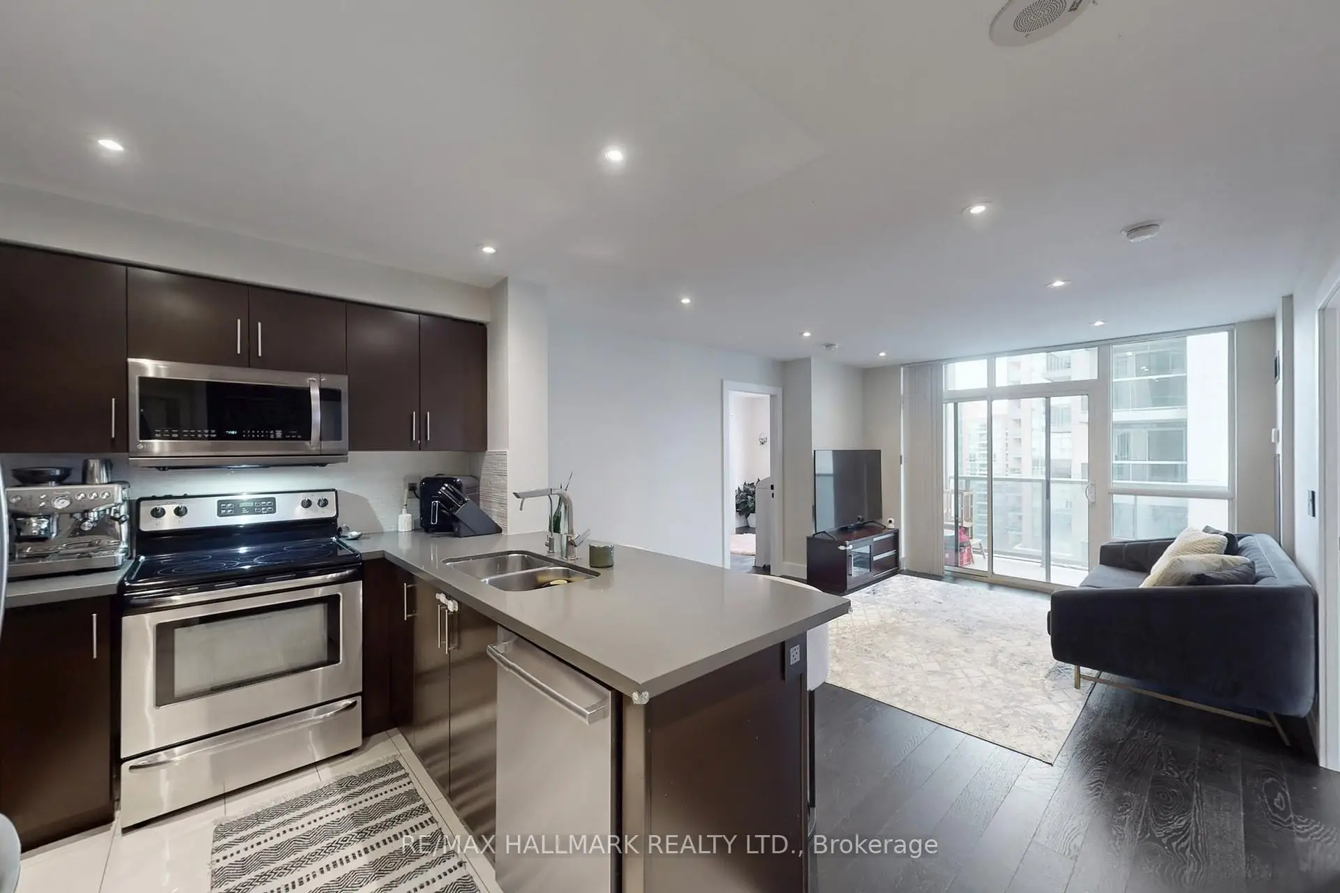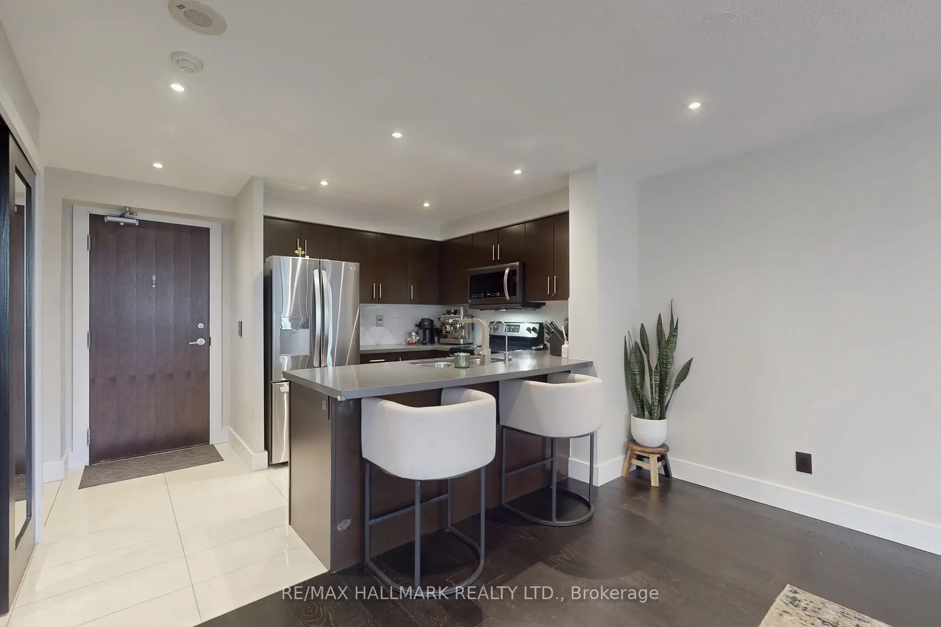 Welcome to 3 Michael Power Place Suite 1002, an inviting, sun-filled corner suite in the heart of Islington Village. Just an 8-minute walk to Islington Subway Station, this highly desirable location offers seamless access to transit, major highways, shops, cafés, and vibrant local dining.The beautifully maintained suite features dark espresso hardwood flooring, numerous pot lights, and an open-concept layout. The living room offers plenty of natural light with a walkout to the private balcony-perfect for morning coffee. The modern kitchen is open to the living area and showcases tile flooring, granite countertops, a breakfast bar, tile backsplash, and stainless steel appliances including a fridge, stove, dishwasher, and built-in microwave/hood vent.The spacious primary bedroom boasts hardwood floors, pot lights, a double closet with mirrored doors, and a private AC3-piece ensuite bath. The second bedroom also includes hardwood flooring, pot lights, and a double closet-ideal for guests, a home office, or a nursery. A well-appointed 4-piece main bathroom and convenient ensuite laundry with a stainless steel stacked washer/dryer complete the space. Residents enjoy excellent building amenities, including a 24-hour concierge, fitness center, indoor pool, party room, and more. With its tasteful neutral décor, abundant natural light, and unbeatable location, this bright and stylish unit is the perfect place to call home.