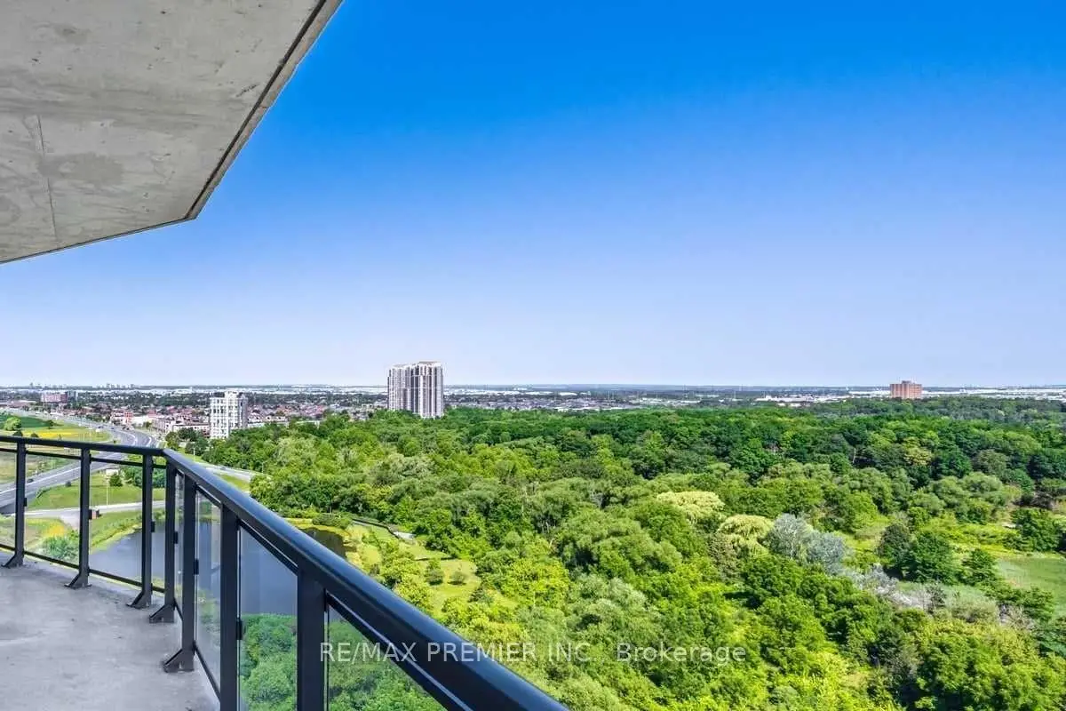 Spacious and modern 2+1 bedroom, 2 bathroom suite in the sought-after Lexington Condominium offering 966 sq/ft plus an expansive wraparound balcony. Bright, open-concept split bedroom layout with 9-foot ceilings, new flooring and freshly painted. The sizeable kitchen features stainless steel appliances, granite countertops, and a breakfast bar. The living area walks out to the wraparound balcony with stunning northwest exposure and unobstructed views of the protected Humber Arboretum. Large den ideal for a home office or dining area. Walk-in closets in both bedrooms and a full-sized laundry room with a standalone sink. Includes parking and locker. Building amenities include concierge, fitness centre, stylish lobby, and party room. Conveniently located close to public transit, Highway 427, GO Transit, Toronto Pearson Airport, University of Guelph Humber, Humber College, Woodbine Racetrack, shopping, and dining.