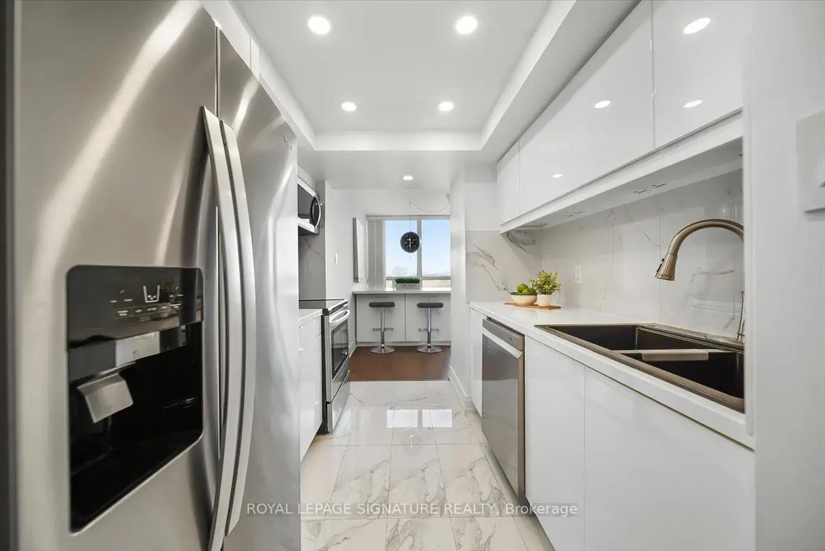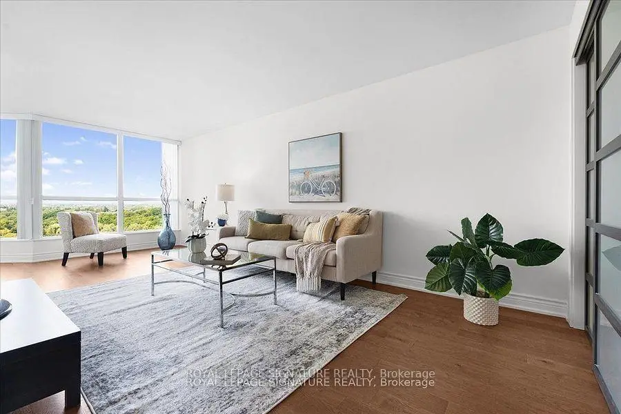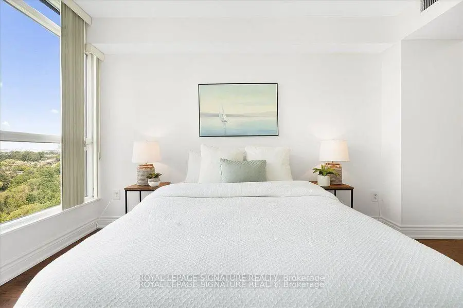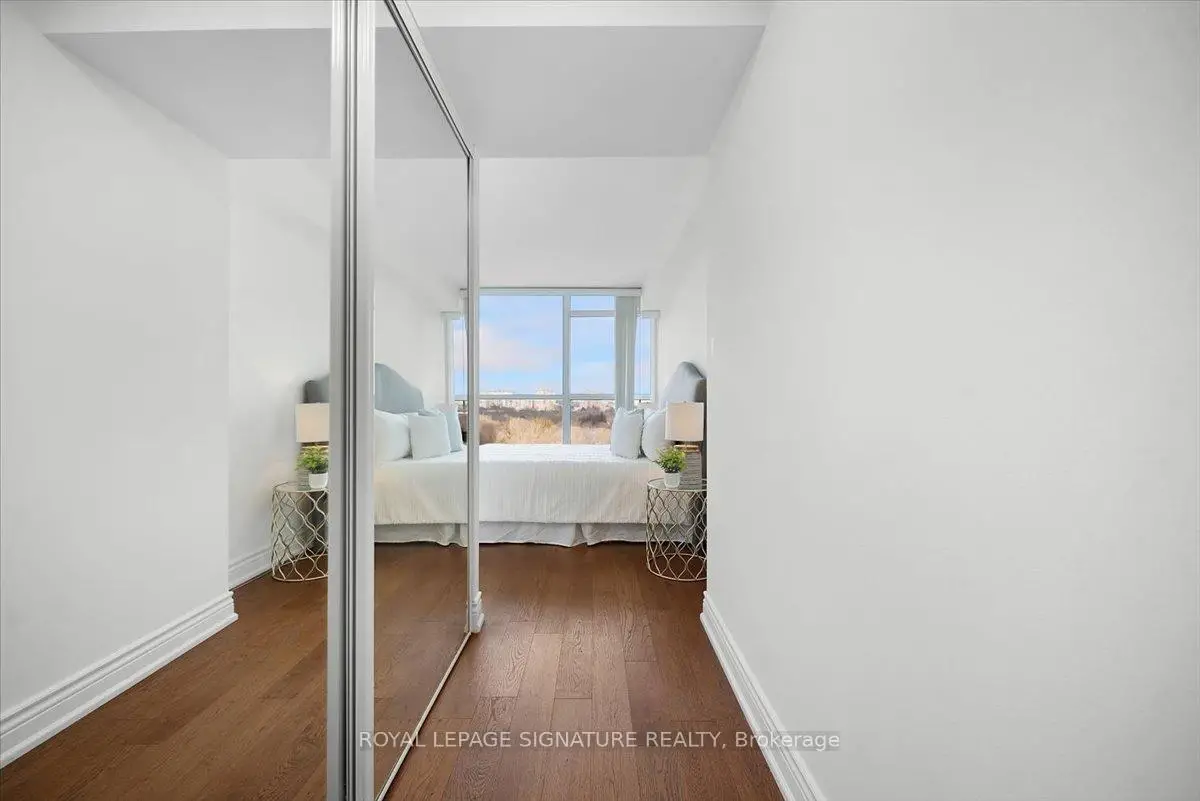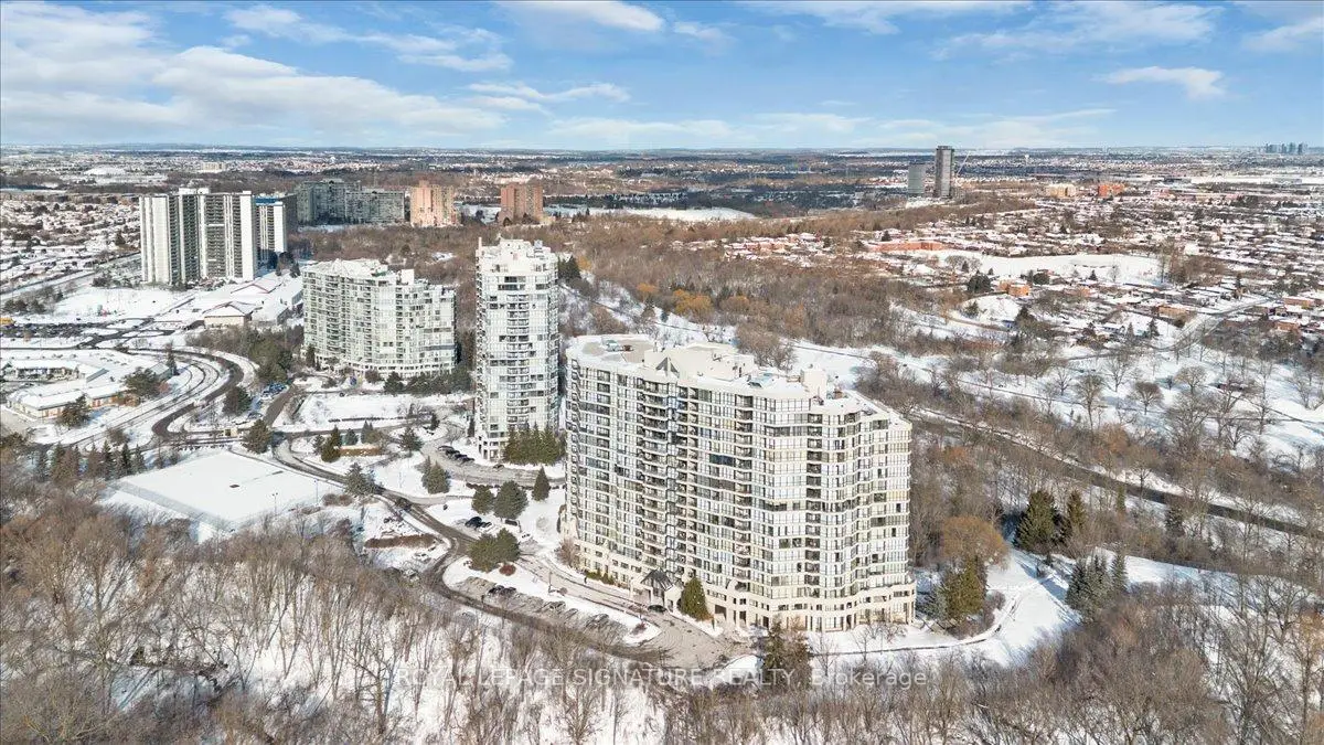 Spectacular 1,287 Sq. Ft. 2+1 Bedroom, 2 Full Bath Suite With 2 Parking Spaces And Locker In The Prestigious Platinum On The Humber - A 24-Hour Gated Community Surrounded By Lush Landscaping. Enjoy Breathtaking, Unobstructed Views Of The Humber River And Rowntree Mills Park From Your Kitchen, Dining Area, Or Private Balcony The Park Truly Feels Like Your Backyard. This Spacious Layout Features A Large Enclosed Den Ideal For A Home Office Or Guest Suite, Ensuite Laundry With Additional Storage Space, And Thoughtful Upgrades Throughout Including A Modern Kitchen With Island And Extra Cabinetry, Updated Bathrooms, Newer Engineered Hardwood Flooring, And Pot Lights. Resort-Style Amenities Include Indoor And Outdoor Pools, Hot Tub, Tennis And Squash Courts, Gym, Games Room, And Party Room. Outdoor Enthusiasts Will Love Direct Access To The Humber Trail-Perfect For Walking, Jogging, Cycling, Or A Scenic Ride All The Way To Lake Ontario. Exceptionally Located With Easy Access To The Newly Opened Finch West LRT, Offering Seamless Transit Across The City, Plus Close Proximity To York University, Humber College, Guelph-Humber University, Pearson International Airport, Highways 400, 401 & 407, And Major Shopping.