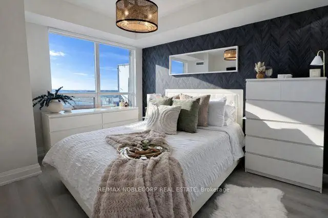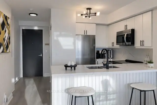 Welcome to 55 De Boers Dr. #506, a newly renovated and move-in ready 1 bedroom + den condo with modern finishes in the prime North York location! Bright open-concept layout with vinyl commercial grade flooring throughout, smooth ceilings throughout, contemporary lighting, large windows that bring in plenty of natural light and ample space for a full dining table, perfect for hosting. The modern kitchen features quartz countertops with waterfall, quartz backsplash, oversized island with breakfast bar, sleek white cabinetry with stainless steel appliances. Enjoy your coffee while relaxing and watching the unobstructed beautiful sunset views from the private oversized 97 sq ft balcony. The primary bedroom features a stylish feature wall, a walk-in closet and large window with clear views. A spacious den that easily functions as a home office or a second bedroom. Modern 4 pc bathroom with clean, updated finishes. Steps to Subway Station, TTC, minutes to Yorkdale Shopping Centre, Costco, York University, restaurants, shops, Highways 401 & 400 and much more! Condo building has full amenities including 24-hour concierge, gym, indoor pool, sauna, media and party room, business centre, guest suites, and visitor parking. Includes 1 parking, 1 locker, and all utilities except hydro. Excellent opportunity for first-time buyers or investors seeking value, location, and future potential