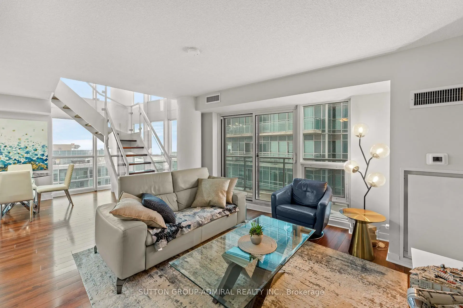 Spectacular SkyLofts luxury living in this bright and spacious corner suite offering approximately 1080 sq. ft. of thoughtfully designed space with soaring floor-to-ceiling windows and breathtaking panoramic views of the lake and city. The open-concept layout is perfect for entertaining, featuring a modern kitchen with a lake view right from the kitchen window and seamless flow into the living and dining areas. Enjoy outdoor living on the generous balcony and a truly maintenance-free lifestyle in a well-managed, amenity-rich building with rooftop terrace, outdoor pool, sauna, gym, media/theatre room, party and billiard rooms, and more. Ideally located in Mimico, steps to waterfront trails, transit, shops, and quick access to downtown.