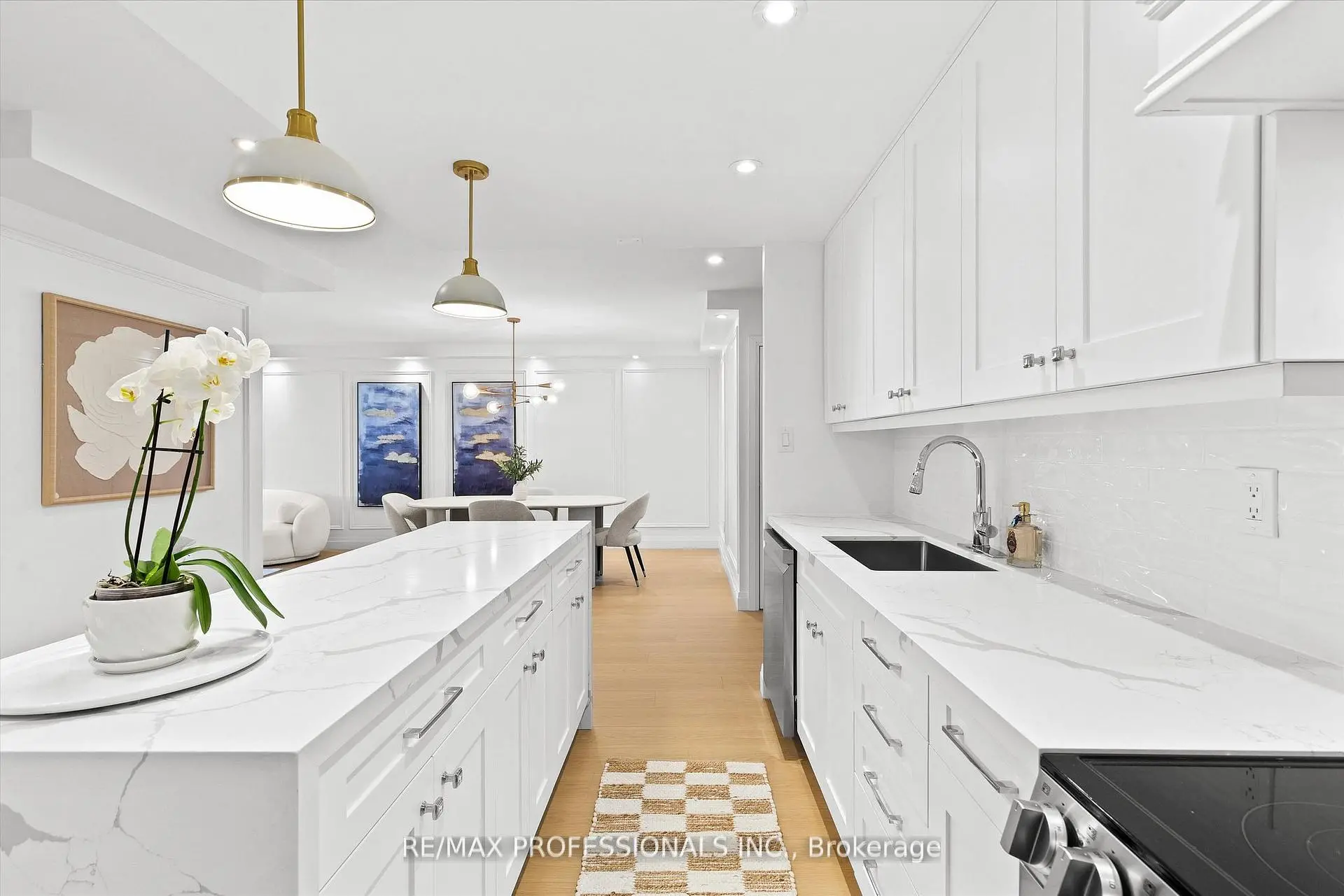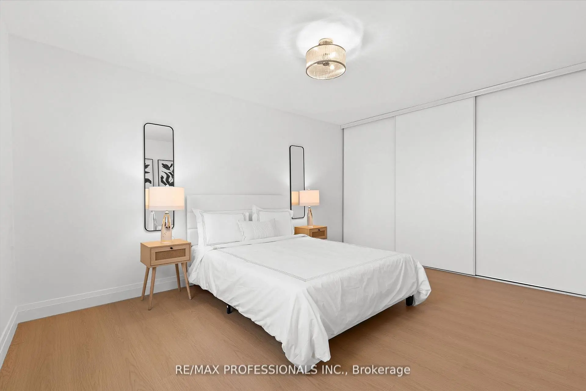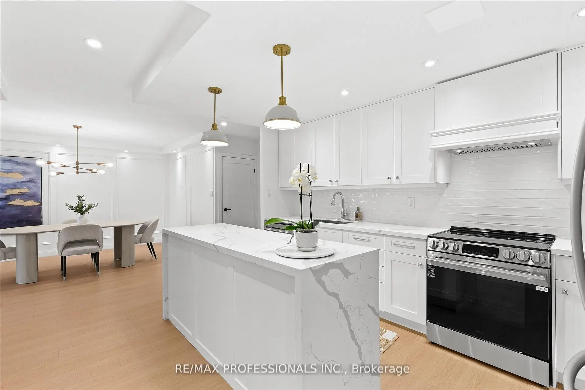 Welcome to this beautifully renovated, boutique-like 3-bedroom, 2-bathroom corner unit, offering over 1,100 square feet of modern living space. Flooded with natural light from multiple exposures, the layout feels open and airy the moment you walk in. The home features Canadian-made laminate floors throughout, elegant wainscoting, sleek pot lighting, and custom-built closets that maximize storage. The custom-designed, open-concept kitchen with a waterfall island is a true showstopper, complete with all-new appliances and refined quartz countertops-perfect for cooking, entertaining, and everyday living. Luxury is redefined in both bathrooms, featuring Italian-made tiles and tasteful modern finishes. Every room feels bright, spacious, and inviting. Fully updated from top to bottom, this move-in ready unit truly redefines luxury and comfort. Maintenance fees are all-inclusive, covering hydro, heat, water, air conditioning, Rogers cable, and high-speed unlimited internet. The building offers an impressive array of amenities, including indoor and outdoor pools, sauna, a newly renovated recreation center with gym, ping pong, squash court, golf simulator, party room, outdoor playground, basketball court, and tennis court. Ideally located next to top-rated schools and Centennial Park, with TTC at your doorstep and quick access to Highways 427, 401, and QEW, airport, shopping, golf, and more-just move in and enjoy!