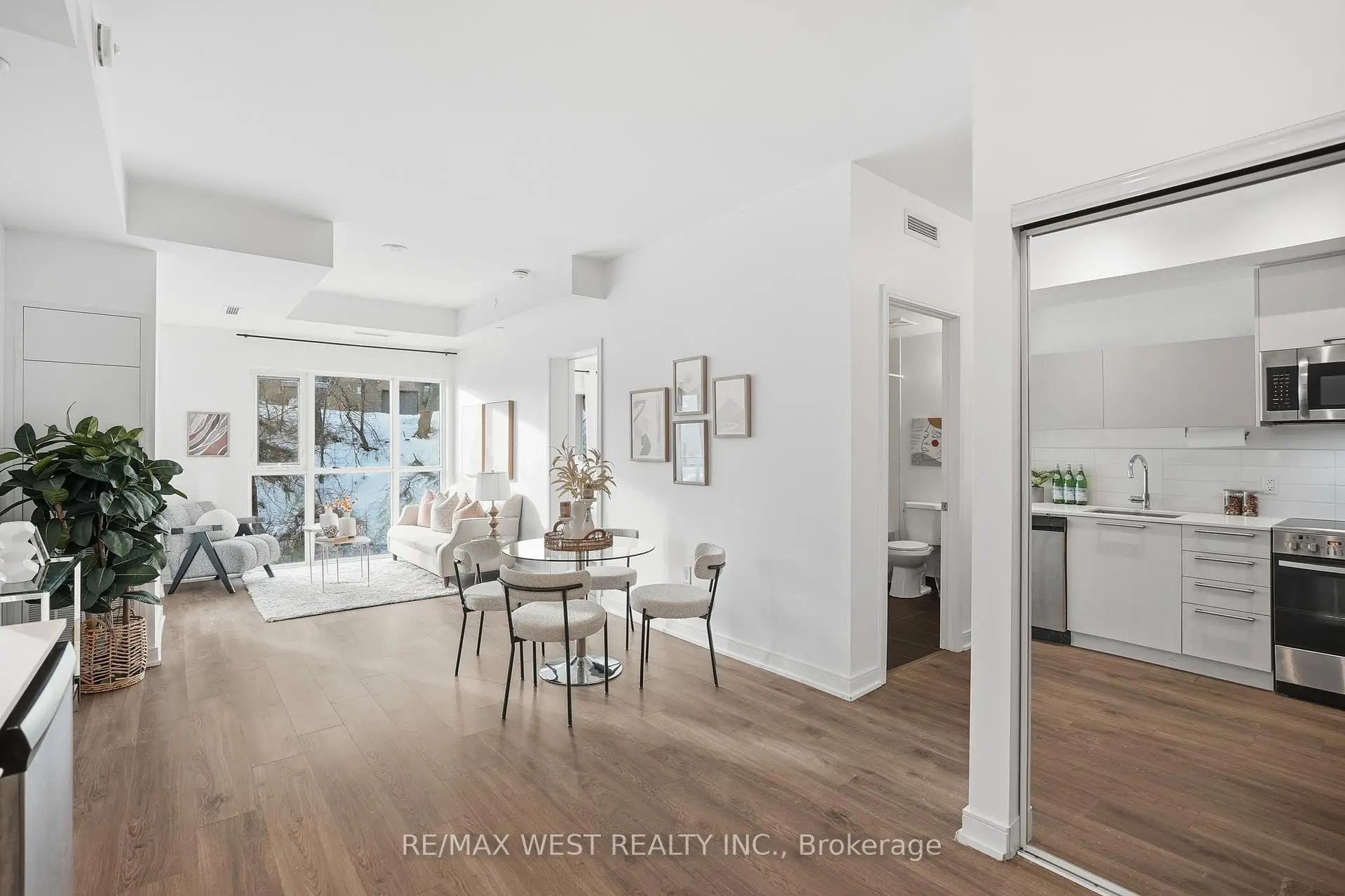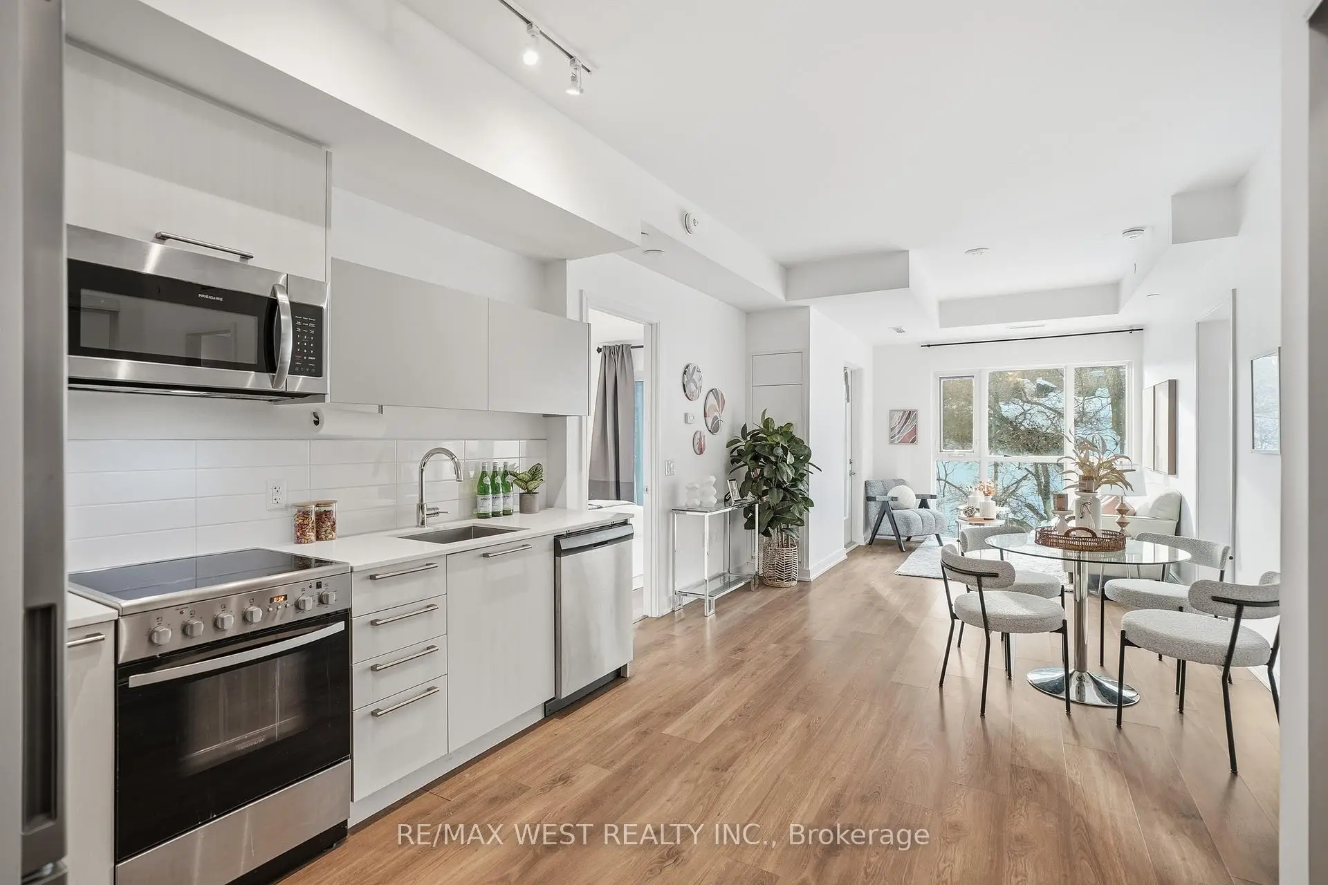 Welcome to Backyard Boutique Condos, where prime location meets modern luxury. This bright and spacious 2+1 bedroom, 2 bathroom condo is designed for contemporary living and offers convenience for commuters, families, and investors alike. Enjoy nearby dining at popular spots like Joeys, The Key, Cactus Club Cafe, and Toms Ice Cream. The unit features a bright, open-concept layout with laminate flooring, stainless steel appliances (fridge, dishwasher, washer/dryer), quartz countertops and a ceramic tile backsplash. With 9-foot ceilings, one parking spot, and a locker, this condo is perfect for first-time buyers or investors. Building amenities include an indoor gym, guest suite, party room with kitchenette, fireplace lounge, meeting/dining room, pet grooming room, childrens play centre, and an outdoor patio with BBQ area. A 1-acre park with a playground and splash pad adds to the family-friendly appeal.