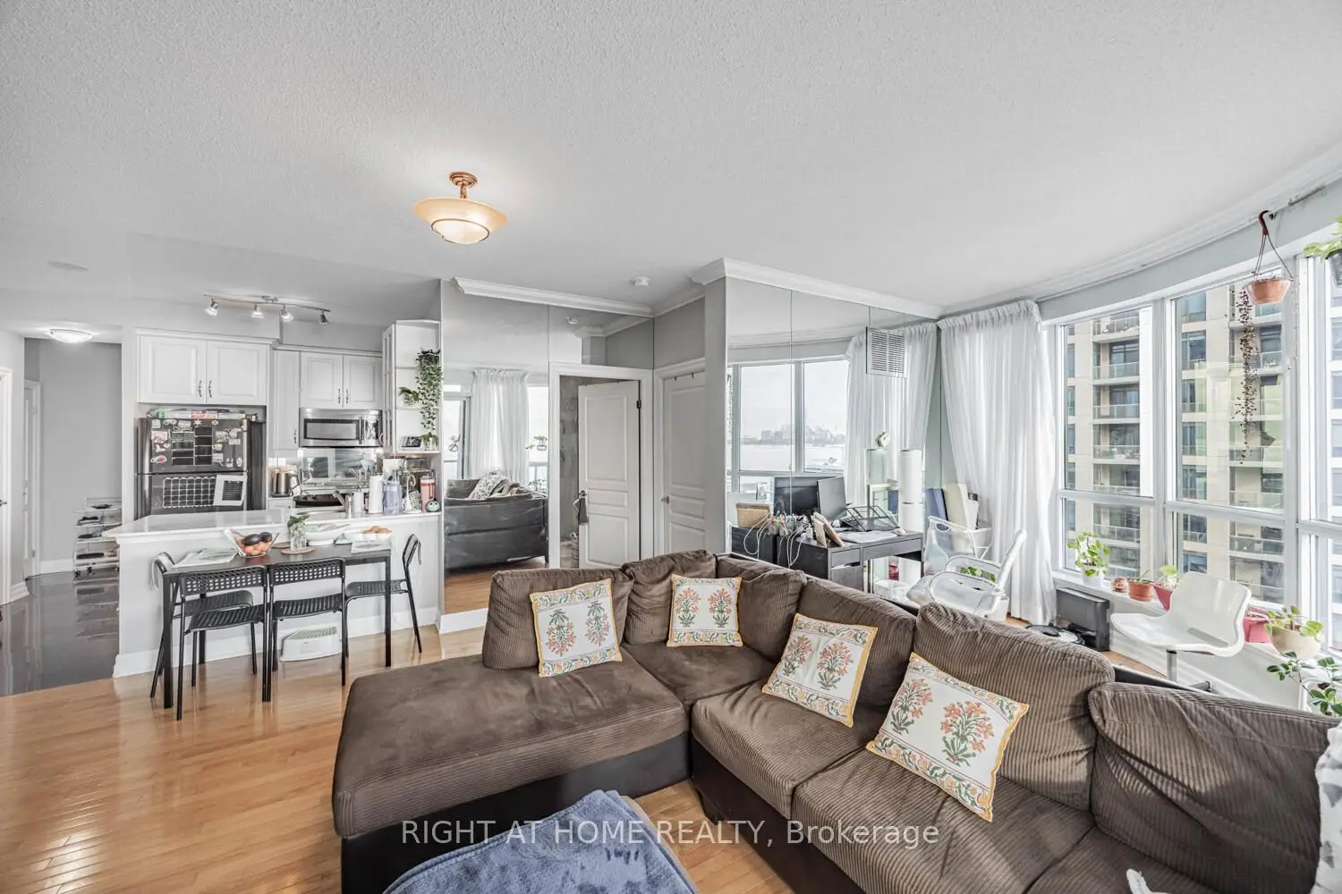 Breathtaking water views throughout day & night! Embrace the serenity of waterfront living at The Waterford Towers, This exquisite & spacious 682 Sqft 1-bedroom, 1-bath rounded suite offers a lifestyle beyond compare, every inch speaks of sophistication and comfort.. Open balcony for stunning south west vistas. Condo permits private BBQs on the balcony so you can Bbq to your heart's content all year round using your private gas hook up This is your front-row seat to mesmerizing sunsets and city lights. The beauty continues inside, where you'll discover a meticulously updated unit. Murphy bed / Hardwood flooring / Custom closets. Enjoy the convenience of 2 lockers and Very Convenient Parking (Right Next To Building Entrance) . Plus, with the TTC streetcar right at your doorstep, you'll have seamless connectivity to downtown, ensuring that every day becomes an extraordinary adventure. This unit Is A Must See!
