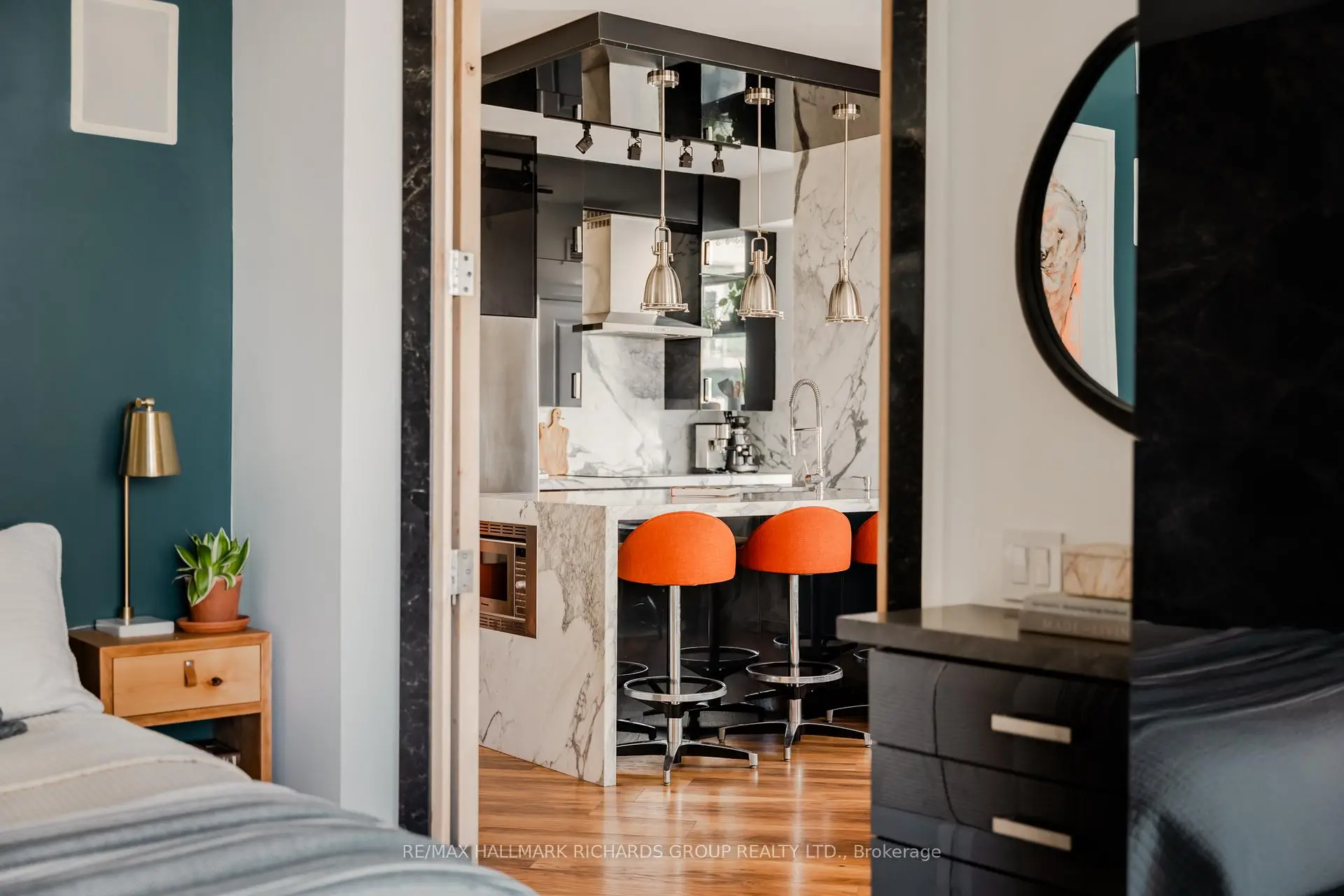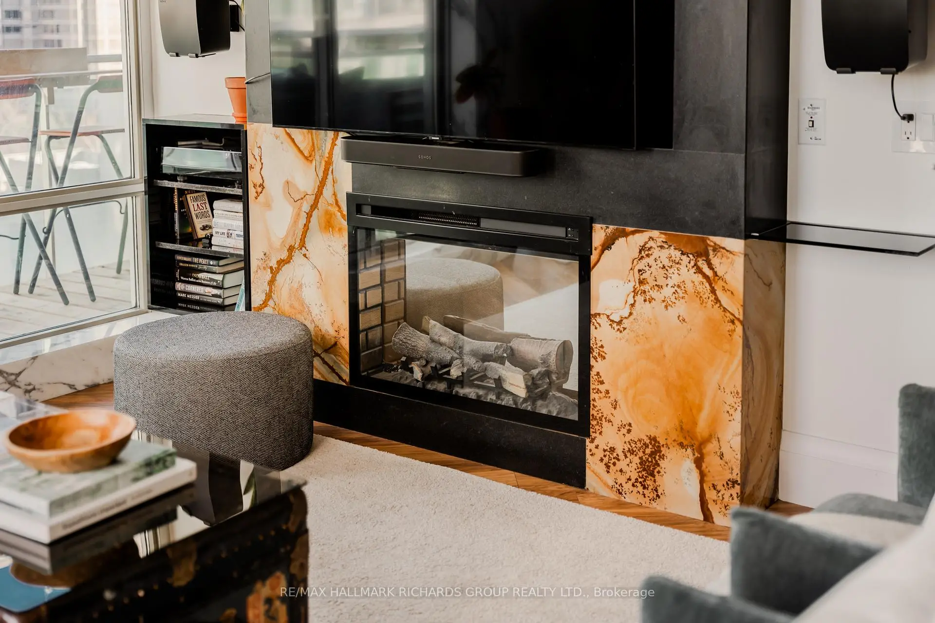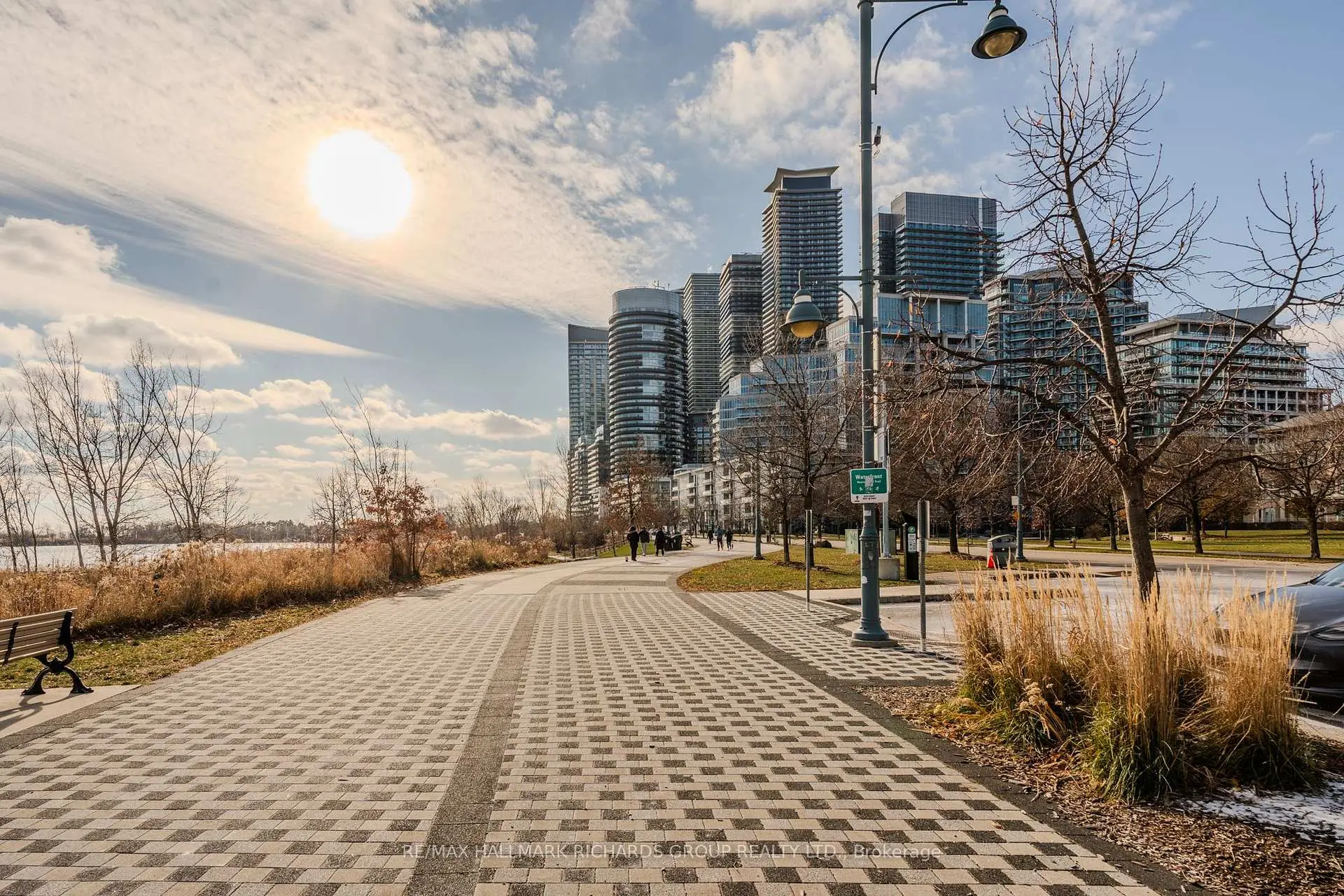 Unobstructed lake views, soft sunrise skyline moments, and a building known for its quiet, neighbour-focused feel. Suite 909 at 5 Marine Parade offers an elevated waterfront lifestyle in the heart of Mimico. This redesigned 1+1 bedroom suite features a bright, open living space anchored by a sleek fireplace wall and a walkout to a balcony facing the lake, the city skyline, and clear CN Tower views, all finished with upgraded pressure-treated wood decking (2025). The kitchen blends style and function with marble counters and backsplash, stainless steel appliances, and a generous island that adds both prep space and extra storage. The primary bedroom includes custom built-ins, built-in speakers, and a second walkout to the balcony. The den offers flexible space suited for a home office, fitness area, or guest nook. Additional upgrades include integrated speakers in the living room and bathroom (wired to the entertainment unit), updated appliances, curated lighting and fixtures, and thoughtful storage solutions throughout. The building is pet-friendly, and monthly condo fees include heat, hydro, and water for added ease and value. Grenadier Landing is known for its calm, residential atmosphere, with a low unit count, friendly concierge and security, an on-site convenience store, and almost no elevator wait times. Step outside to Humber Bay Park, lakeside trails, and protected wildlife areas that create a nature-first lifestyle with direct access to downtown when needed. A rare chance to live where the lake feels close enough to touch and the CN Tower glows right from home.