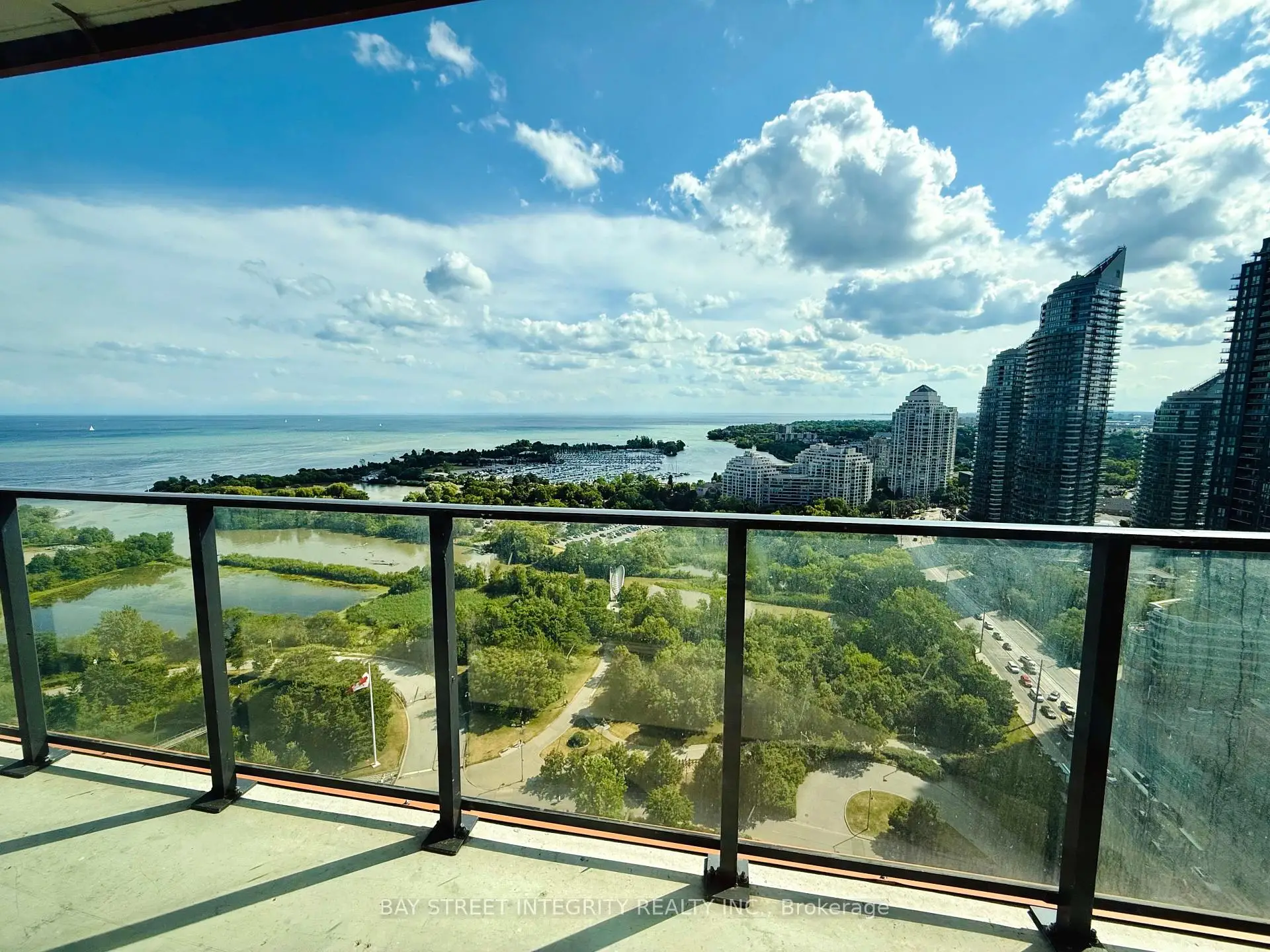 Rarely Offered Southwest Corner Gem at Eau Du Soleil's Sky Tower! Enjoy Breathtaking, Unobstructed Lake, Marina & City Views From Every Room and a Massive 300+ Sqft Wrap-Around Balcony. This Bright, Functional 2Bed & 2Bath Layout Features Split Bedrooms, 9ft Smooth Ceilings, and Brand New (2024) Wide-Plank Hardwood Flooring. Modern Kitchen with Quartz Countertops, Central Island & Upgraded Kitchen-Aid Appliances. Floor-to-Ceiling Windows Flood the Space with Light. Resort-Style Amenities: Indoor Saltwater Pool, Hot Tubs, Sauna, Outdoor BBQ terrace, Rooftop Patio, a Fully Equipped Gym, CrossFit Area, free fitness classes & movie nights, Yoga/Pilates Studio, Lounge, Games & Party Rooms, a Car Wash, Pet Wash Station, 24/7 security, Guest suites & More! One Parking & One Locker Included. Steps to Waterfront Trails, Shops, TTC, and Future Park Lawn GO. Don't Miss This Rare Lakeside Offering!