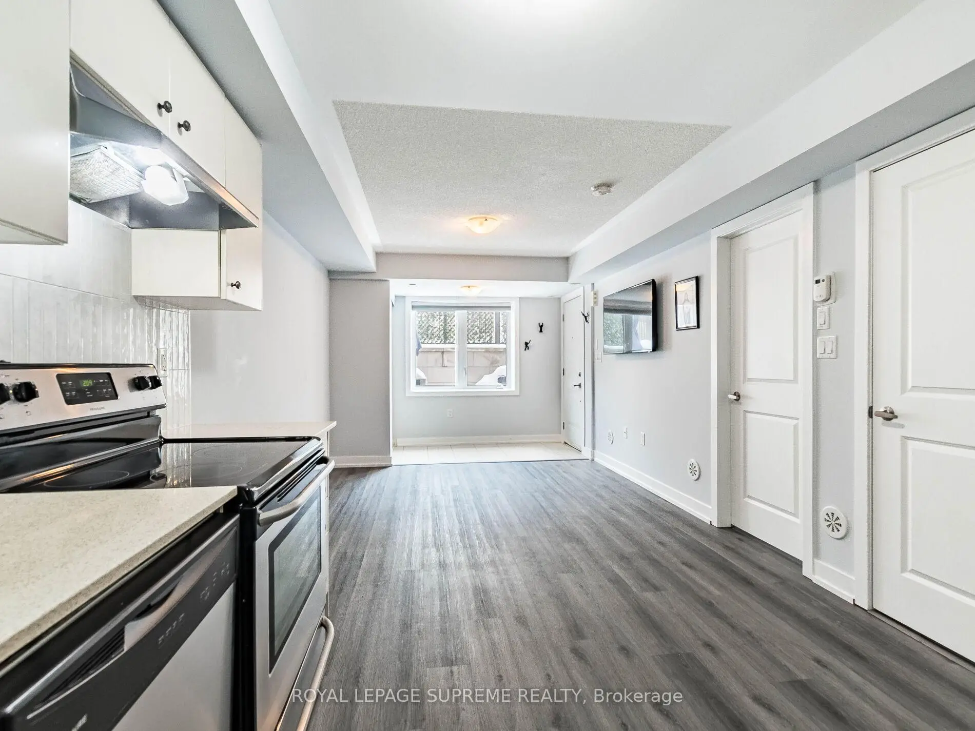 Live boldly in the heart of Mimico at the vibrant and stylish ROYAL TOWNS - and do it in a coveted CORNER UNIT! This rare ground floor Windsor Model gives you the best of urban convenience and lakeside living, wrapped in extra windows, extra light, and extra privacy that only a corner suite can offer.Step outside and you're moments from the Mimico waterfront, scenic trails, parks, cafés, restaurants, shops,No Frills and beloved local gems like San Remo Bakery and Humber Bay Park. Commuting is effortless with the GO Station a short walk away and quick access to the TTC, Gardiner, and 427. Inside, the space feels fresh, bright, and stylish with brand new laminate flooring, fresh paint, a new designer backsplash, quartz counters, stainless steel appliances, upgraded closet shelving, and a refreshed bathroom. The open concept layout flows naturally to your private 90 sq ft terrace - perfect for BBQ nights, morning coffee, or hosting friends in your own outdoor hangout. Set within an intimate 104 unit community built by Icon, this corner unit offers a unique blend of energy, comfort, and modern living. everything about this home is designed for ease and enjoyment.
