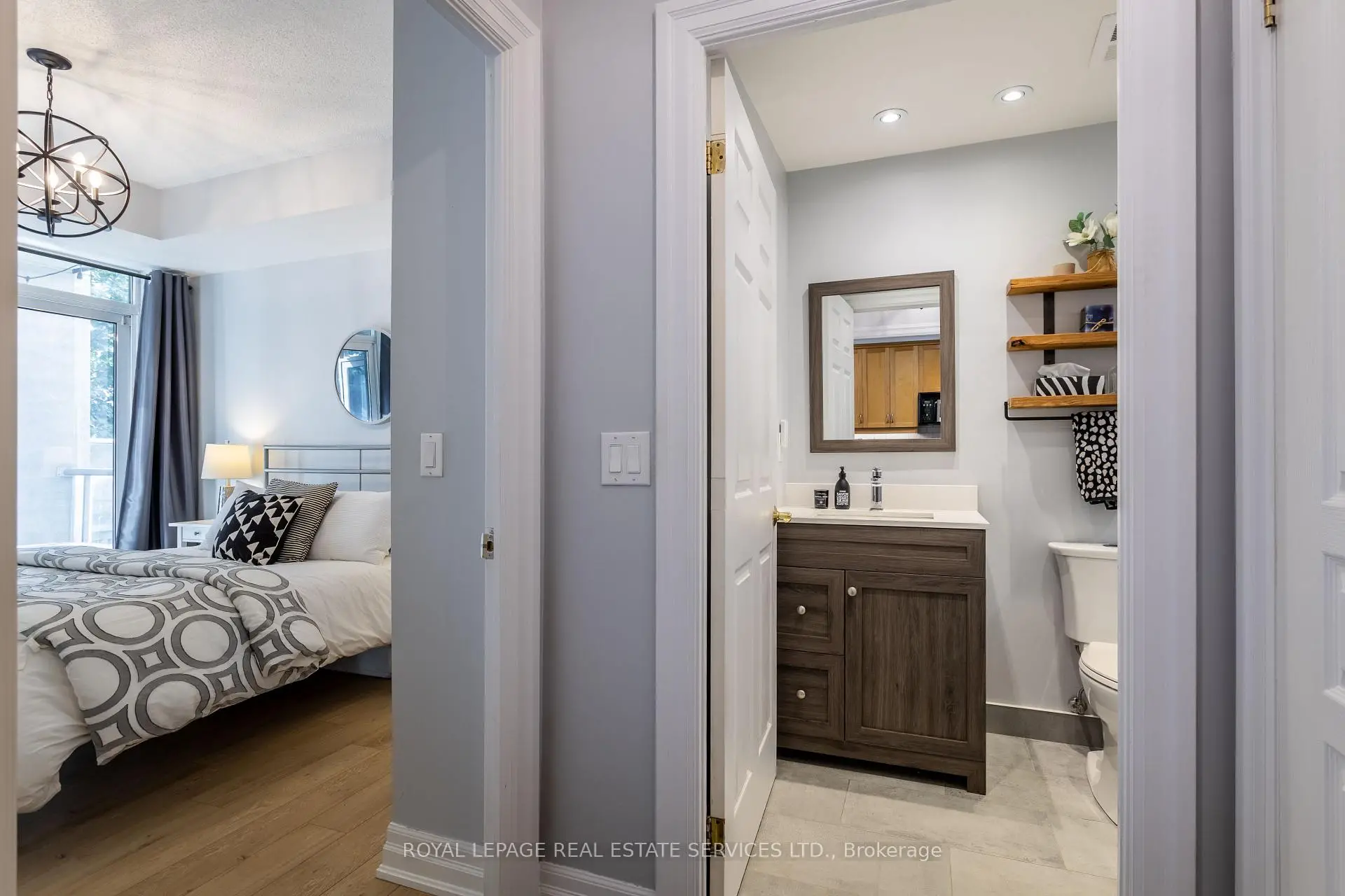 Welcome to the prestigious and highly sought-after Waterford Condos! This sun-filled second-level suite offers one bedroom, one bathroom, and a bright open-concept layout, highlighted by a stunning, sprawling terrace surrounded by mature trees. Just steps from the lake, restaurants, and shops, this unit is perfectly designed for seamless indoor-outdoor living and entertaining, with direct terrace access from both the living room and the primary bedroom. Fire up your gas BBQ and channel your inner chef in this private outdoor retreat. The unit features an updated kitchen with stainless steel appliances, custom LED lighting, and granite countertops + breakfast bar. Additional upgrades include a sleek, modern renovated bathroom, bleached oak wide-plank engineered hardwood flooring, a spacious primary suite, and efficient storage throughout. Enjoy world-class amenities including an indoor pool, concierge, guest suites, rooftop patio, and more. A commuter's dream location-just minutes to Mimico GO Station, St. Joseph's Hospital, major highways, and the scenic Humber Bay Trails.