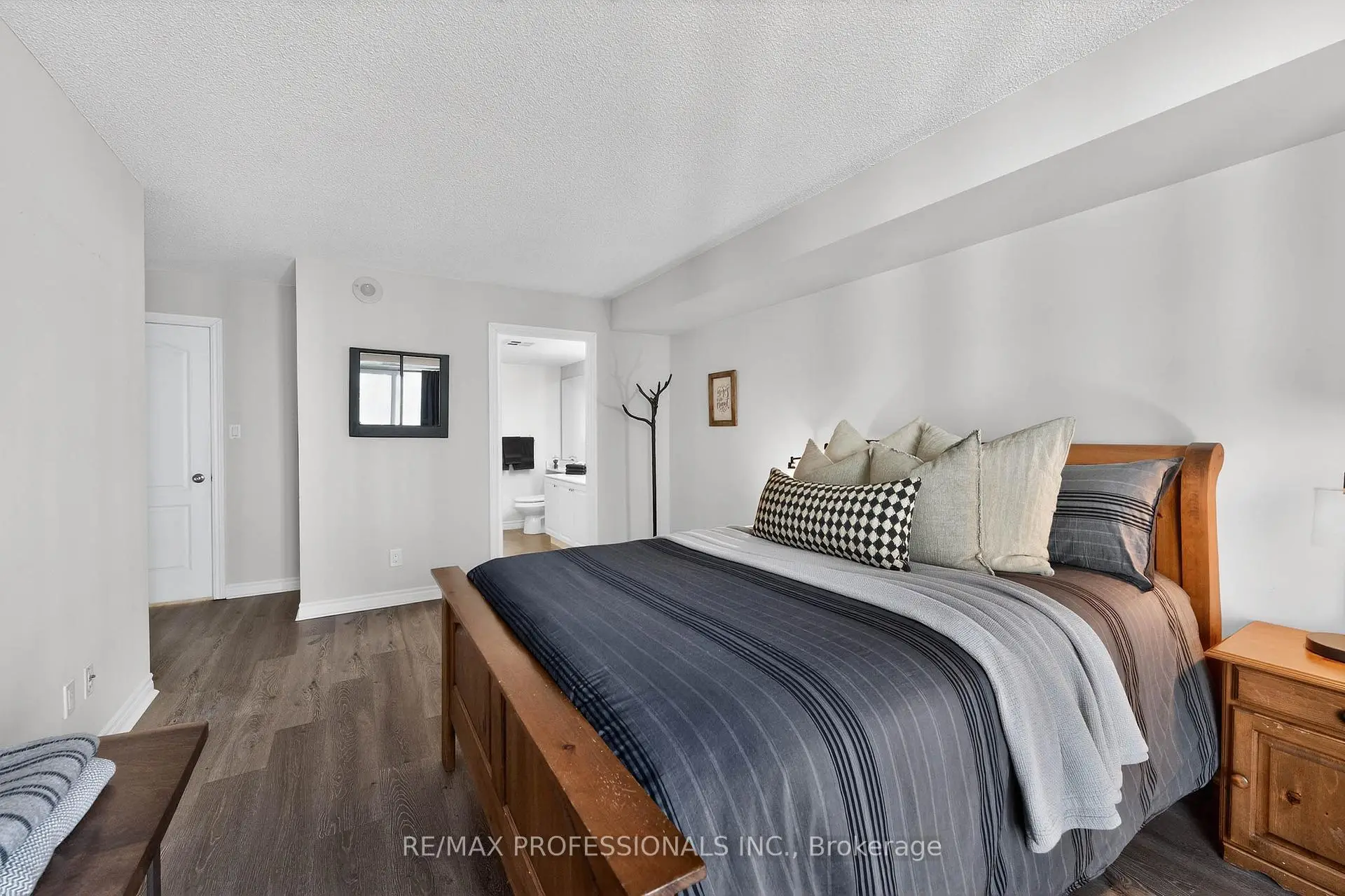 Welcome to this spacious and bright 2-bedroom, 2-bathroom waterfront condo offering over 1,000 sq. ft. of beautifully designed living space in a prime, highly walkable lakefront community. This turnkey unit features stylish laminate flooring and an open-concept layout with exceptional flow, creating a bright and airy atmosphere that feels like home. The full kitchen boasts stainless steel appliances overlooking the living/dining area perfect for entertaining. Enjoy two walkouts to a private balcony showcasing stunning lake and city skyline views, perfect for taking in sunrises. The oversized primary bedroom serves as a relaxing retreat, complete with a walk-in closet and 4-piece ensuite with a large jet tub, while the generously sized second bedroom and second full bathroom provide comfort and flexibility for guests, family, or a home office. Located in a beautifully maintained and quiet building, this home places you just steps from scenic waterfront trails, parks, restaurants, cafes, and public transit, with easy access to major highways and both Toronto airports for effortless commuting and travel. With a concierge, Party room, Gym, Sauna, Guest suites, and ample visitor parking, this building has everything you need. Experience the perfect balance of tranquility and convenience with vibrant urban amenities and serene lakefront living.