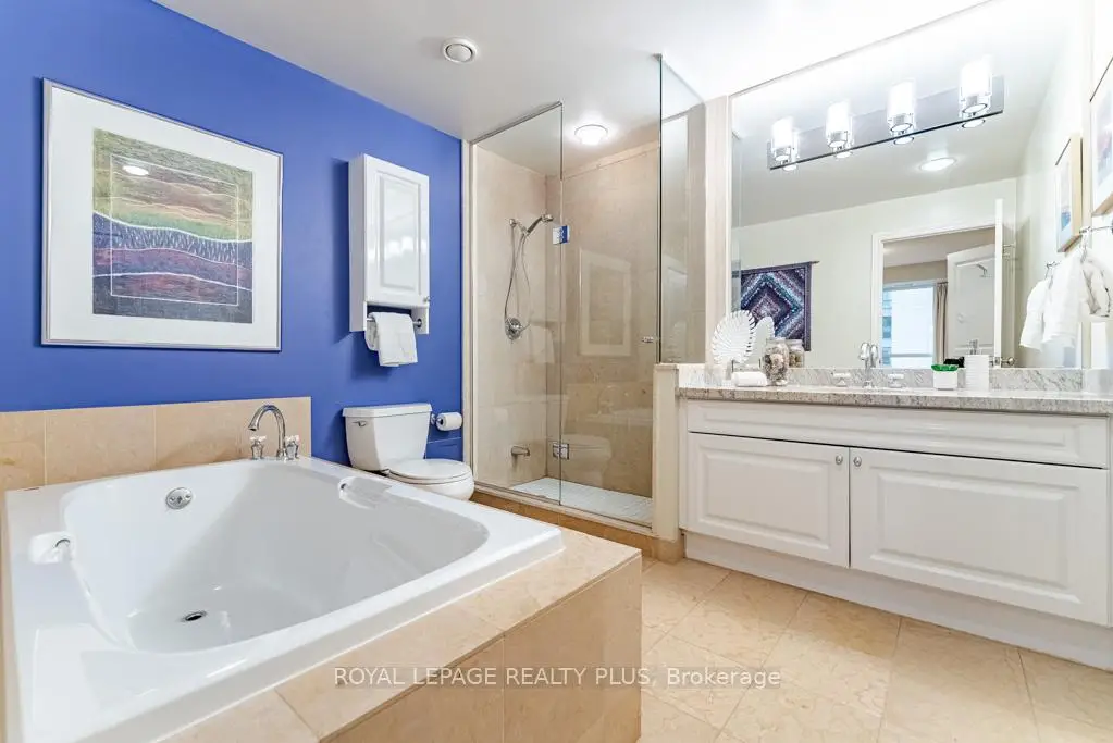 Welcome Home to The Terraces of The Old Mill! This Coveted Building is located steps to the Historic Old Mill Restaurant and Spa. This 2 bedroom, 2 Bath unit has unobstructed North Views of the Park and Ravine. Featuring 9 ft ceilings, An Open Concept Living Room with a walkout, A great sized Dining Room with Crown Moulding and with plenty of room for Family Functions! The Chef's Kitchen Overlooks the dining room with granite countertops and stainless appliances. Hardwood Floors throughout and Marble in the Kitchen. A Must See Unit for all Discriminating Buyers! Amenities included an Indoor Pool, Gym, Party Room, Roof Top Garden and 24 hr concierage. STEPS TO THE HUMBER RIVER AND MARTIN GOODMAN TRAIL. PLENTY OF WALKING TRAILS surround.