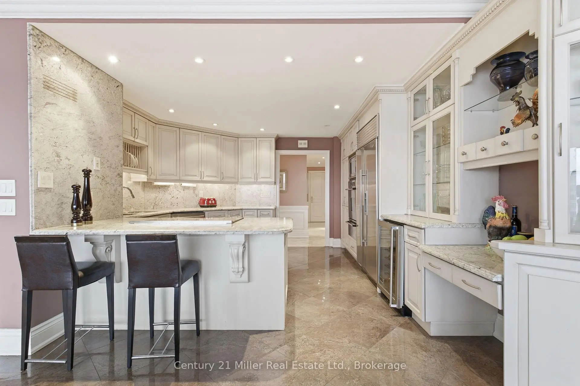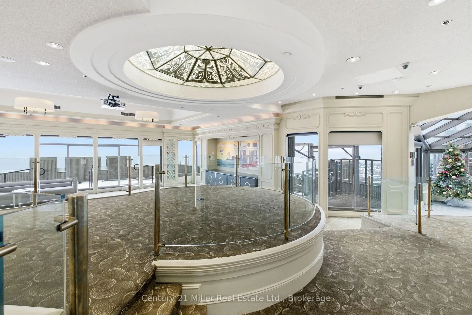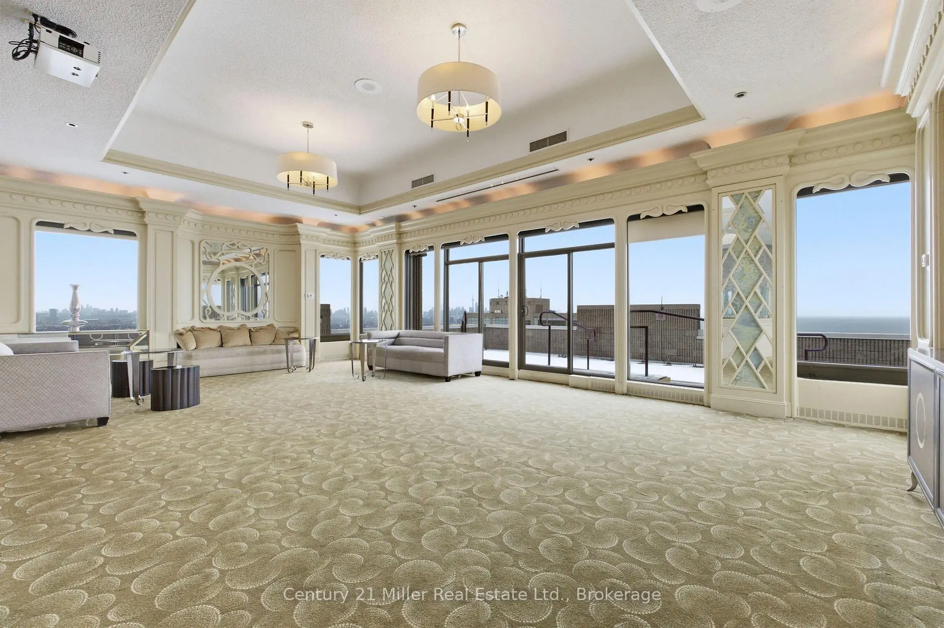 Spacious 3,247 sq. ft residence on the 36th floor of the Luxurious Resort-Style Palace Pier showcasing breathtaking lake and city skyline views. Elegant wainscoting enhances the foyer and corridors, complemented by marble and porcelain flooring throughout. The open-concept kitchen features a marble peninsula, statement marble wall, and backsplash overlooking the breakfast area and family room with built-in wall unit. The great room offers a dining area, built-in bar, solarium with julitette balcony, custom electric fireplace, and automated blinds on the floor to ceiling windows. Lots of natural light and beautiful view of Lake Ontario! The primary suite includes two large walk-in closets, solarium with juilette balcony, luxurious 5-piece bath, and pop-up TV. A truly exceptional home with refined custom finishes.Two bedrooms were converted to a custom office/library with built-ins and fireplace which can be easily converted back to two bedrooms. Amenities include: Fitness and aerobics center, Restaurant, Club on 47th floor, media room , event kitchen stage for events, terraces, tennis court, putting green, squash courts, golf simulator Table tennis room billiards room Party Room, convenience store, spa, arts and crafts room, childrens playroom , 24 hour concierge, 18 hour valet service, hourly bus service to downtown 6 days a week, 7 guest suites, large indoor swimming pool with whirlpool and sauna, AV Charging Stations, Car Wash, pets allowed with restrictions