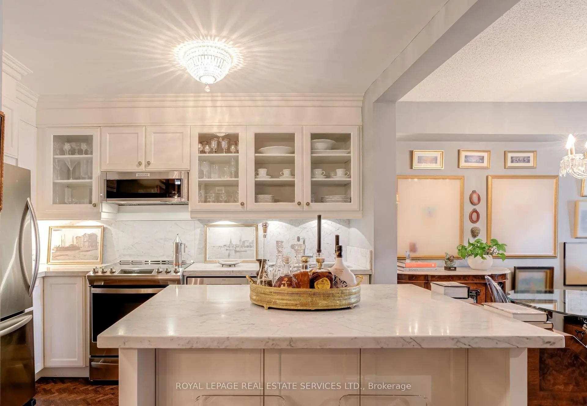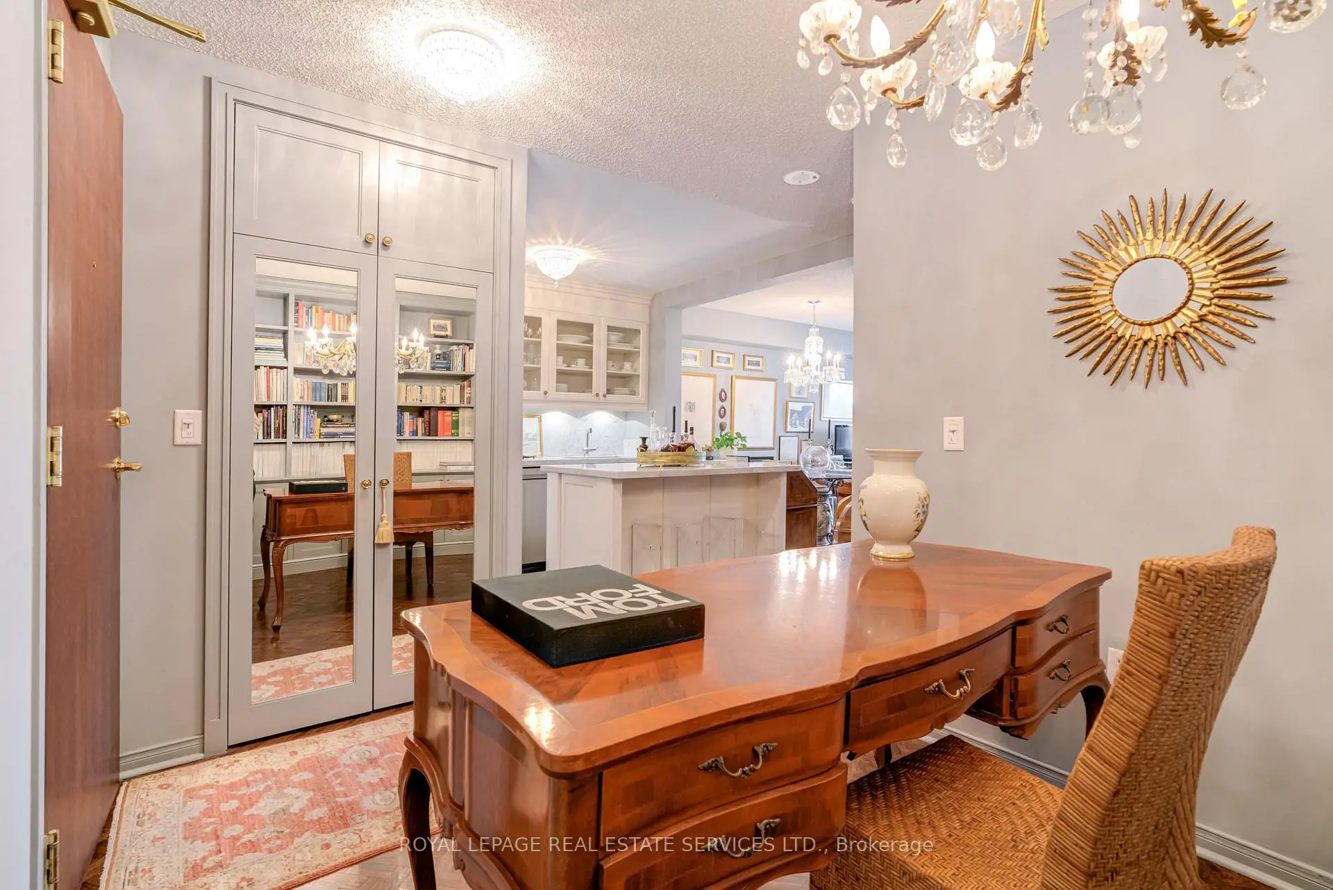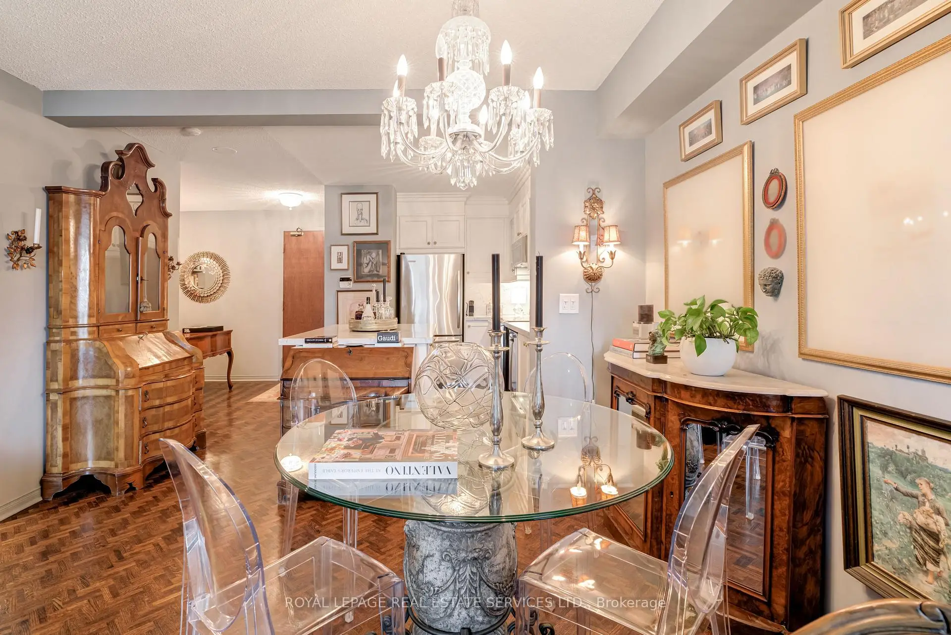 Luxury Living Beyond the Box in the Sky! Stop settling for cookie-cutter units and step into a residence that truly feels like home. This boutique-style condo has been meticulously renovated with designer finishes and an open-concept flow. The heart of the home is a chef-inspired kitchen featuring Carrera marble countertops and backsplash, a generous island with seating, and premium newer appliances. Every detail of this home has been elevated: from the warmth of herringbone wood floors throughout to custom-built library shelving in the den and custom closet doors. Retreat to a spa-like bathroom featuring tumbled marble flooring and a stylish floating vanity. Enjoy sunset cocktails or morning cappuccinos on your large private balcony with unobstructed west views over the park and neighbourhood. This wonderful condo is located in an elegant and secure building with a 24-hour security gatehouse, fully equipped modern fitness room with premium commercial cardio and strength training equipment, renovated party room, library and new secure courier/package lockers. Condo includes newly installed fan coil unit with warranty. Located just minutes to Islington subway station, lots of restaurants, shops, schools and a quick drive to HWY 427 or the Gardiner expressway. This is a rare opportunity for the discerning buyer. A true must-see. Welcome Home!