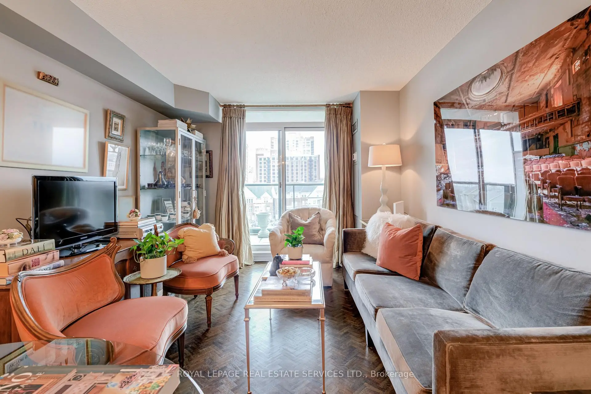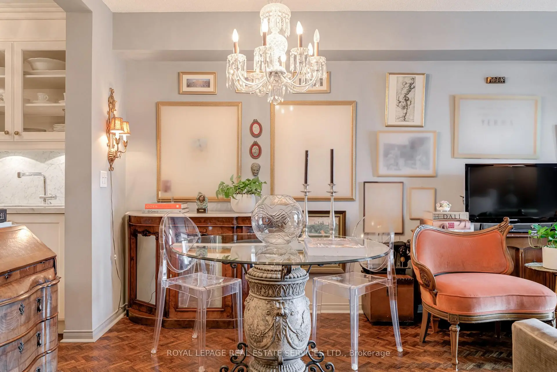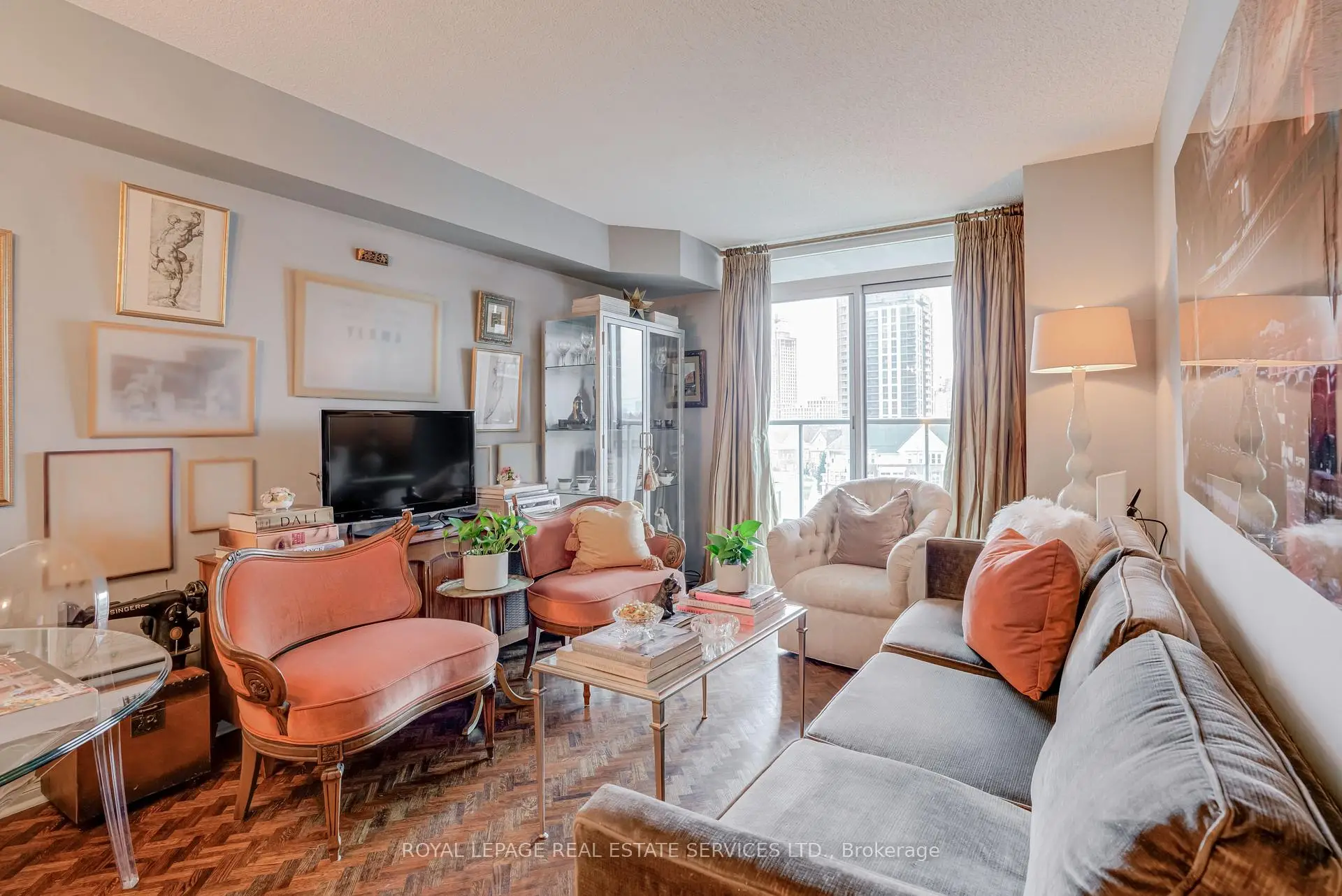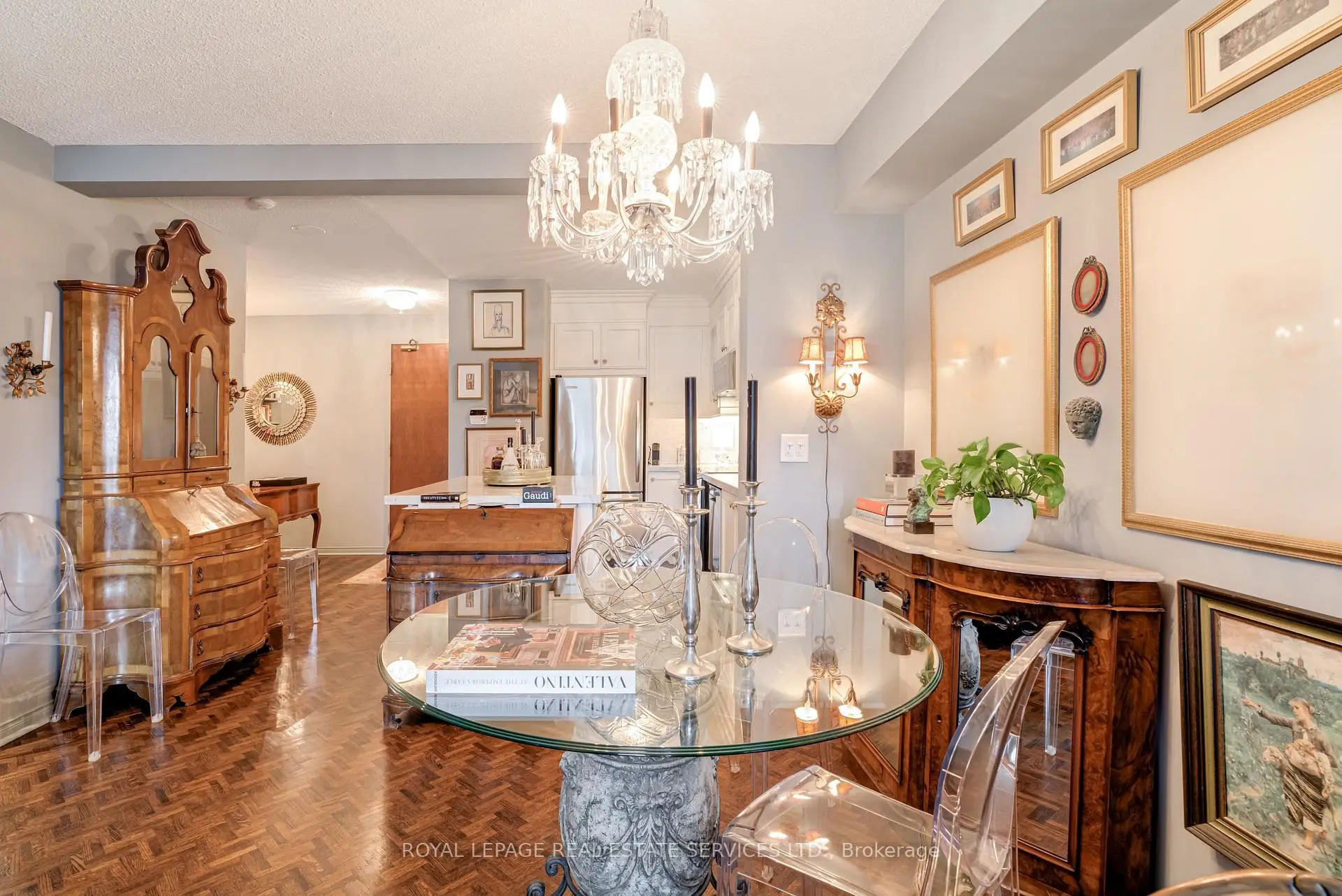 Luxury Living Beyond the Box in the Sky! Stop settling for cookie-cutter units and step into a residence that truly feels like home. This boutique-style condo has been meticulously renovated with designer finishes and an open-concept flow. The heart of the home is a chef-inspired kitchen featuring Carrera marble countertops and backsplash, a generous island with seating, and premium newer appliances. Every detail of this home has been elevated: from the warmth of herringbone wood floors throughout to custom-built library shelving in the den and custom closet doors. Retreat to a spa-like bathroom featuring tumbled marble flooring and a stylish floating vanity. Enjoy sunset cocktails or morning cappuccinos on your large private balcony with unobstructed west views over the park and neighbourhood. This wonderful condo is located in an elegant and secure building with a 24-hour security gatehouse, fully equipped modern fitness room with premium commercial cardio and strength training equipment, renovated party room, library and new secure courier/package lockers. Condo includes newly installed fan coil unit with warranty. Located just minutes to Islington subway station, lots of restaurants, shops, schools and a quick drive to HWY 427 or the Gardiner expressway. This is a rare opportunity for the discerning buyer. A true must-see. Welcome Home!
