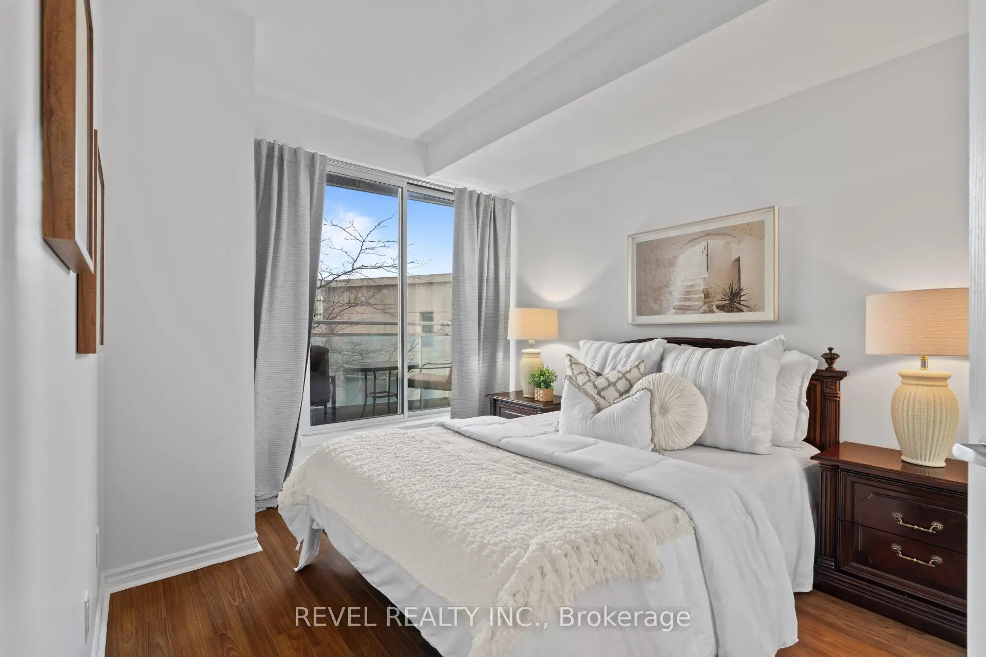 Welcome to #303-5 Marine Parade Drive, a rare opportunity to own in the highly sought-after Grenadier Landing at Humber Bay Shores in Mimico, where waterfront living meets urban convenience. This beautifully maintained lakefront condo offers stunning views of Lake Ontario and the Toronto skyline, creating a serene backdrop to everyday living. Featuring an open-concept layout, the suite boasts a full-size kitchen with a sit-up peninsula overlooking the combined living and dining area, perfect for both relaxing and entertaining. Expansive windows fill the space with natural light, while dual walkouts lead to a private balcony with peaceful views of both the lake and landscaped courtyard-an ideal setting to unwind and enjoy the sounds of nature. The spacious primary bedroom also features direct balcony access and lake views, enhancing the sense of retreat. Complete with in-suite laundry, this unit offers both comfort and functionality. Residents enjoy premium amenities including a gym, rooftop terrace, concierge service, and a beautifully maintained courtyard with a community BBQ area. Ideally located steps to the waterfront, scenic trails, parks, and public transit, with quick access to major highways and downtown Toronto, this is an exceptional lifestyle opportunity in a well-managed building that showcases true pride of ownership. **Utilities Included in Maintenance Fee** Only Pay Internet