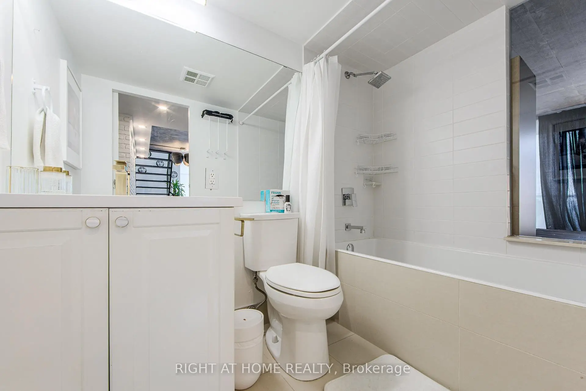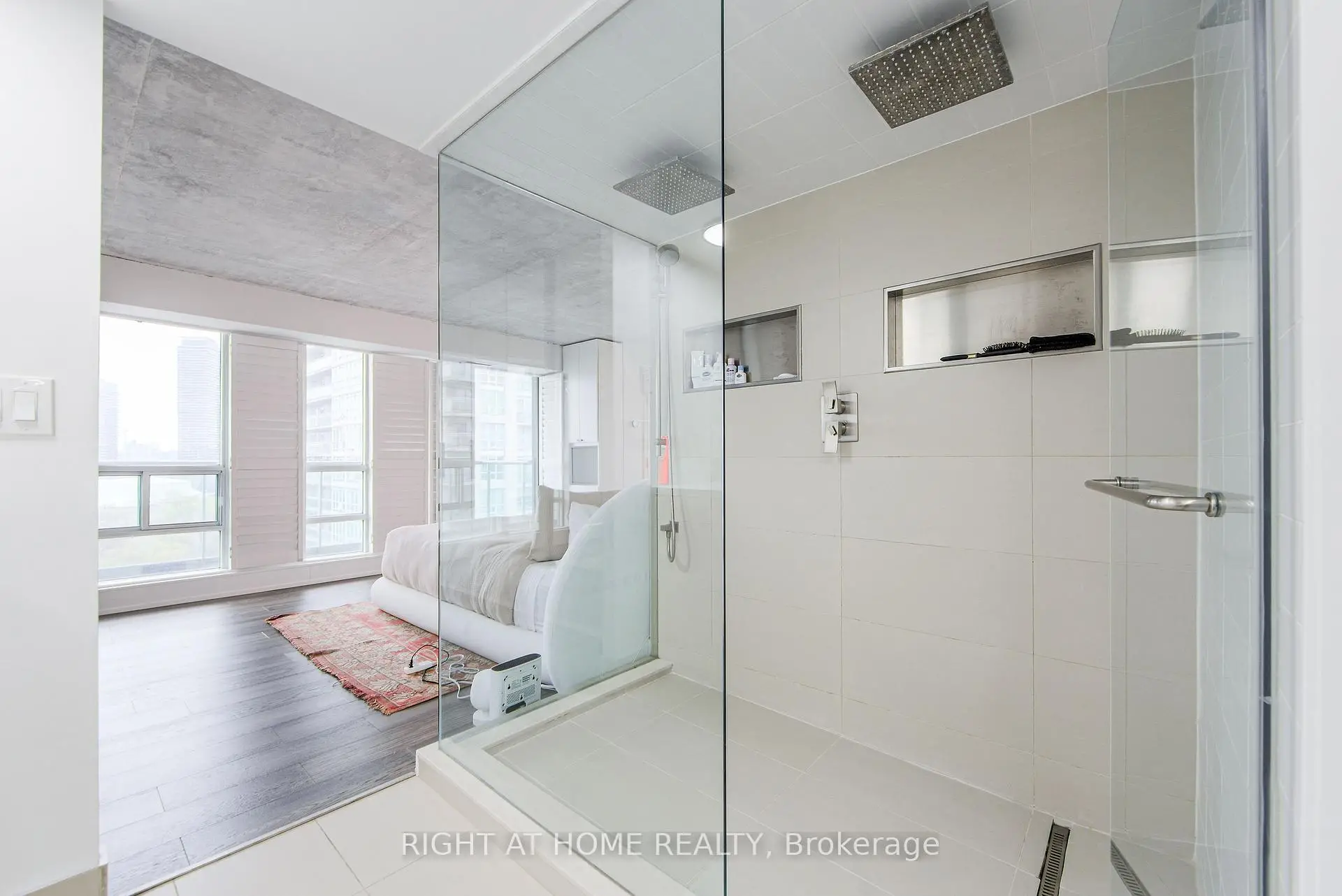 Welcome to Mystic Pointe lofts in Mimico! This converted distillery warehouse offers a sophisticated living experience. A corner unit boasting 2+1 bedrooms, 2 bathrooms, 17 ft high ceilings and 1210 sq ft of open space, this residence features unique architectural elements. The second-floor primary suite, includes a spa-inspired ensuite, open concept den, and main floor gourmet kitchen with built in smart high end appliances provide a luxurious atmosphere. With modern design touches like exposed brick, concrete, and custom finishes, this loft is a standout. Enjoy views of Lake Ontario, the CN Tower, and Downtown Toronto from every angle. Relax on one of the two balconies or host a lavish dinner party in the spacious dining room. For a truly unparalleled living experience, viewing in person is highly recommended.