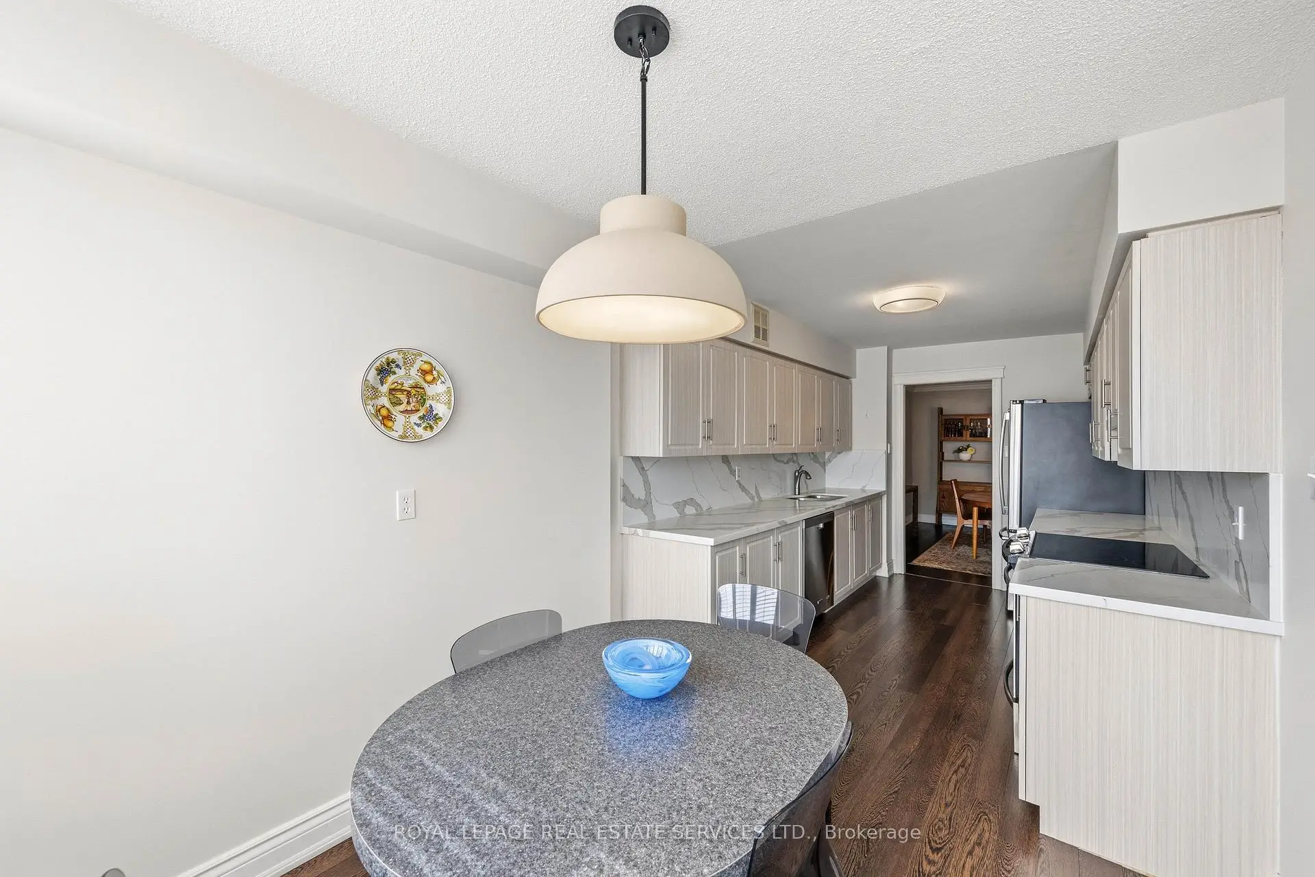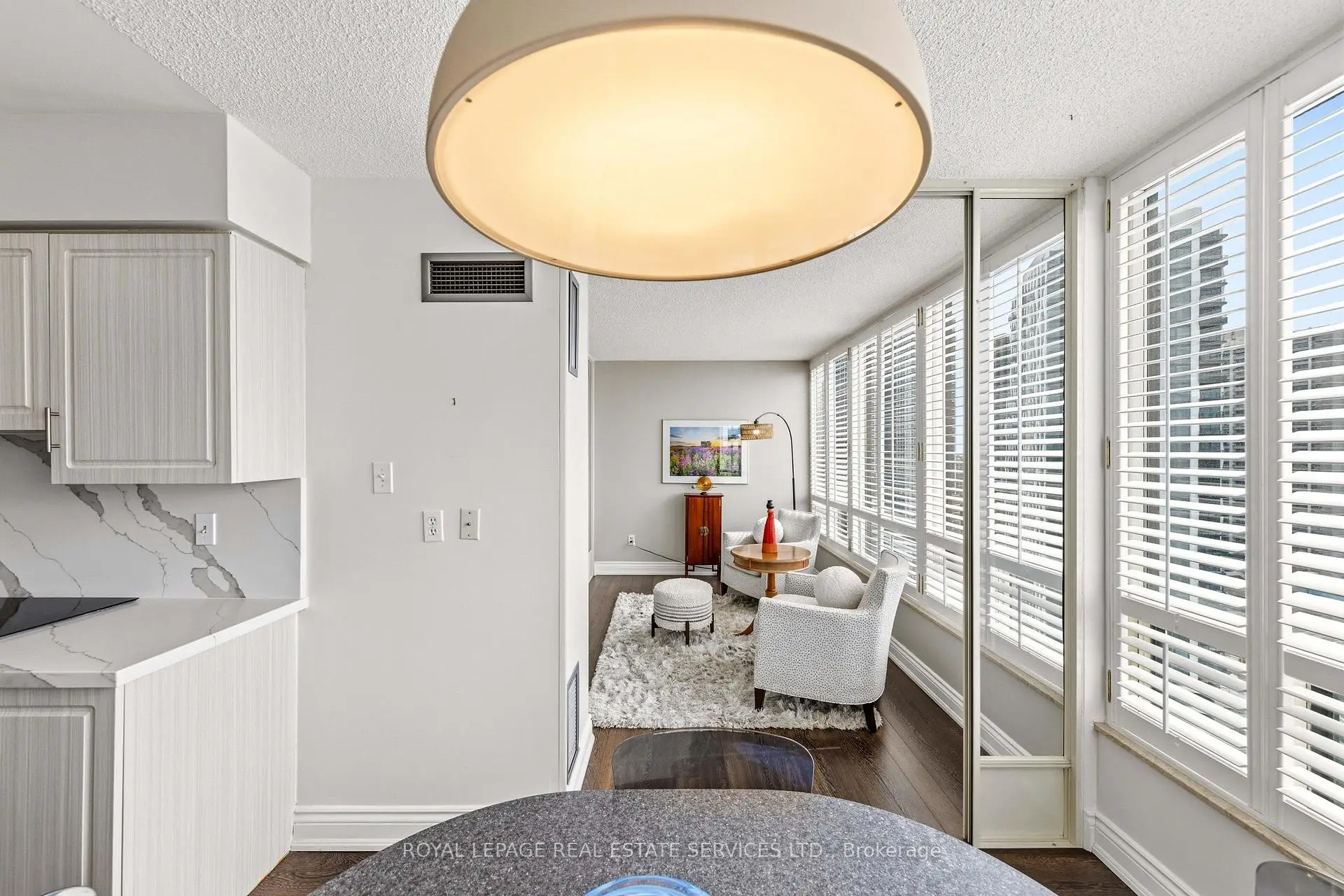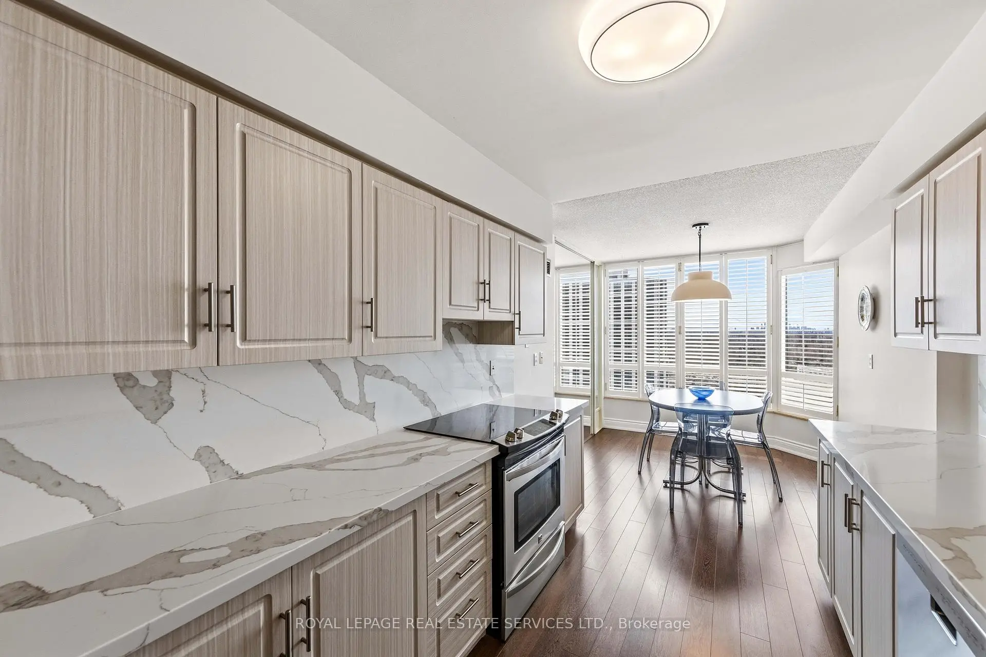Exceptional Meticulously Maintained Designer Appointed And Spacious Over 1,300 Sq Ft 2 Bedroom, 2 Bath Suite In The Barclay Terrace Residence. Foyer Leads Into A Bright Dining And Living Space Featuring Engineered Hardwood Floors Opening Up To The Solarium Bathing The Space In Natural Light And Perfect For A Morning Coffee Or Tea. Endless Windows Throughout With Stunning California Shutters Leave No Corner Untouched By Sunlight. Expansive Galley Kitchen Features Custom Cabinetry, Porcelain Counters, Stainless Steel Appliances And Breakfast Nook With Large Window Perfectly Suited For Everyday Living And Adding Versatility To The Suite. Large 4-Piece Bathroom Featuring Marble Patterned Porcelain Shower, Sizeable Bath Tub, And Secondary Walk Through Access To Primary Bedroom For Ease. Primary Bedroom Is Adorned With Large Window, Two Double Closets, And Built-Ins Providing Abundant Storage Space. Suite Includes 1 Parking Space, Ensuite Locker Next To Foyer For Convenience. Experience Resort-Style Amenities Including A 24-Hour Concierge, Indoor Pool, Hot Tub, Fitness Center, Tennis And Squash Court, Billiards, And A Party Room. Wonderful Resident Community Around The Corner From Islington Village Boutiques, Cafes, And Restaurants. Steps To Islington Subway Station, Islington Golf Club, Bloor St Shops, Tom Riley Park, And Mimico Creek Trail. Top Rated Schools Just Minutes Away. Exceptional Highly Sought After Residence In Outstanding Etobicoke Community.
