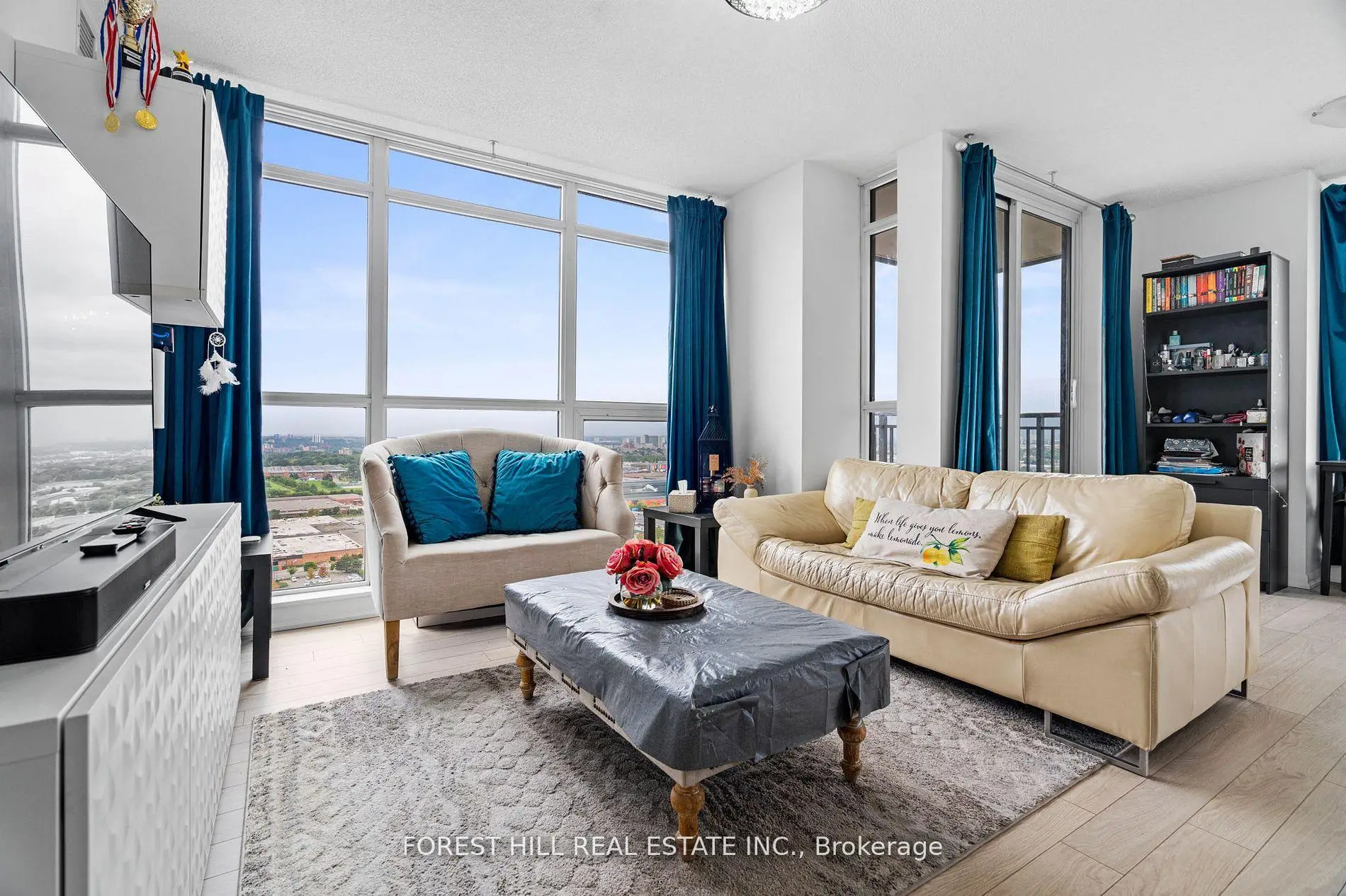 This Maranello home in the sky is in the highly sought-after Treviso 2. With 800 sq. ft. of beautifully designed space, boasts impeccable views, two opposite side bedrooms & an additional versatile den for the perfect work space. Two Contemporary 4-Piece Bathrooms Designed with the sleekest finishes for maximum comfort. All comes together with a perfect blend of modern elegance and all the city conveniences from tanset to entertainment. Floor-to-ceiling windows fills this home with natural light, offering panoramic views from every room. The open-concept layout seamlessly connects the living, dining, and kitchen area's with an island ideal for both entertaining and everyday living. Sleek laminate flooring throughout adds a touch of contemporary sophistication to your bright & spacious Living Area. Unwind while soaking in the breathtaking cityscape. Modern Kitchen Featuring designer cabinetry, premium appliances, and ample counter space for all your culinary adventures. Primary Retreat with expansive windows and a large closet. Second Bedroom, Perfect for kids, guests, family, or another stylish home office. Enjoy the added convenience of a dedicated parking spot and a locker for extra storage. This Treviso corner unit has been well cared for and offers an unbeatable combination of style, space, and city views. Whether you're looking for a luxurious home or a prime investment opportunity, this one is a must-see!