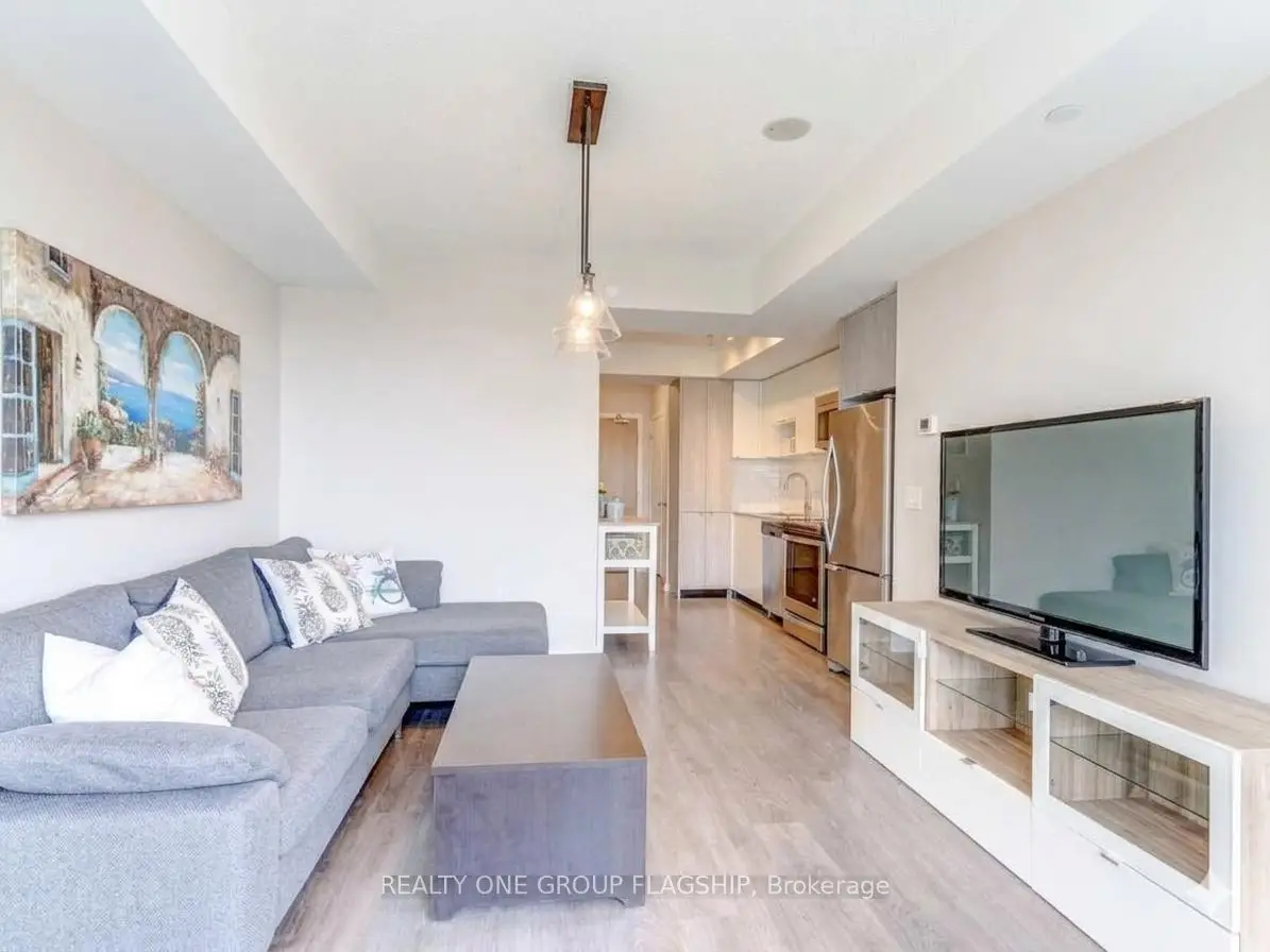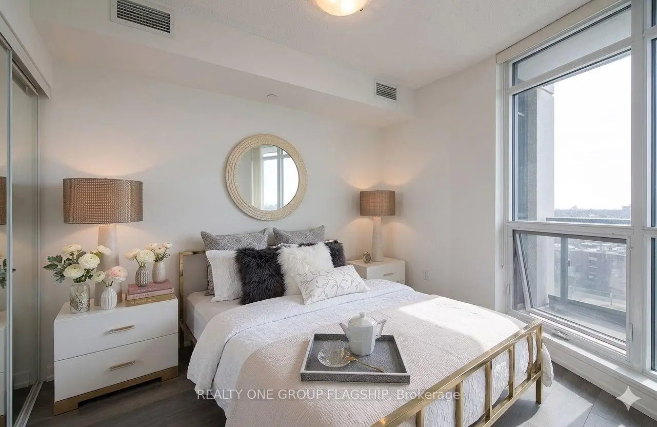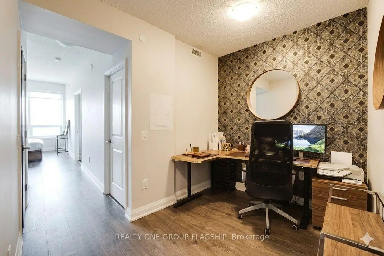 Welcome to The Triumph at Valhalla-where style, comfort, and location come together seamlessly. This bright and well-designed 1-bedroom plus den suite features unobstructed city views and floor-to-ceiling windows that flood the space with natural light. The contemporary kitchen is finished with a blend of natural wood and matte cabinetry, complemented by stainless steel appliances, granite countertops, and a modern backsplash. The spacious primary bedroom offers a large mirrored closet and upgraded laminate flooring, while the versatile den provides the perfect space for a home office or guest area. Move-in ready, this unit offers exceptional convenience with quick access to Highways 427, 401, and the Gardiner Expressway. Ideally located just 4 km from Sherway Gardens, 8 km to the lake, 10 km to Pearson Airport, and 15 km to downtown Toronto, you're perfectly positioned for both daily living and commuting. Residents enjoy premium amenities including an indoor pool, sauna, gym, and party room-an excellent opportunity for end-users and investors alike. Some photos have been virtually staged to showcase the home's potential