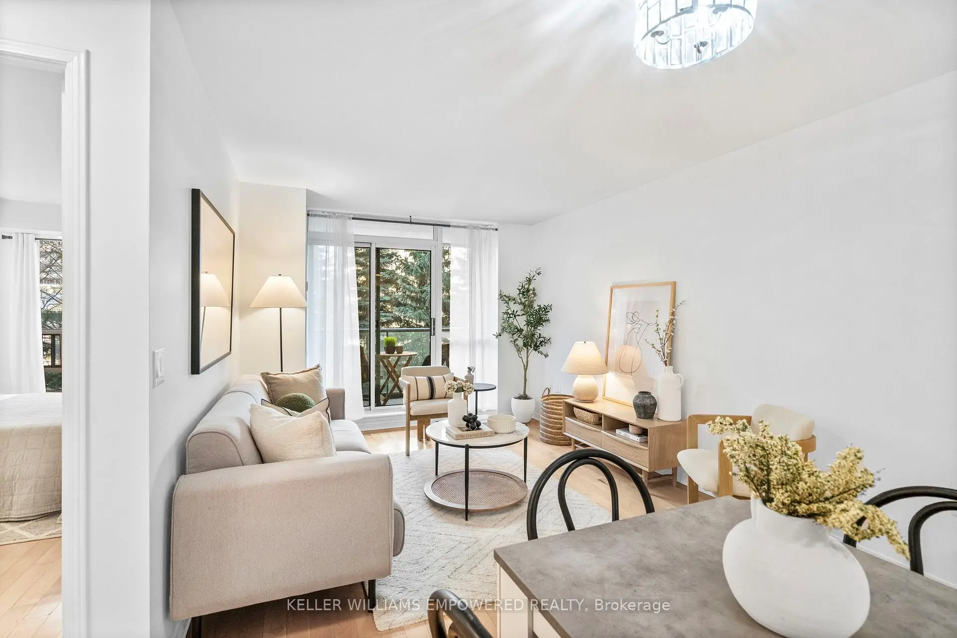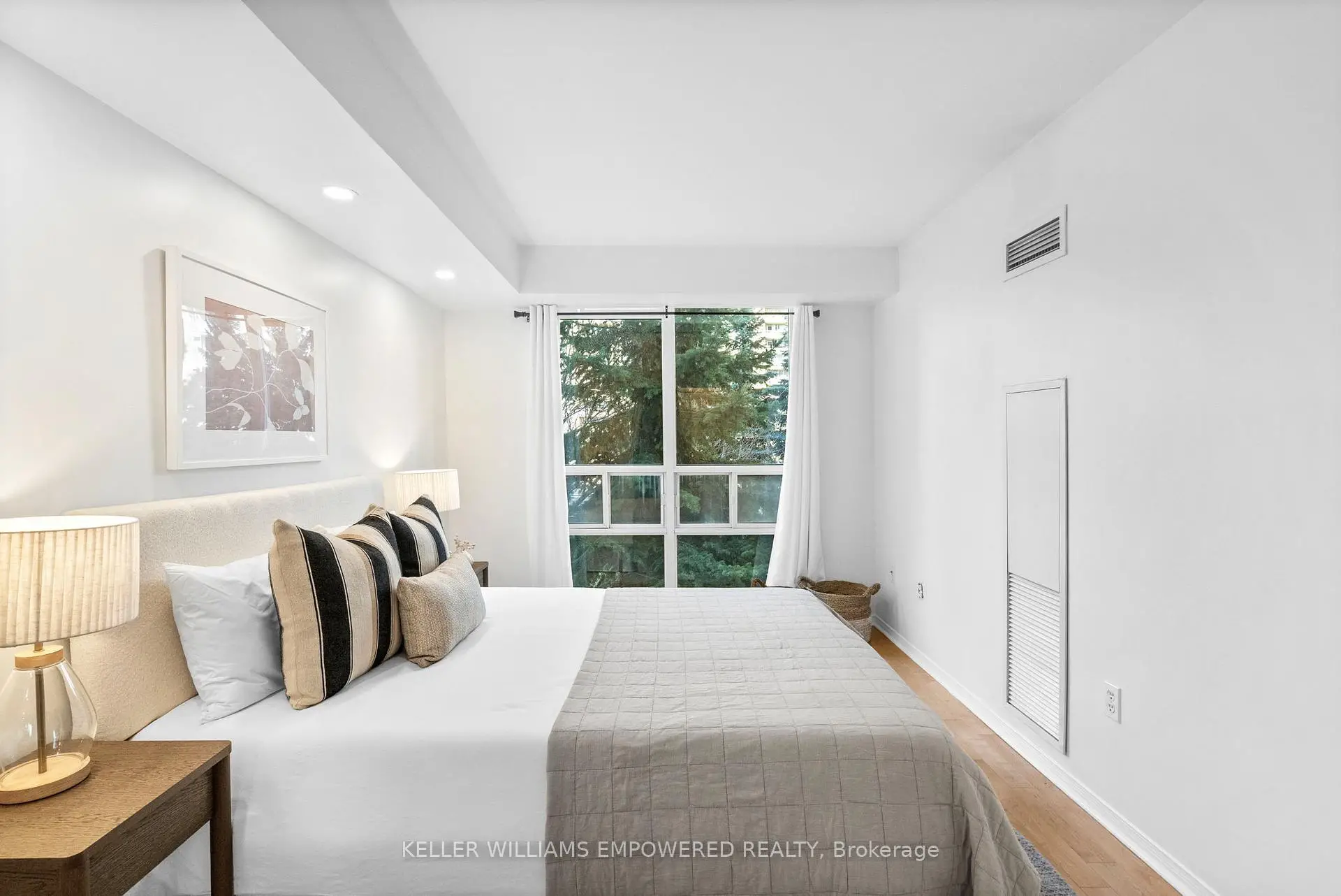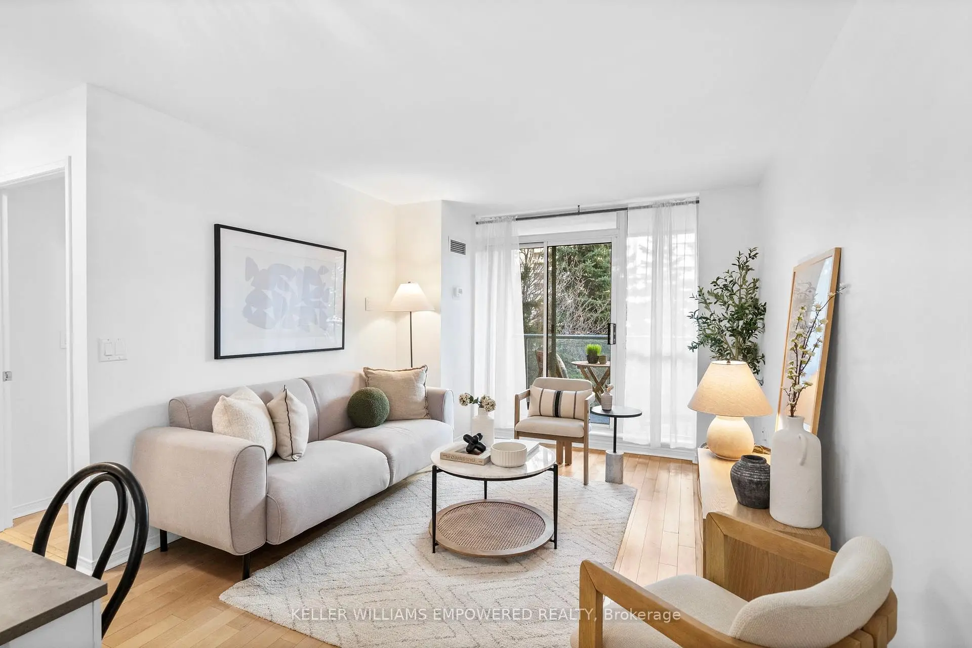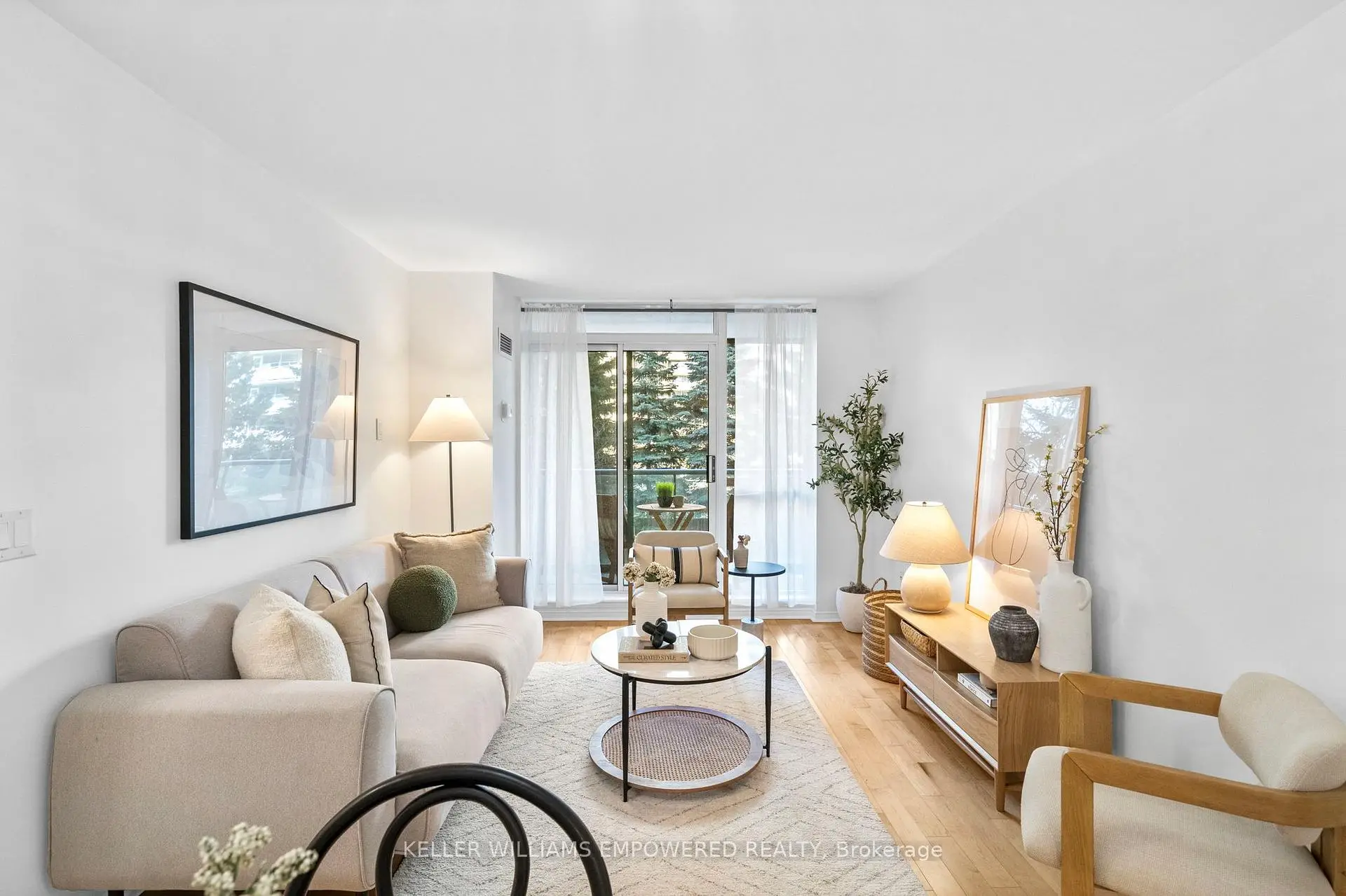Bright, private, and perfectly positioned in a highly walkable, amenity-rich community. This thoughtfully designed condo offers exceptional convenience, just a 10-minute walk to Islington subway with easy access to downtown and steps to everyday essentials.Unit 201 features an open-concept layout with hardwood floors throughout, an updated kitchen with newer countertops and backsplash, and a refreshed bathroom vanity. The oversized bedroom provides flexibility for a work-from-home setup or additional storage.Enjoy rare privacy from your balcony with peaceful views of mature trees. Set within a boutique, well-managed 9-storey building, maintenance fees include air conditioning, heat, hydro, water, and parking, delivering outstanding value and ease of living.