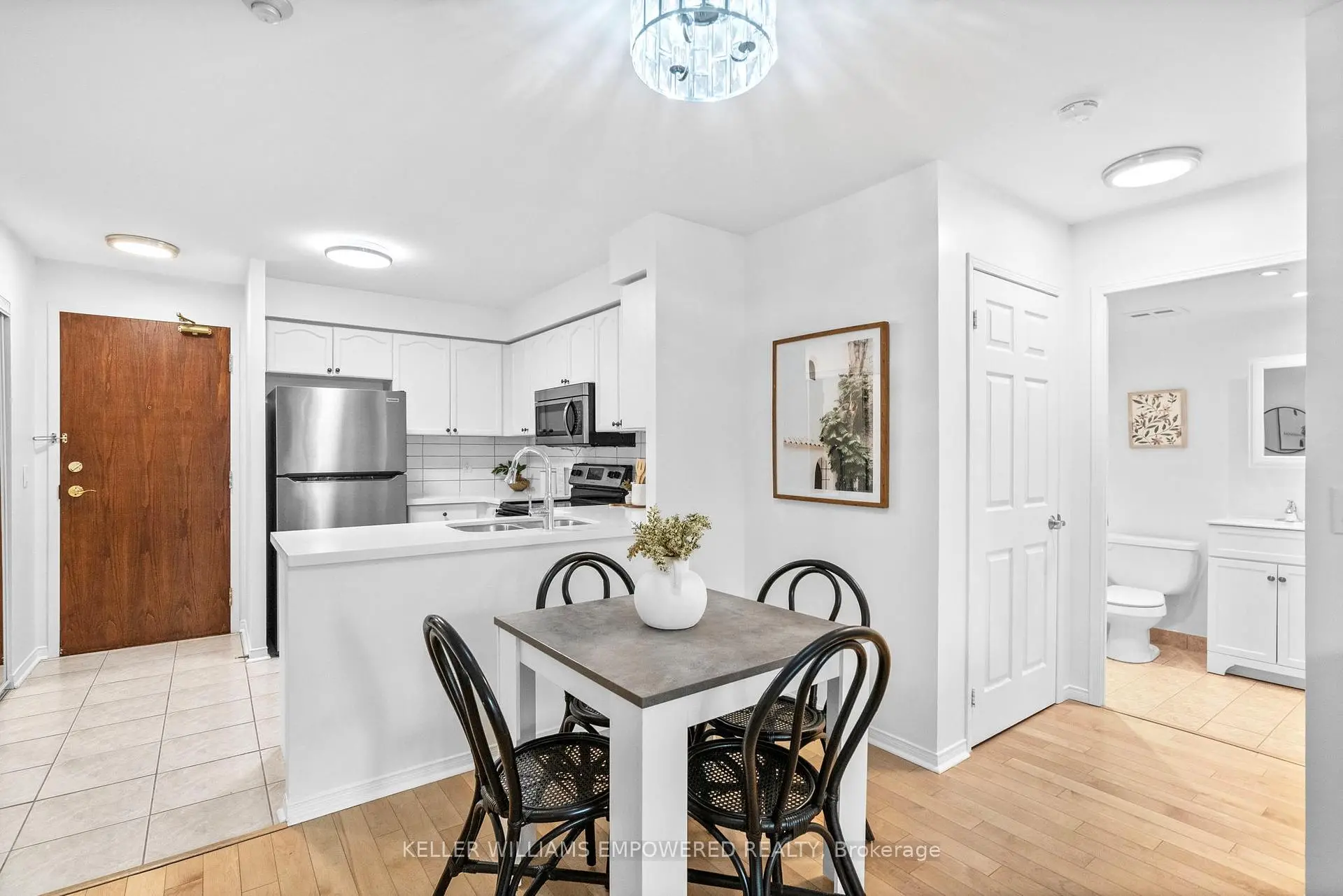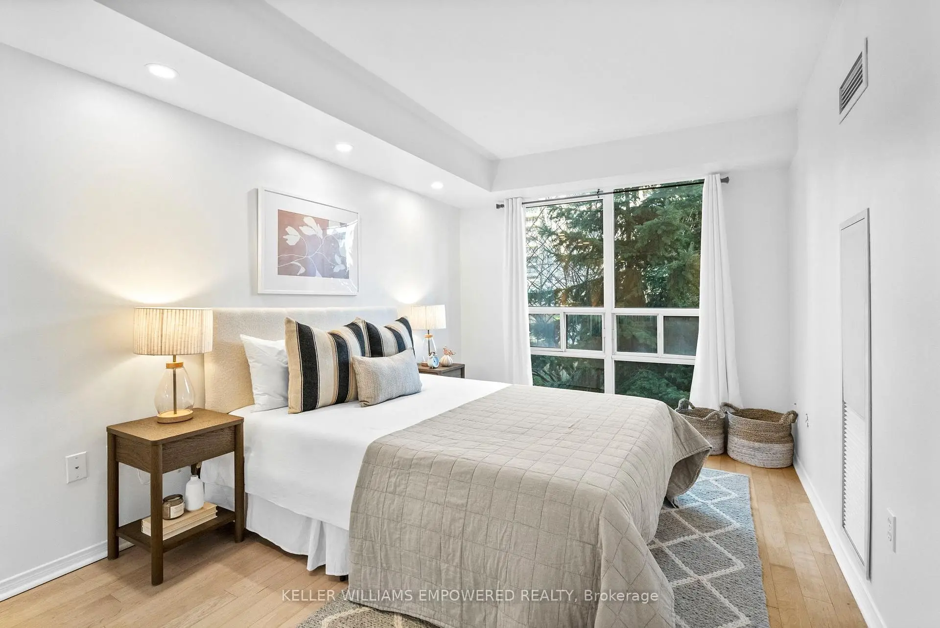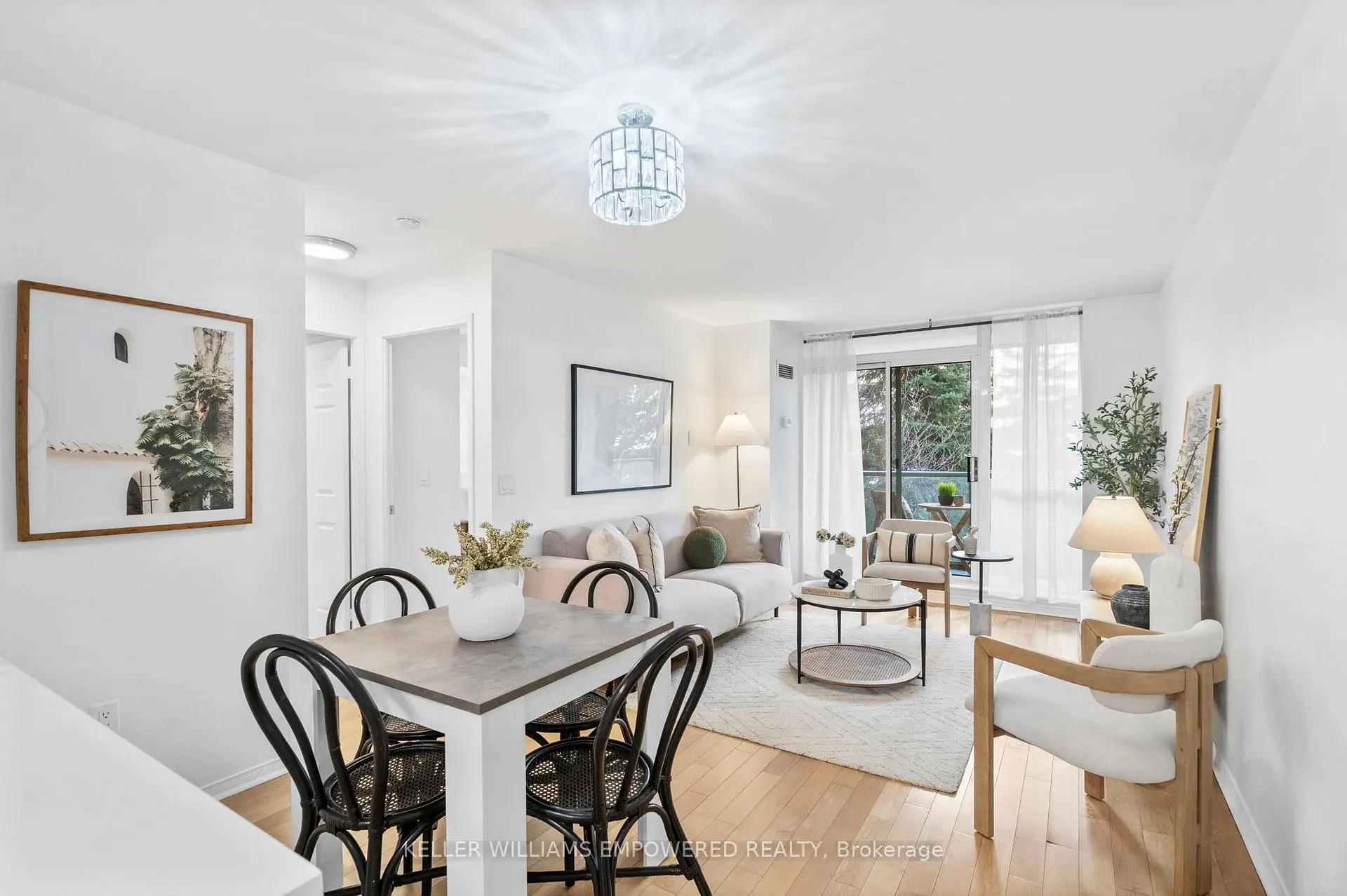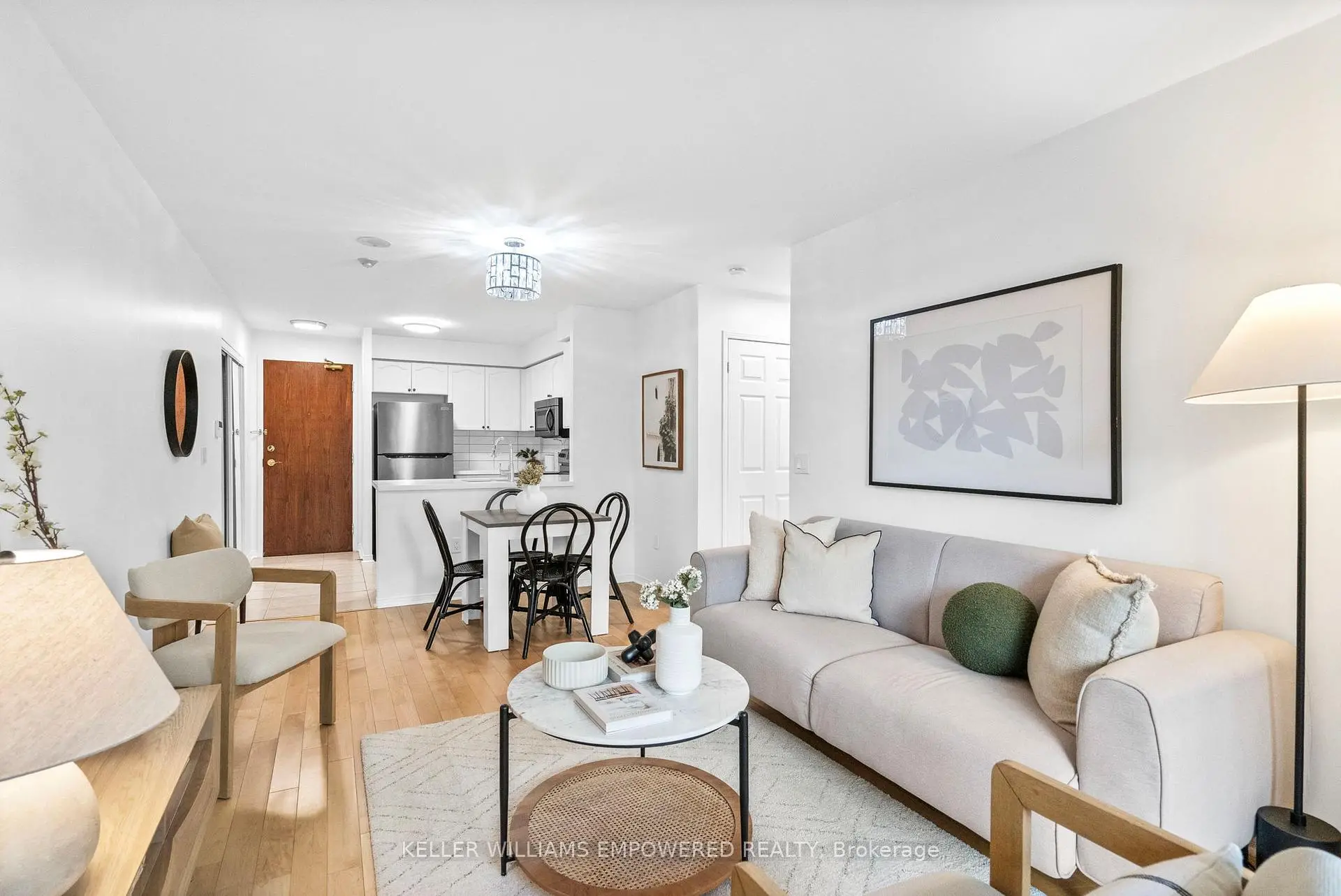 Bright, private, and perfectly positioned in a highly walkable, amenity-rich community. This thoughtfully designed condo offers exceptional convenience, just a 10-minute walk to Islington subway with easy access to downtown and steps to everyday essentials.Unit 201 features an open-concept layout with hardwood floors throughout, an updated kitchen with newer countertops and backsplash, and a refreshed bathroom vanity. The oversized bedroom provides flexibility for a work-from-home setup or additional storage.Enjoy rare privacy from your balcony with peaceful views of mature trees. Set within a boutique, well-managed 9-storey building, maintenance fees include air conditioning, heat, hydro, water, and parking, delivering outstanding value and ease of living.