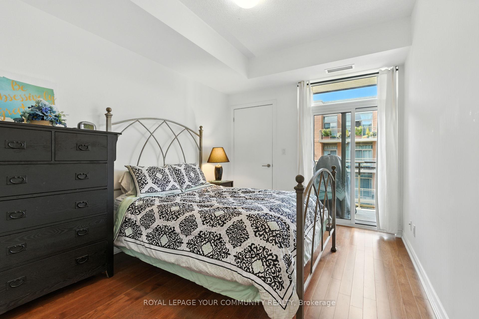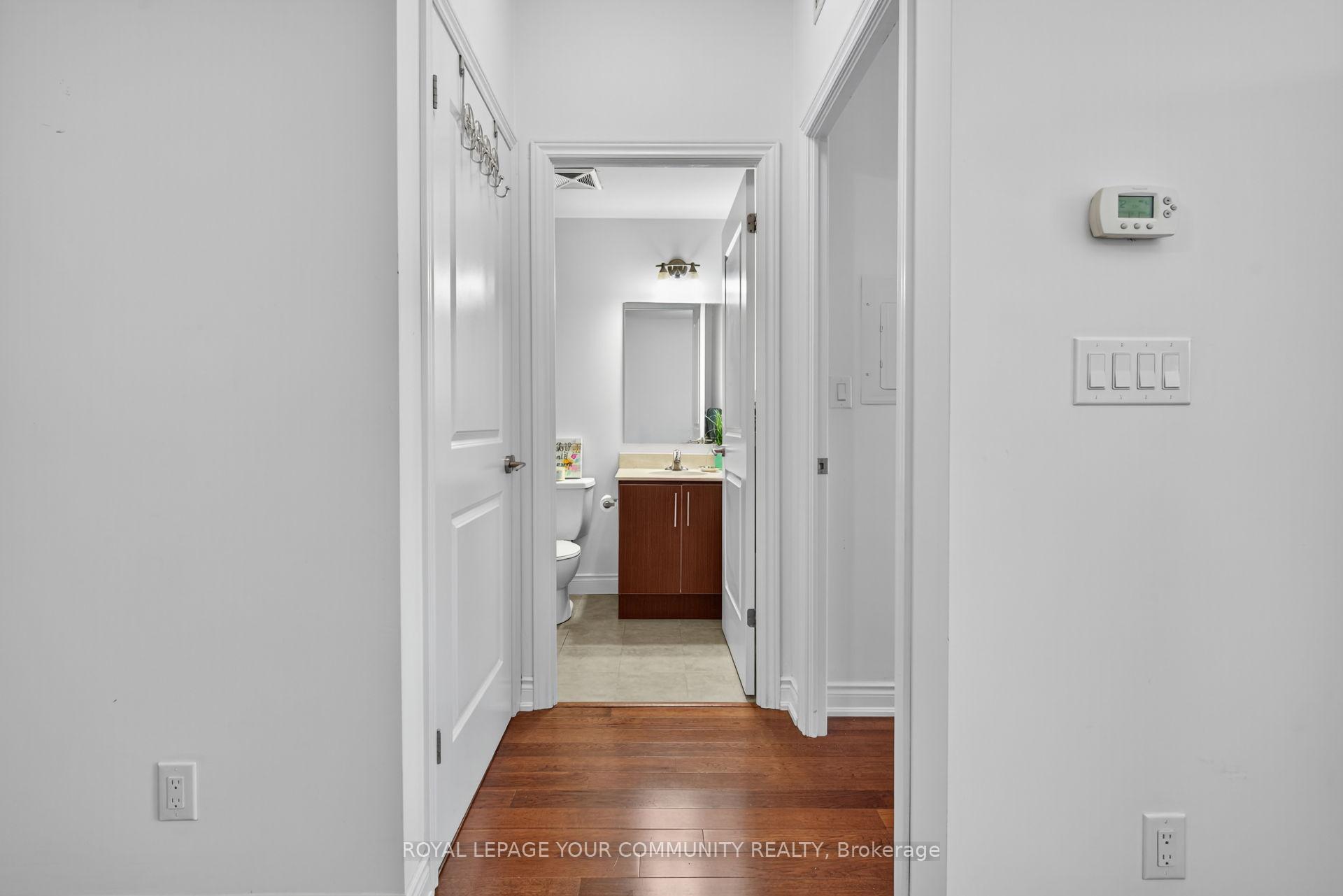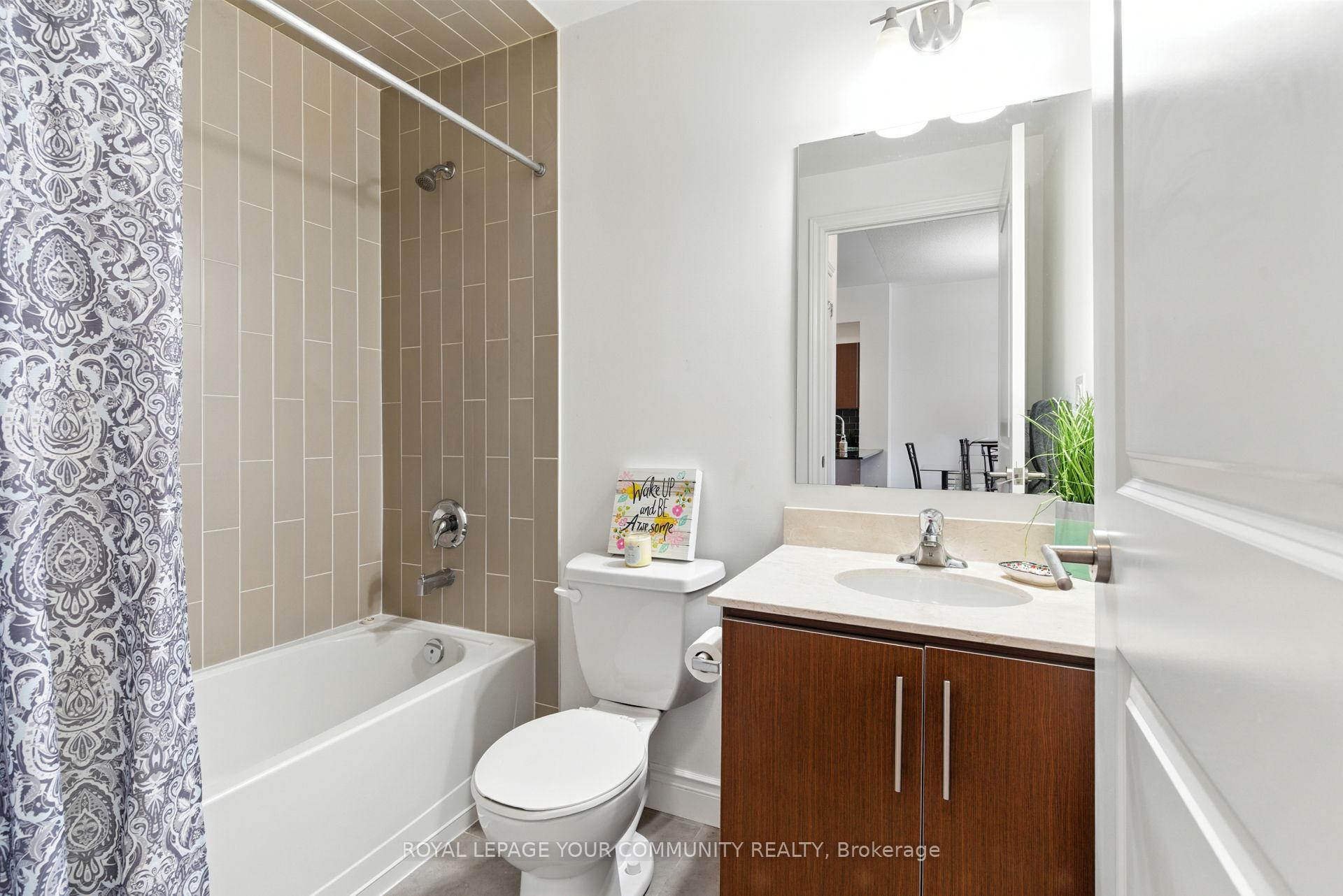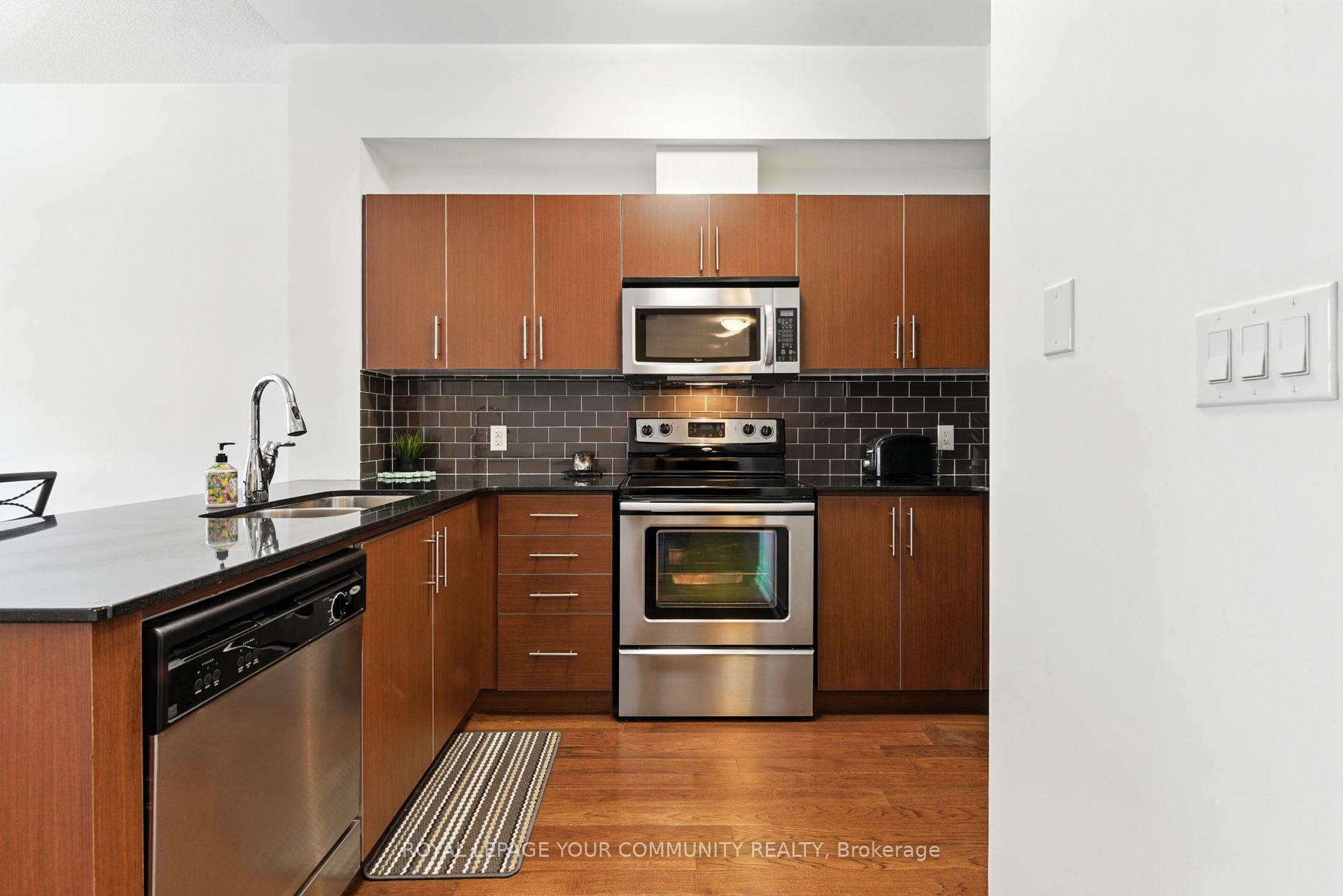 Boutique Condo in the heart of Woodbridge. Welcome to this rare 1 bedroom + Den with 1 parking spot & Locker. This unit boasts an open concept layout with soaring 9 foot ceilings, hardwood floors throughout and ceramic tile in bathroom. Upgraded kitchen with granite counters, backsplash and breakfast bar. Walk-out to a large balcony with west view and BBQ gas line for year round barbecuing. Den can be used as a home office or extra living space. Upgraded 4piece bath with marble vanity and upgraded bath tiles. Building amenities include newly renovated gym to stay active with sauna and showers. Host guests in the stylish party room or the well-appointed guest suites. Enjoy piece of mind that comes with onsite 24 concierge and secure bike storage. Just steps from charming shops, bakeries, restaurants, grocery and everyday conveniences in Market Lane. Experience refined living in one of Woodbridge's sought out neighborhood.