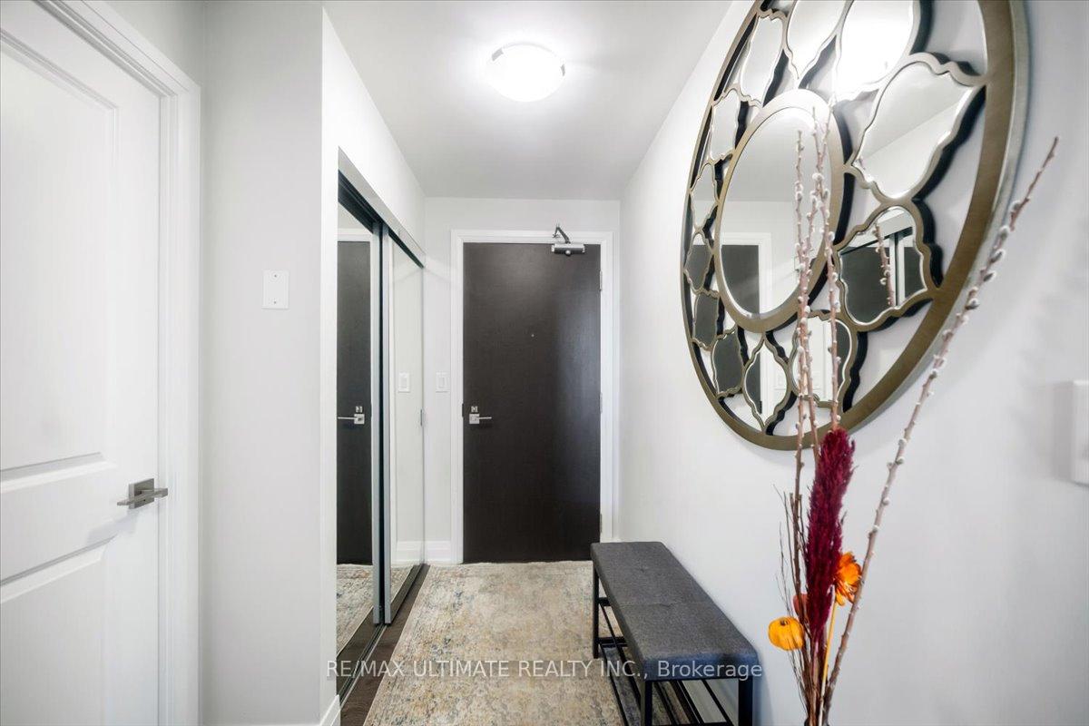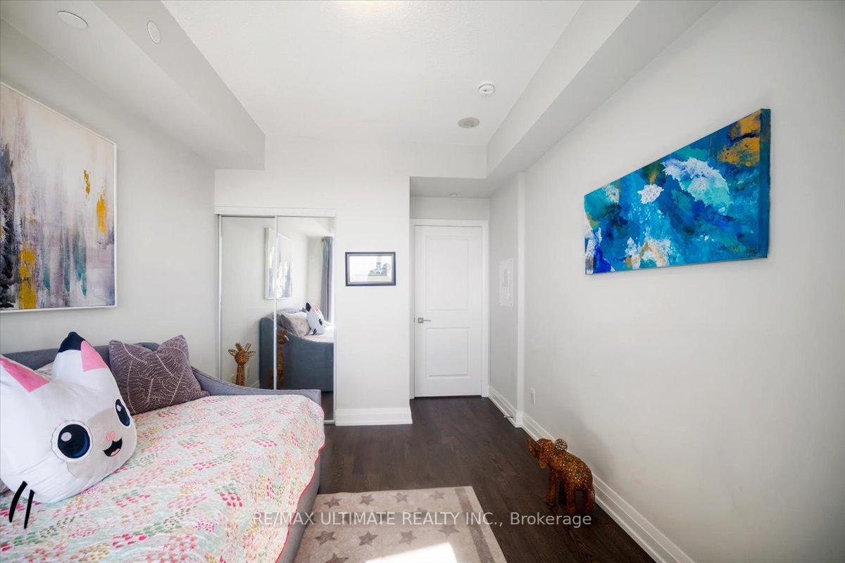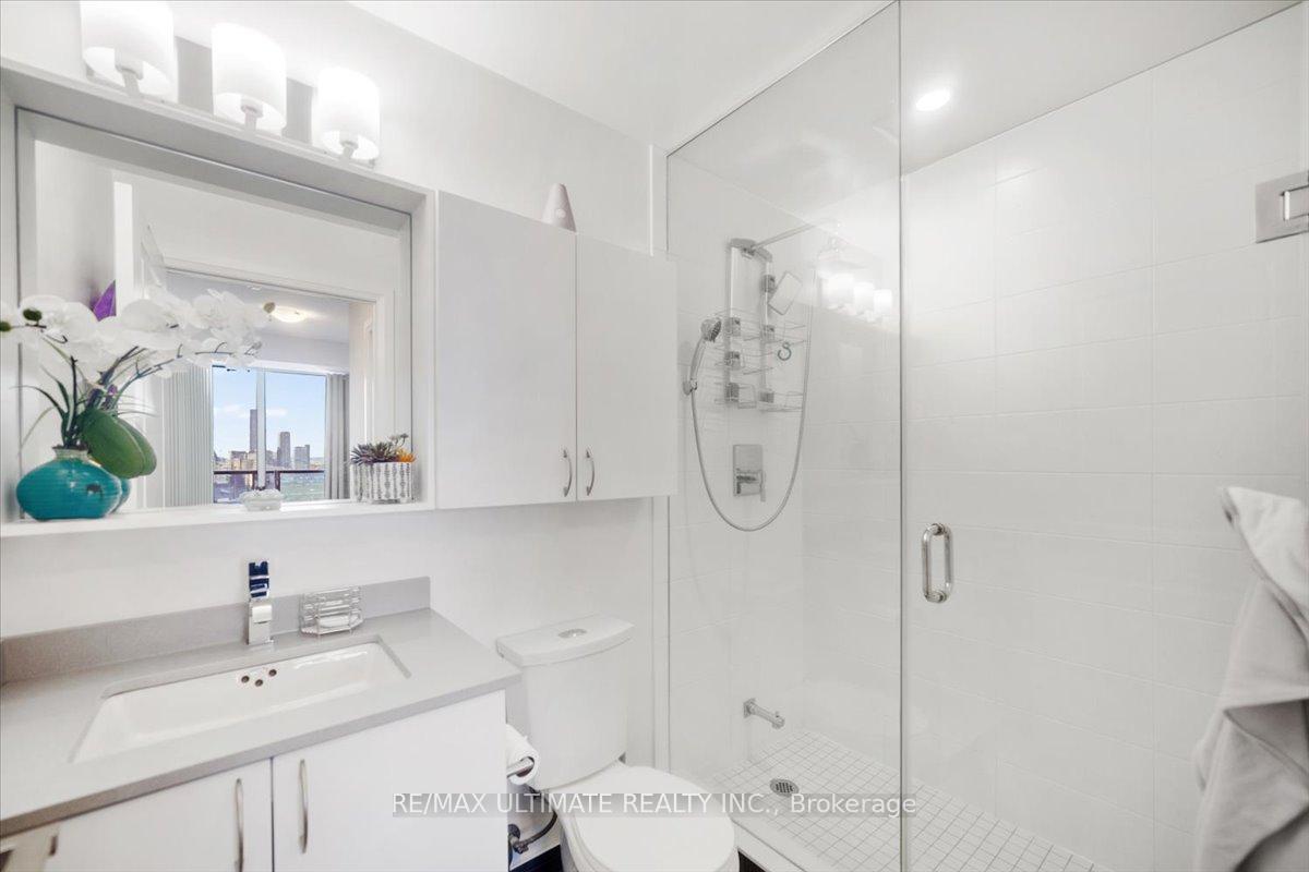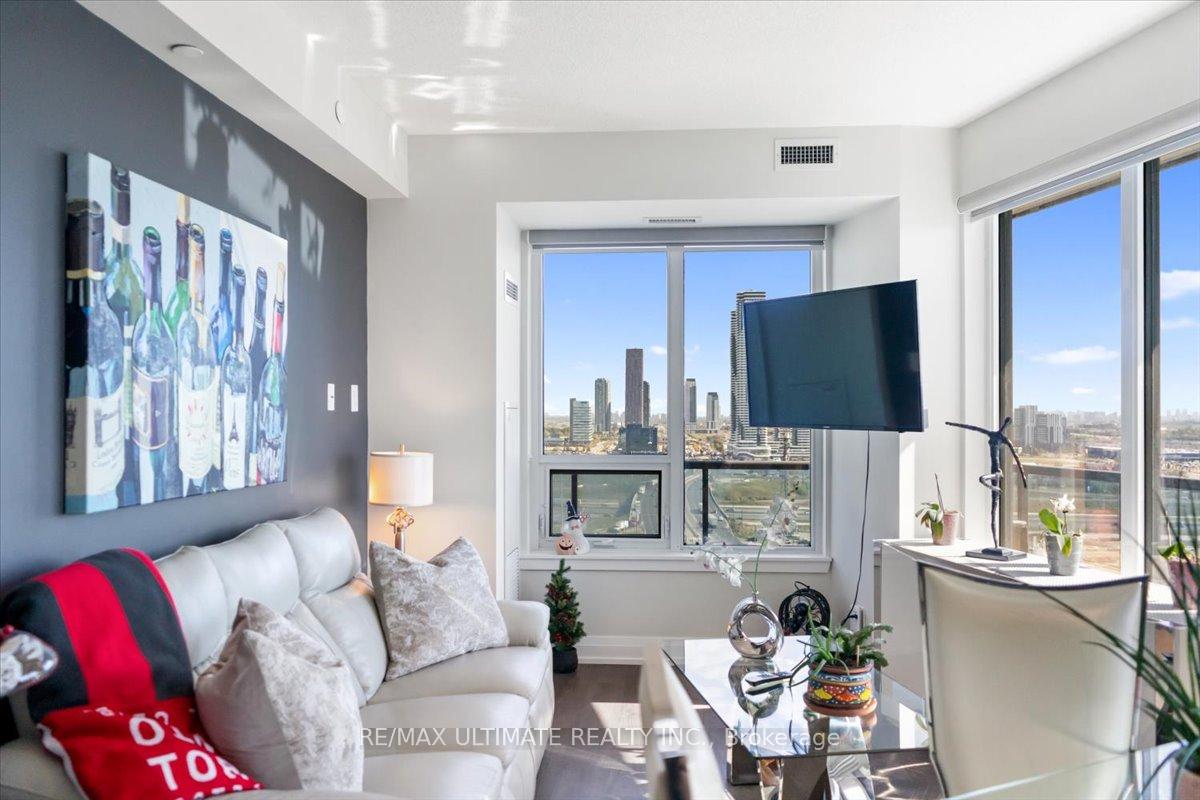 Welcome to Unit 2008 at Centro Square Condominiums, where modern living meets unmatched convenience in the heart of Vaughan. This spacious 2-bedroom, 2-bathroom corner suite offers a bright layout filling the home with natural light and providing sweeping views of the city skyline over a wrap-around balcony. The kitchen is equipped with upgraded stainless steel appliances, seamlessly flowing into the combined living and dining area. Both bedrooms are generously sized, with the master featuring its own ensuite, while the second full bathroom ensures comfort for family, guests, or a work-from-home setup. Residents enjoy access to resort-style amenities including a fitness centre, indoor pool, party and meeting rooms, golf simulator, outdoor BBQ and lounge area, billiards & media rooms, guest suites, and 24-hour concierge service. Perfectly located with direct access to shopping, dining, and entertainment all across the street, major highways, and just minutes from Vaughan Metropolitan Centre subway station, this unit delivers the ideal blend of style, function, and urban lifestyle. Top of the line upgrades added include under-mount lighting, glass shower enclosure in master ensuite, stainless steel appliances, full-size washer & dryer, mirrored closet doors, kitchen cabinetry, and bath & kitchen fixtures.