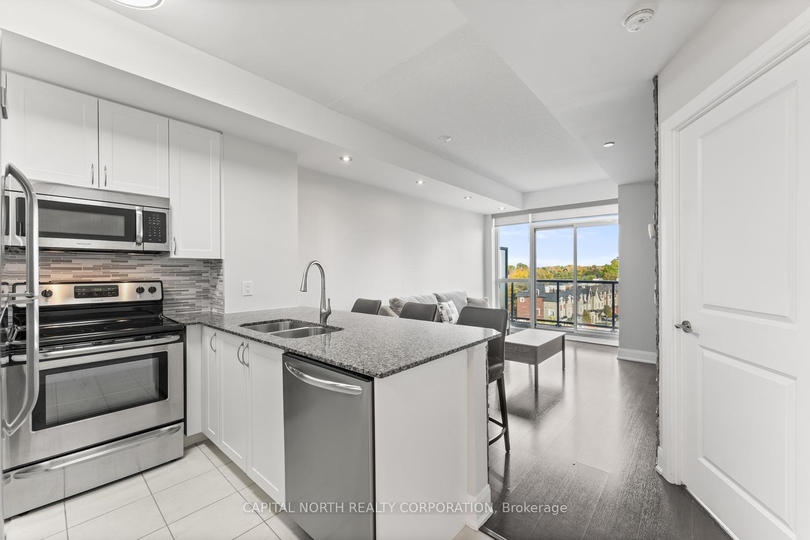 Beautiful 1+Den Suite In A Luxury Low-Rise At 4700 Hwy 7 In The Heart Of Woodbridge. This Bright 651 Sq.Ft. Layout With Laminate Floors, Granite Counters, Full-Size Stainless Steel Appliances & 2 Baths Is One Not To Be Missed. This Unit Features North-Facing Green Views Which You Can Enjoy From Your Balcony. The Den Is Perfect For A Home Office, Storage Or For A 2nd Bedroom. Ensuite Laundry, 1 Parking & 1 Locker Included. Top-Tier Amenities: Gym, Guest Suites And Party Room. Steps To Transit, Shopping & More. Close To Highway 407, 400 And 427. Location And Unit Size Are Perfect For First Tome Home Buyers, Downsizers Or Investors.