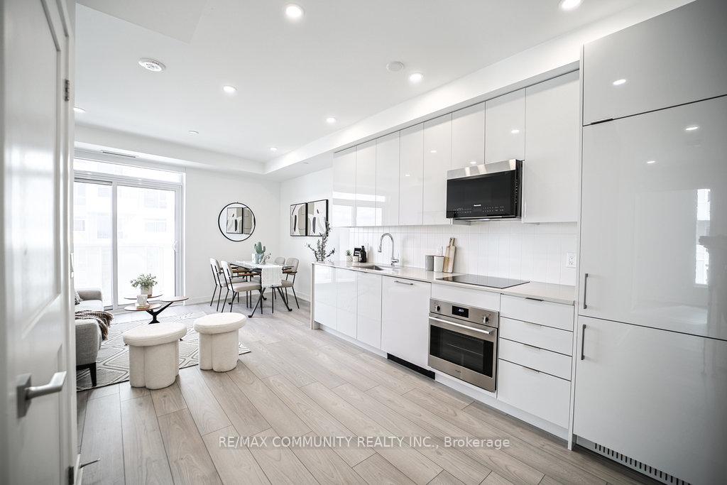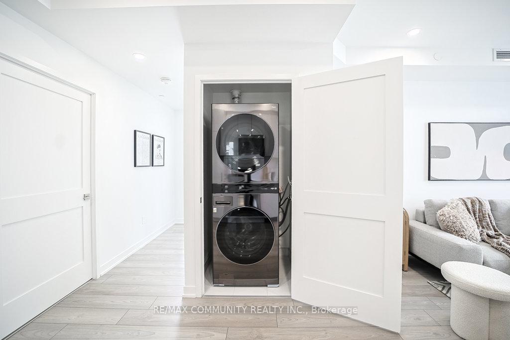 Welcome to a stunning, turn-key residence in Abeja District Tower 1, where luxury meets unparalleled convenience. This exquisite suite offers 755 sq ft of meticulously upgraded interior space, perfectly complemented by a 65 sq ft balcony providing absolutely breathtaking, unobstructed Southwest views of Vaughan. Inside, you'll immediately notice the nearly $25,000 in premium upgrades lavished upon the unit, starting with pot lights throughout the main living areas and premium laminate floors. The open-concept design centers around a spectacular, modern kitchen featuring Quartz Countertops with a sleek waterfall-edge feature, making it an ideal space for both cooking and entertaining. The unit boasts two decent-sized bedrooms, while the large, upgraded bathroom is a true spa-like retreat, finished with the utmost attention to luxury details. Practical features like an upgraded stacked washer & dryer in the ensuite laundry, mirrored closet doors, and one dedicated parking space enhance the appeal of this bright, sun-filled home. This excellent Vaughan location is truly unbeatable, placing you steps from Public Transitand YRT, and mere minutes from Vaughan Mills Shopping Centre, Canada's Wonderland, and Cortellucci Vaughan Hospital. This is modern urban living at its finest, ready for you to simply move in and enjoy.