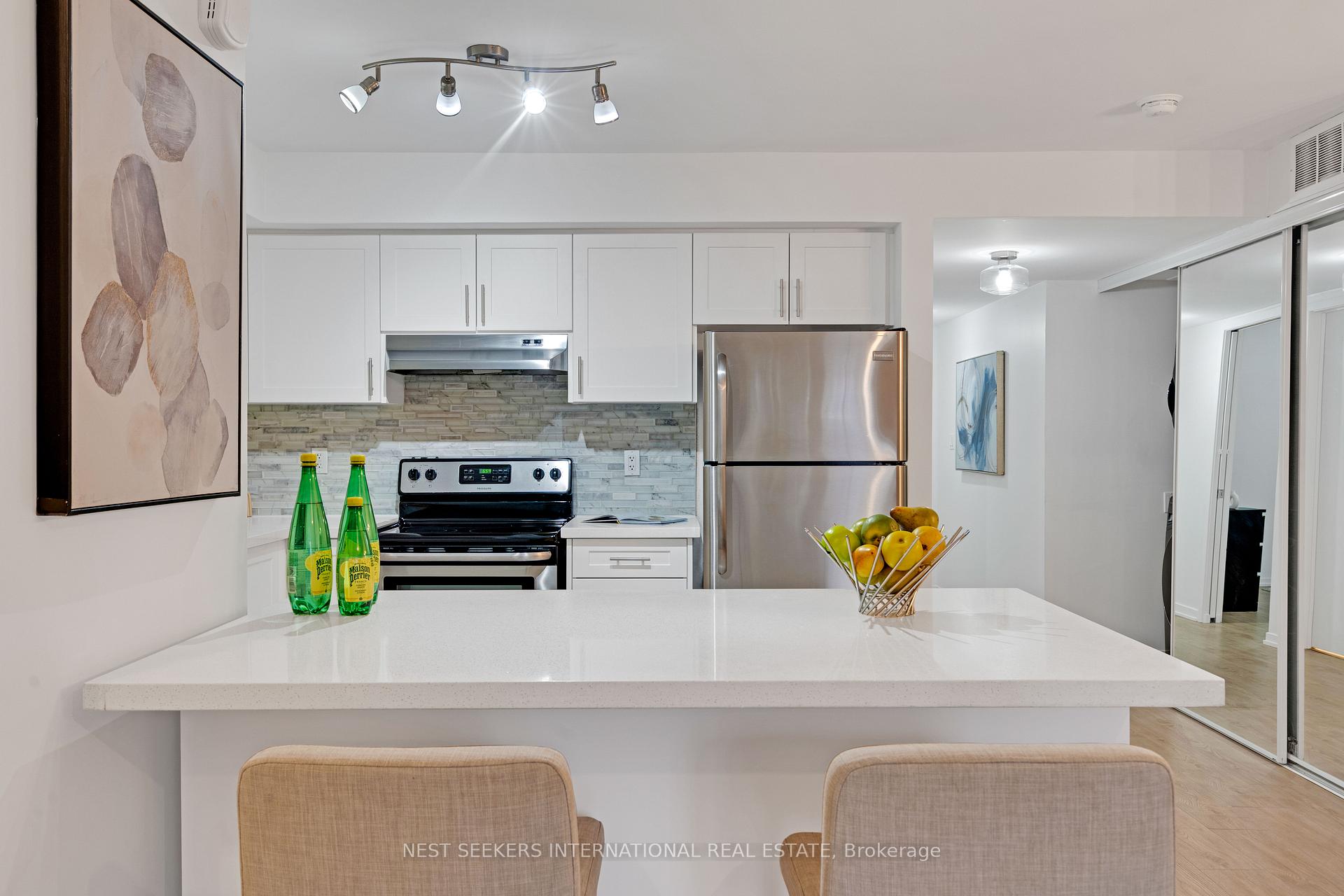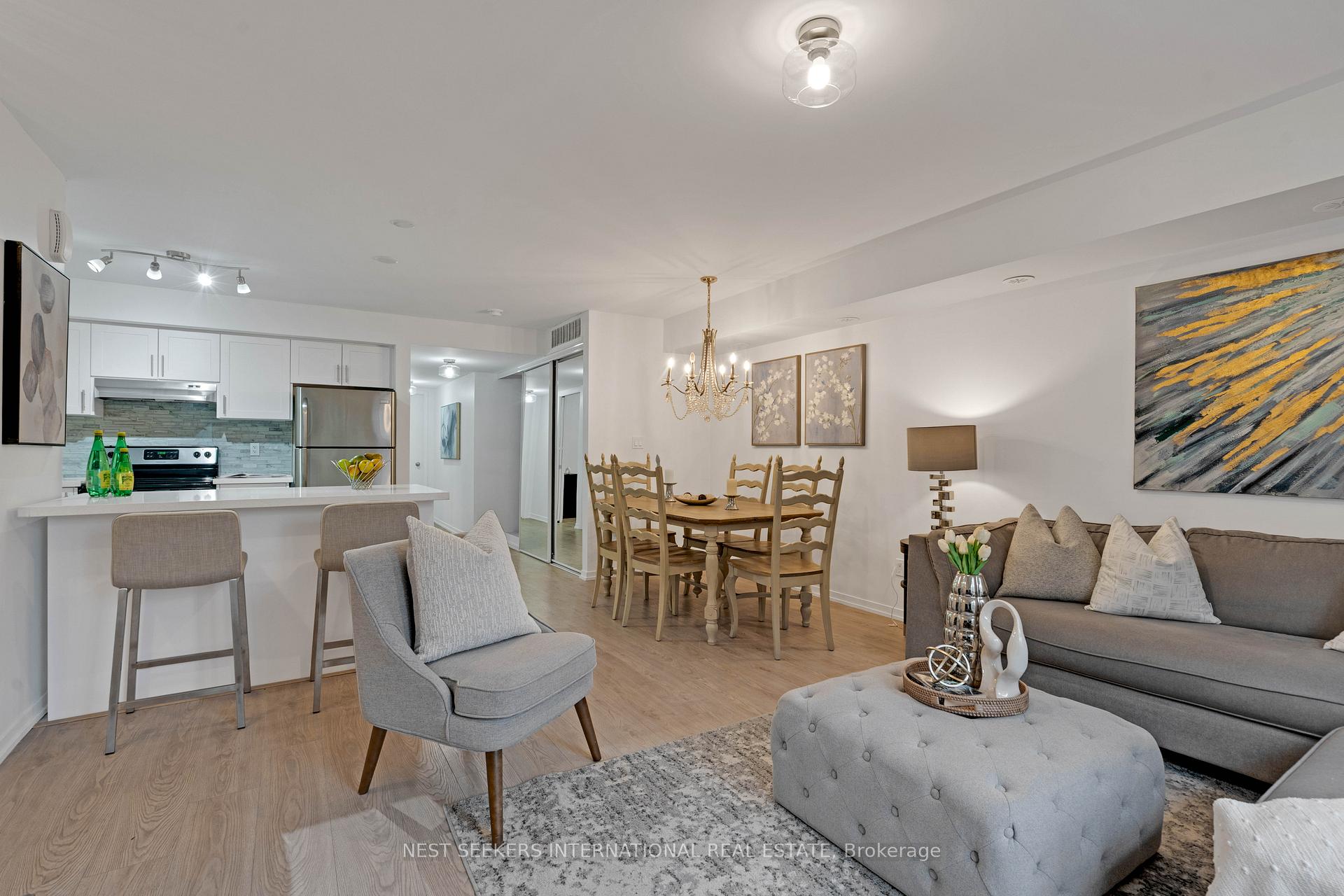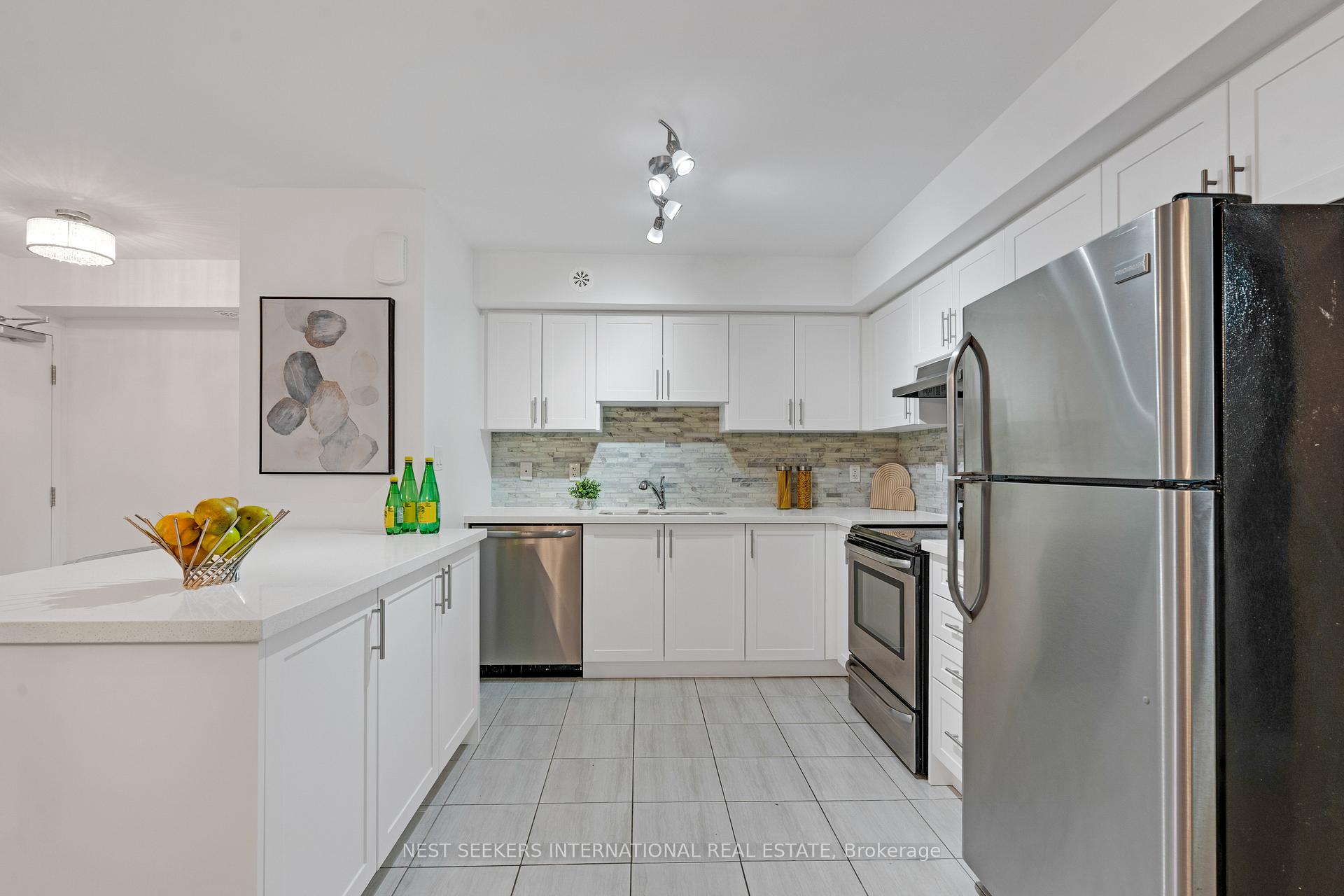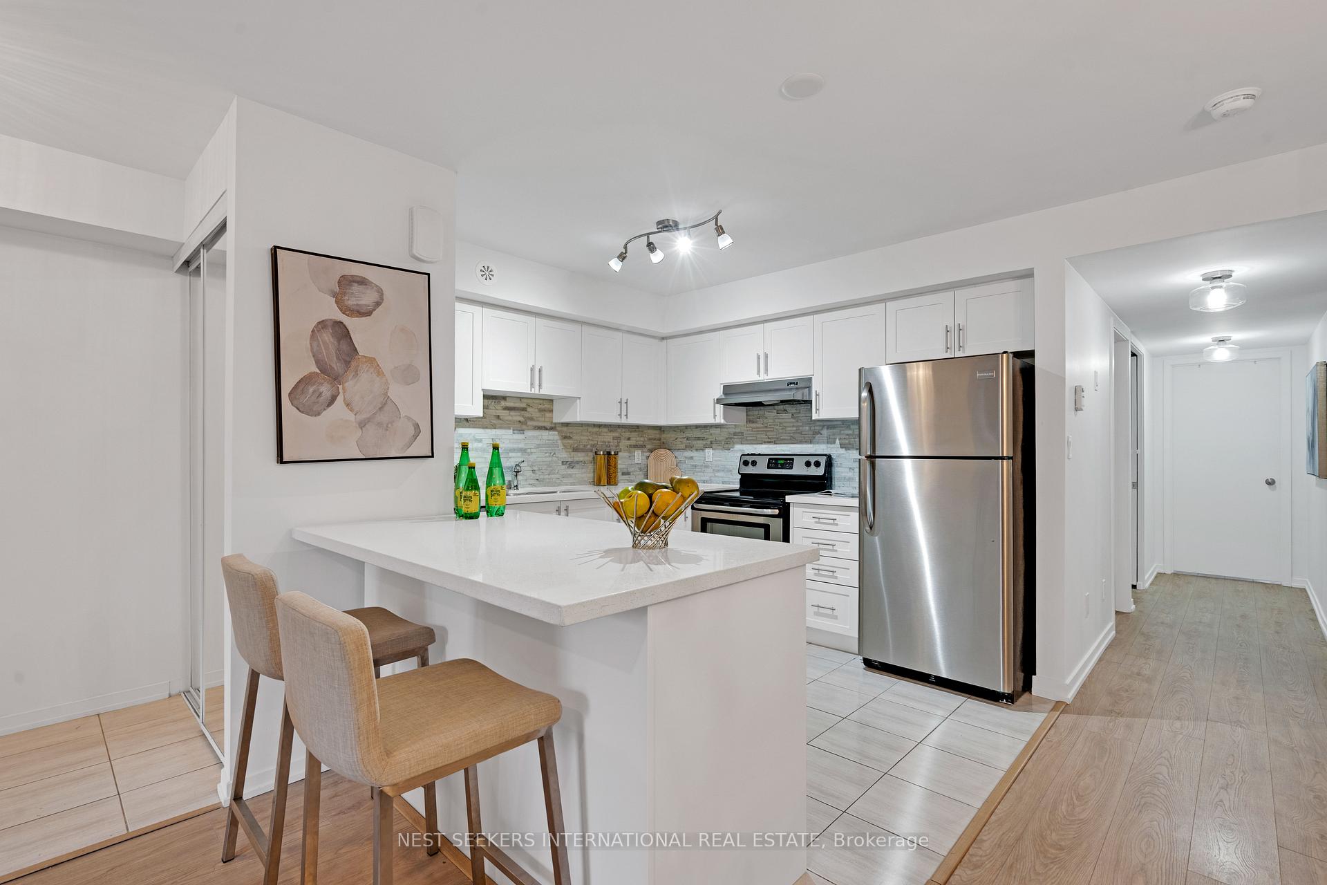 Welcome to this well-kept, turnkey condo townhome located right on the vibrant Highway 7transit corridor in the heart of Vaughan. This bright and spacious one-level residence offers977 sq. ft. of thoughtfully designed living space featuring 2 bedrooms and 2 full bathrooms. Enjoy an open-concept layout with stylish finishes throughout, including sleek quartz countertops, stainless steel appliances, and large lookout windows that fill the home with natural light. The unit features no carpet for easy maintenance and a clean, modern aesthetic. Step out to your terrace-perfect for morning coffee or evening BBQs-with a convenient gas line connection. Additional highlights include one locker and a private underground parking space ideally situated for easy access. Located steps from public transit and minutes to the TTC subway, major highways, shopping, restaurants, and entertainment, this home offers unmatched convenience and connectivity. Whether you're a first-time buyer, down-sizer, or investor, this move-in-ready townhome combines comfort, style, and location in one exceptional package.