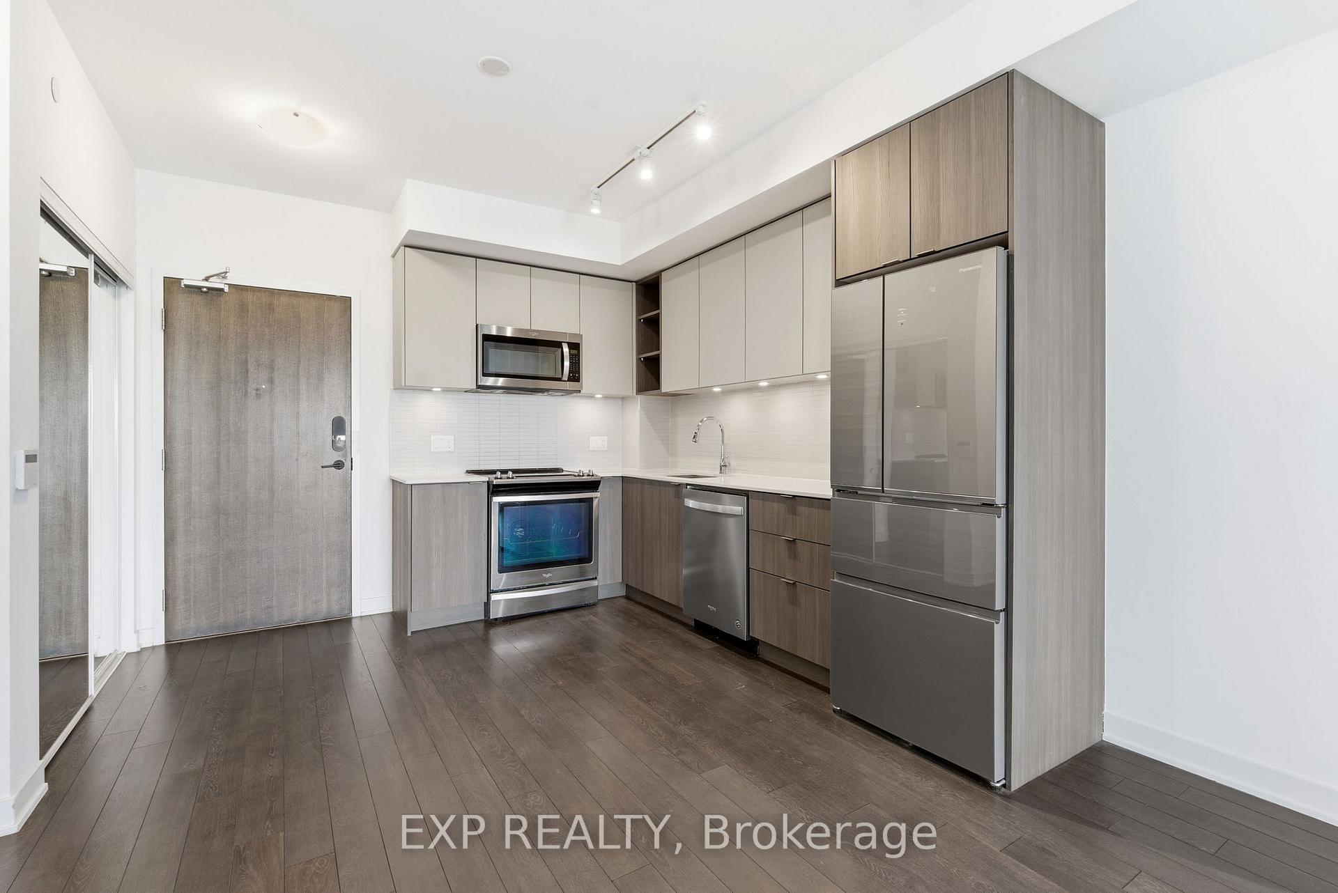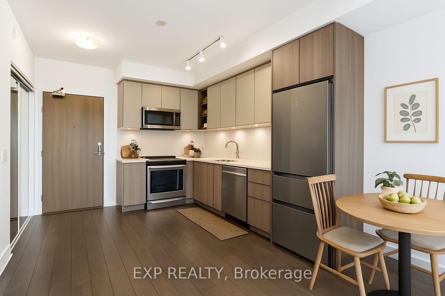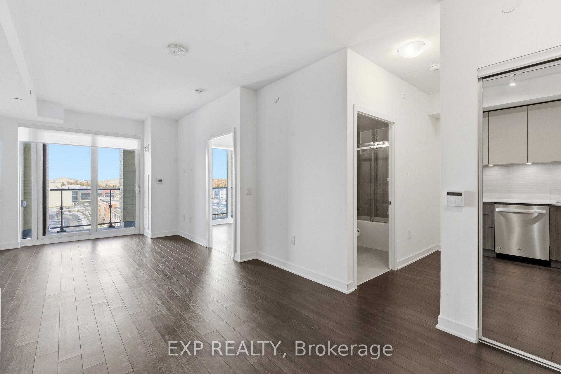 Modern Living Meets Urban Convenience at 100 Eagle Rock Way, Suite 730. Welcome to Unit 730, a bright and stylish 1+1 bedroom suite offering the perfect blend of comfort, convenience, and contemporary design in the heart of Vaughan. This beautifully maintained condo features 595 sq ft of thoughtfully designed open-concept living, complete with a rare oversized terrace-your own private outdoor escape with serene north-facing views. Inside, warm hardwood floors guide you through the airy living and dining area, ideal for relaxing or entertaining. The modern kitchen shines with stainless steel appliances, a built-in microwave, a built-in dishwasher, and ample storage. The spacious bedroom features a large wall of windows and double closet, while the versatile den offers the perfect space for a home office, study nook, or creative corner. Enjoy year-round comfort with central air, in-suite laundry, and inclusive maintenance fees covering heat, water, parking, and building insurance. Your new home also includes an owned underground parking space and an owned locker for added convenience. The building boasts fantastic amenities, including a rooftop deck/garden, sleek gym, party/meeting room, and plentiful visitor parking, making it an ideal spot for first-time buyers, downsizers, or investors looking to join one of Vaughan's most desirable communities. With easy access to transit, shopping, parks, and major highways, this suite delivers comfort, style, and unmatched convenience. Only 1 minute drive, or a 2-minute walk to the Go Station for easy commute downtown.