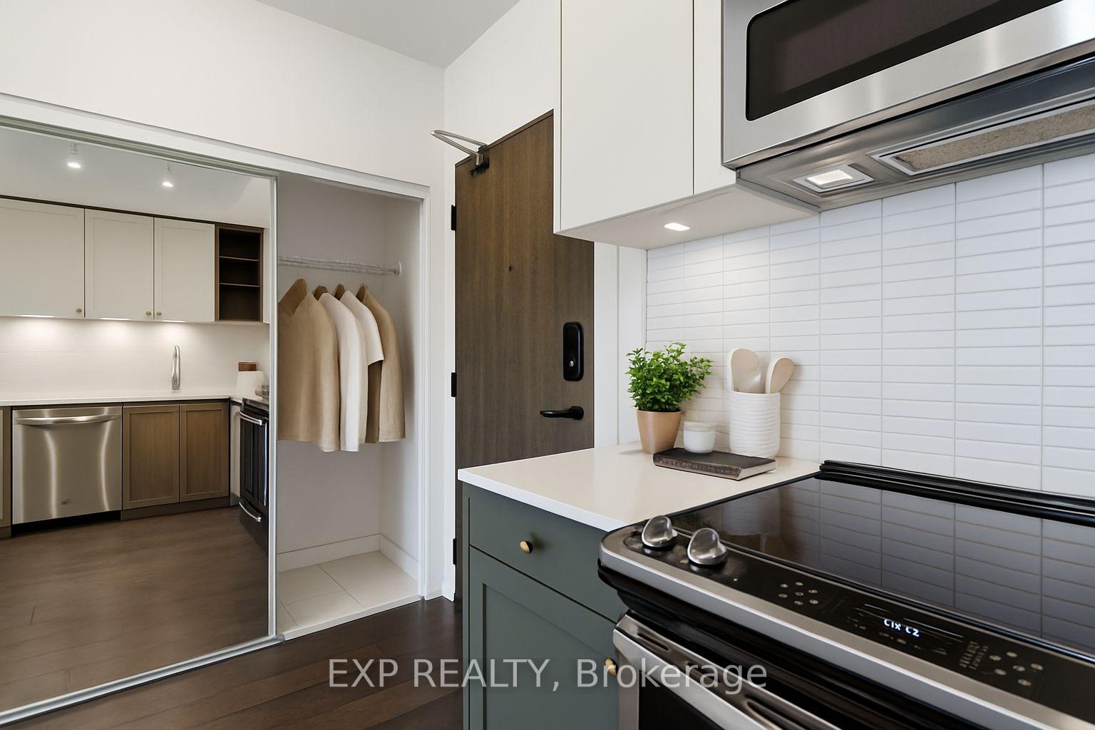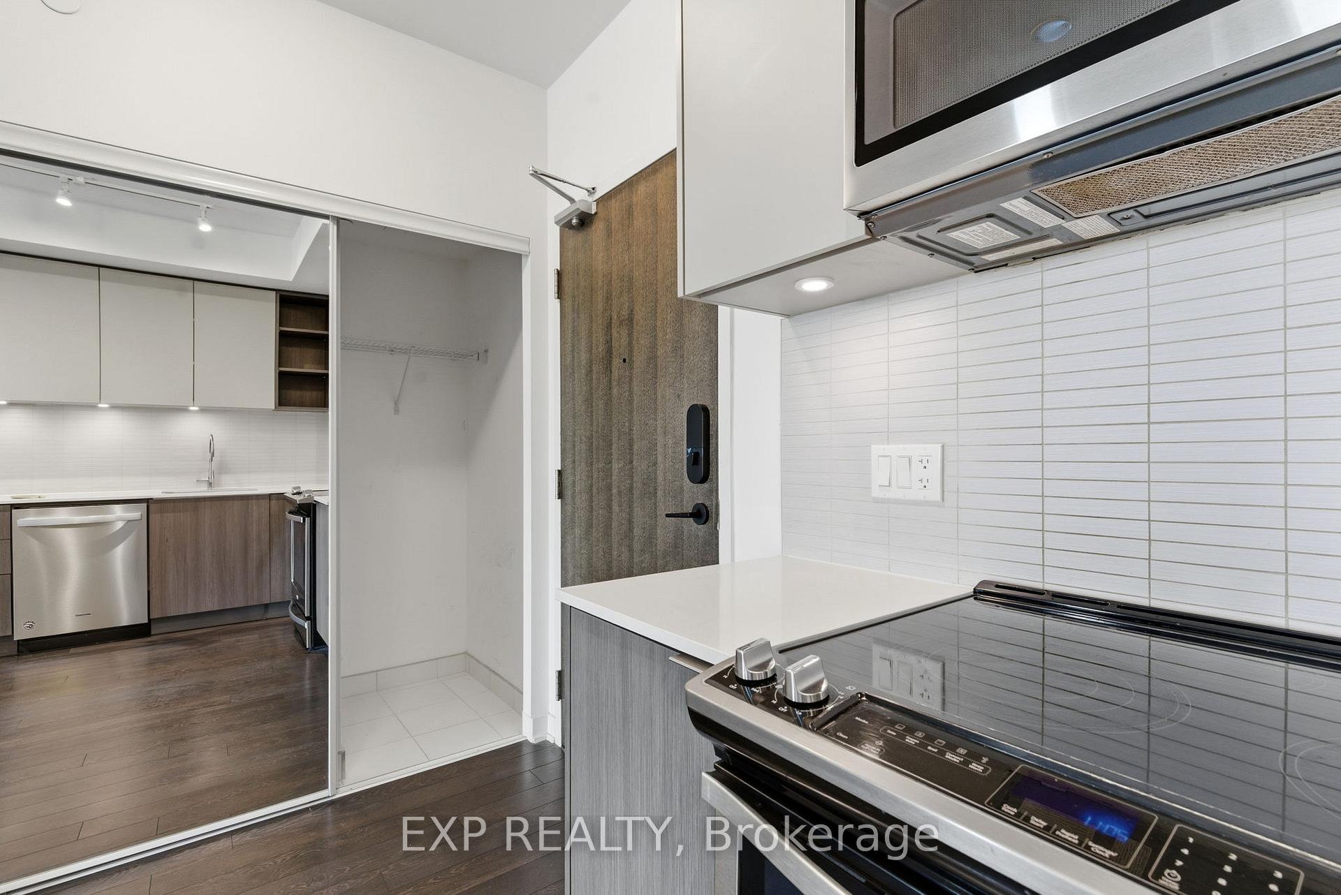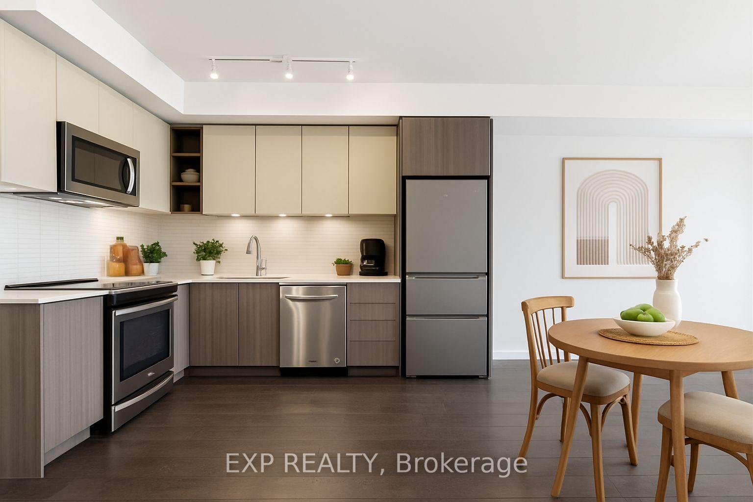Modern Living Meets Urban Convenience at 100 Eagle Rock Way, Suite 730. Welcome to Unit 730, a bright and stylish 1+1 bedroom suite offering the perfect blend of comfort, convenience, and contemporary design in the heart of Vaughan. This beautifully maintained condo features 595 sq ft of thoughtfully designed open-concept living, complete with a rare oversized terrace-your own private outdoor escape with serene north-facing views. Inside, warm hardwood floors guide you through the airy living and dining area, ideal for relaxing or entertaining. The modern kitchen shines with stainless steel appliances, a built-in microwave, a built-in dishwasher, and ample storage. The spacious bedroom features a large wall of windows and double closet, while the versatile den offers the perfect space for a home office, study nook, or creative corner. Enjoy year-round comfort with central air, in-suite laundry, and inclusive maintenance fees covering heat, water, parking, and building insurance. Your new home also includes an owned underground parking space and an owned locker for added convenience. The building boasts fantastic amenities, including a rooftop deck/garden, sleek gym, party/meeting room, and plentiful visitor parking, making it an ideal spot for first-time buyers, downsizers, or investors looking to join one of Vaughan's most desirable communities. With easy access to transit, shopping, parks, and major highways, this suite delivers comfort, style, and unmatched convenience. Only 1 minute drive, or a 2-minute walk to the Go Station for easy commute downtown.
