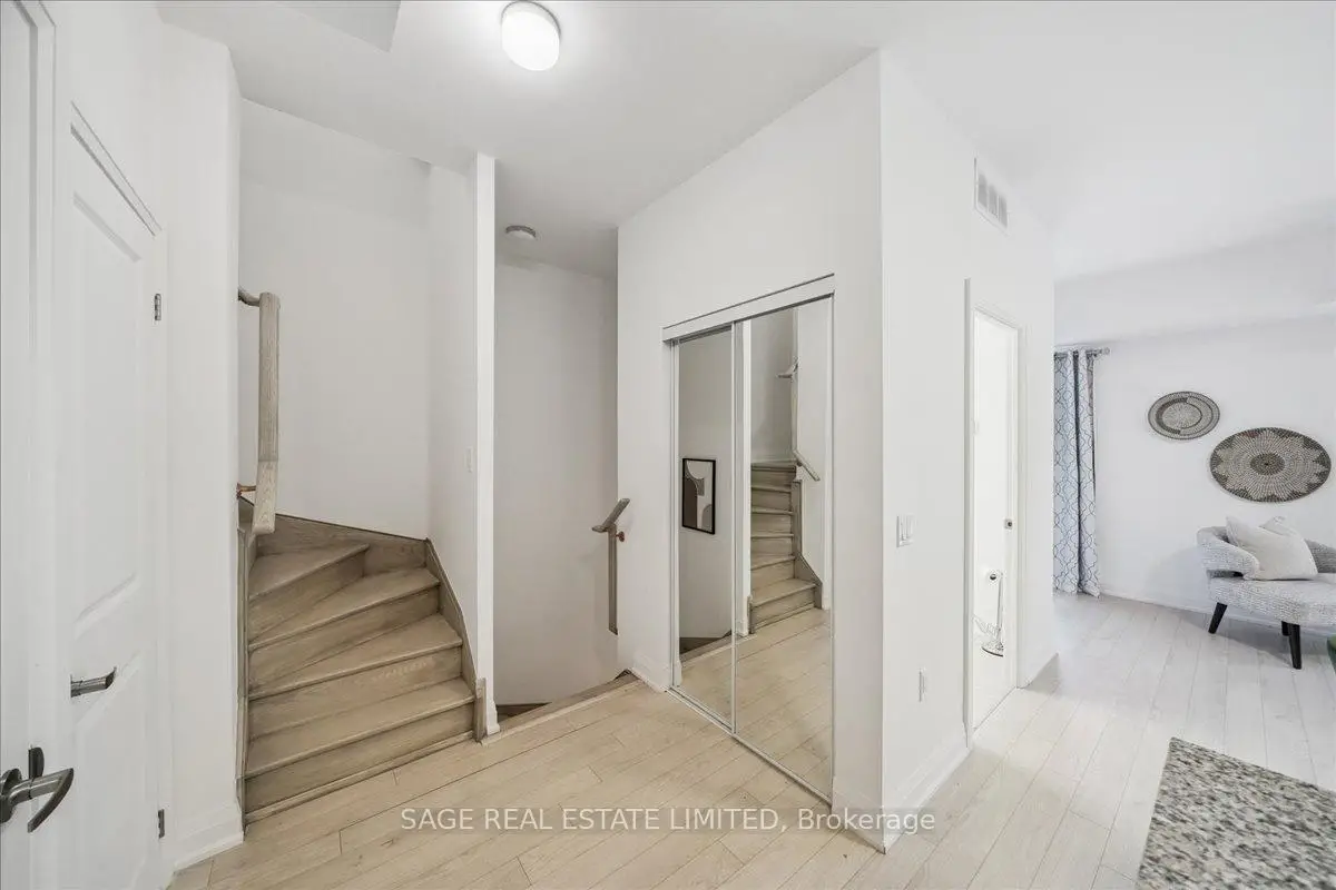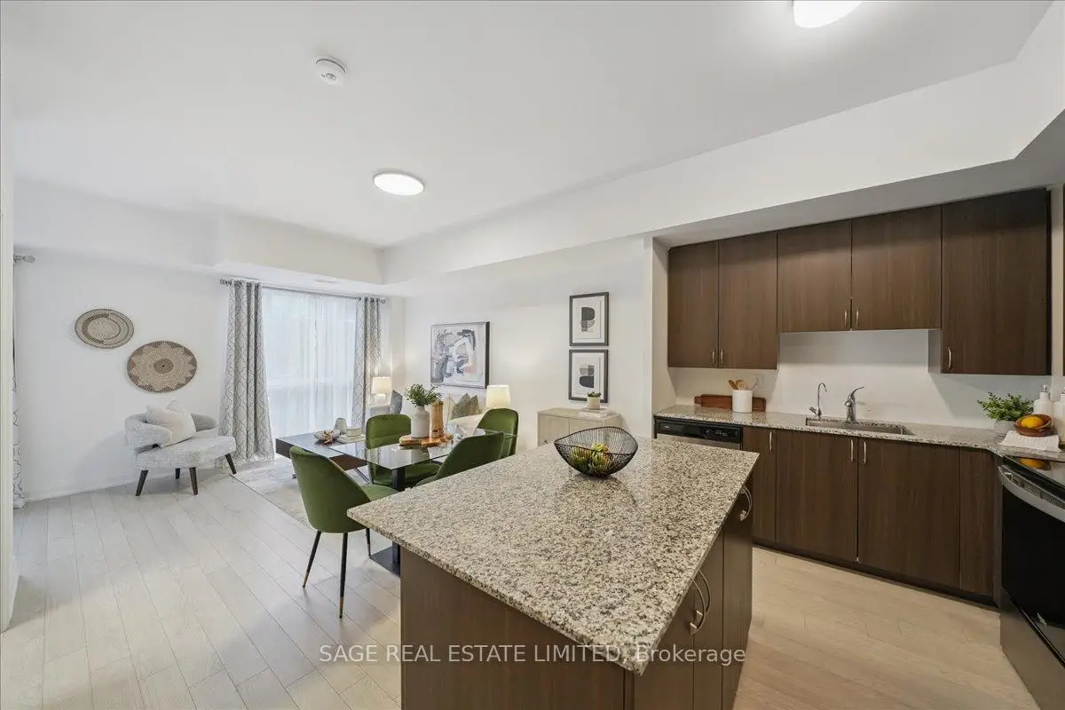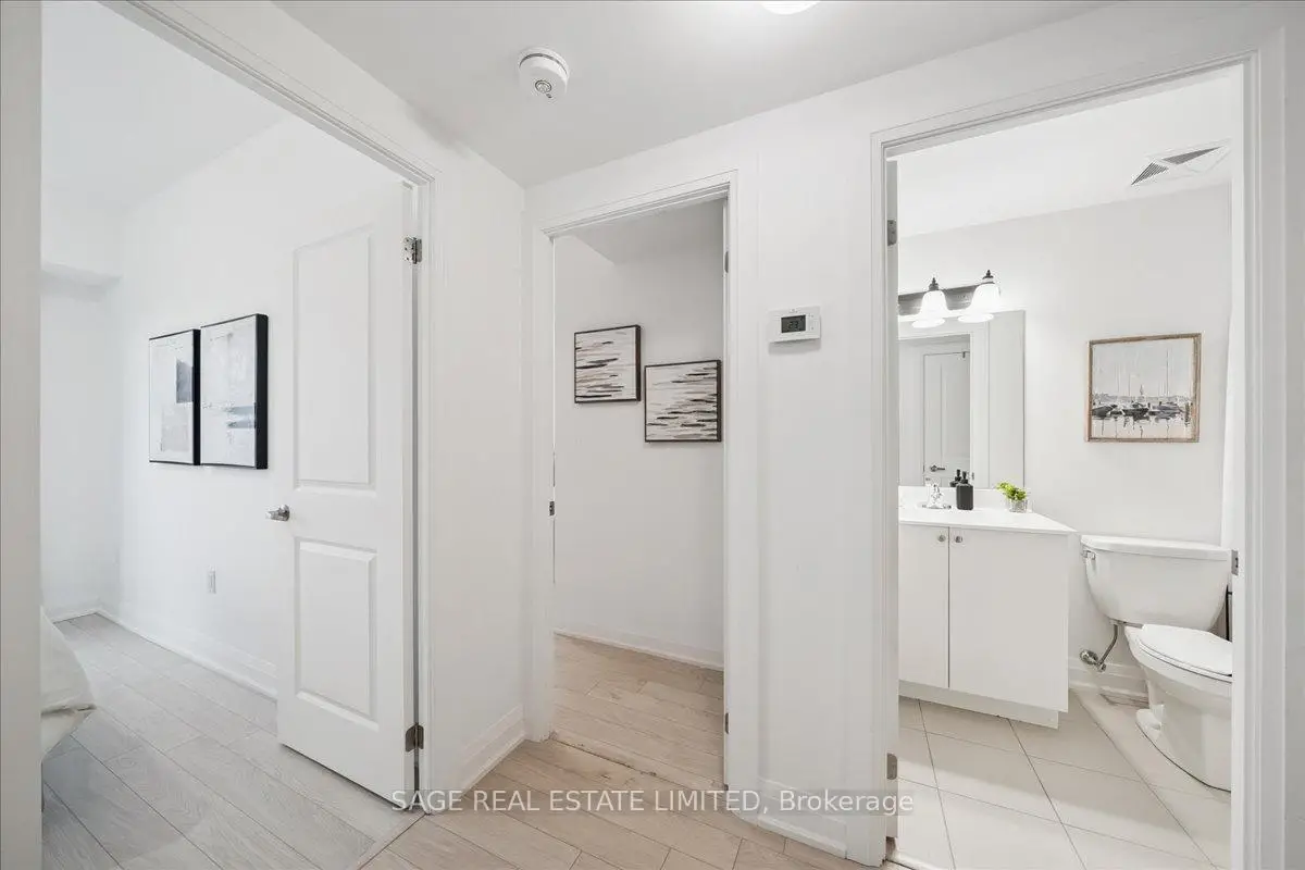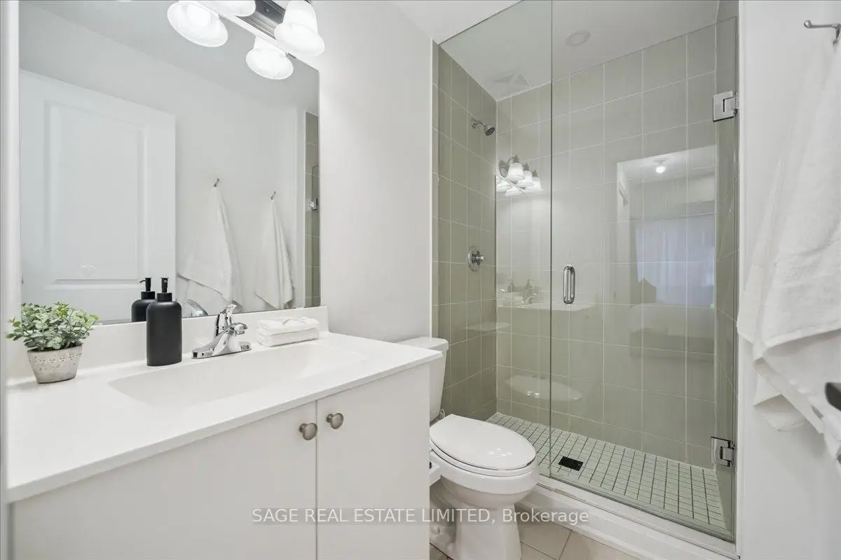 This two-storey townhome blends modern design with real-world comfort. Inside: open-concept living that actually feels open - hardwood-style floors, bright pot-lit ceilings, and a kitchen built for both weekday dinners and Friday-night take-out. Quartz counters, full-size stainless appliances, and a centre island that doubles as your best dinner-party wingman.Upstairs, two spacious bedrooms and two full baths deliver real privacy. The primary suite includes a walk-in closet and spa-style ensuite, while the second bedroom opens to its own balcony. And when you need fresh air - skip the crowded patios. Head up to your private rooftop terrace with open air views and enough space for a sectional, grill, and Sunday-morning coffee.Downstairs, two parking spaces and a locker keep life simple.Steps to the Highway 7 bus stop, Viva Transit, and a short ride to Vaughan Metropolitan Centre Station. Walk to Market Lane shops, Woodbridge Ave cafes, and endless parks.Ideal for professionals, first-time buyers, or downsizers who still like to entertain. A rare blend of space, storage, and serenity - all wrapped in a move-in-ready package.