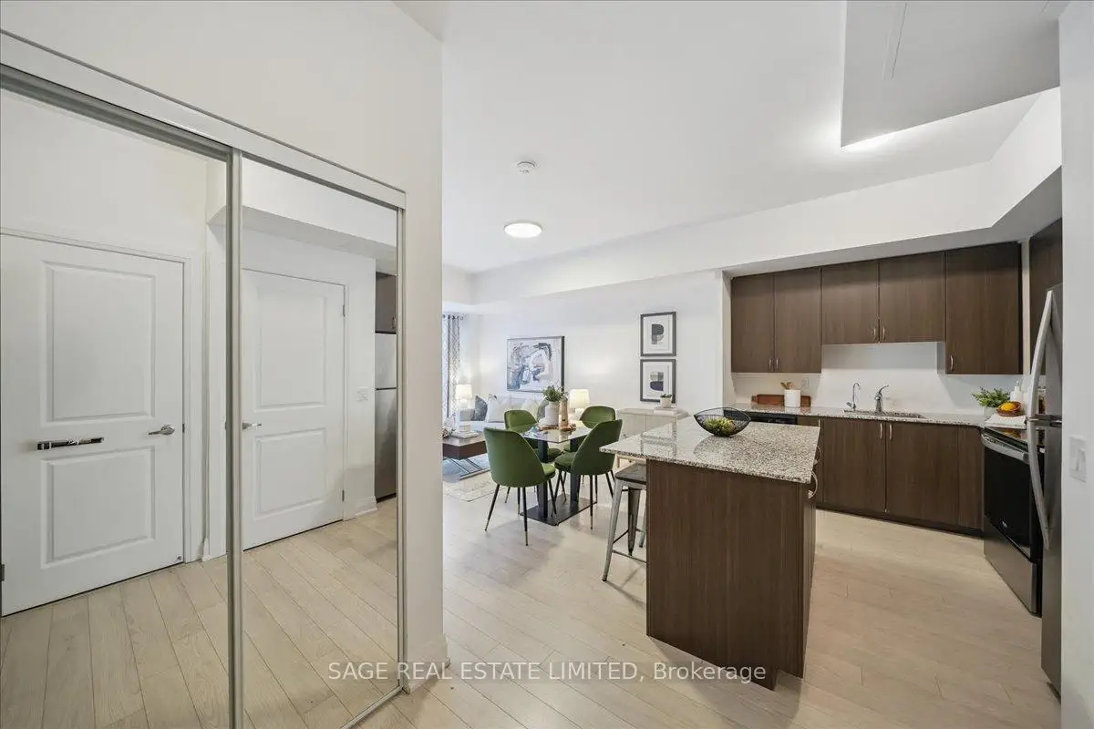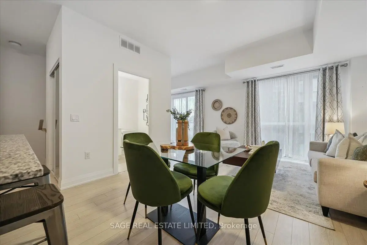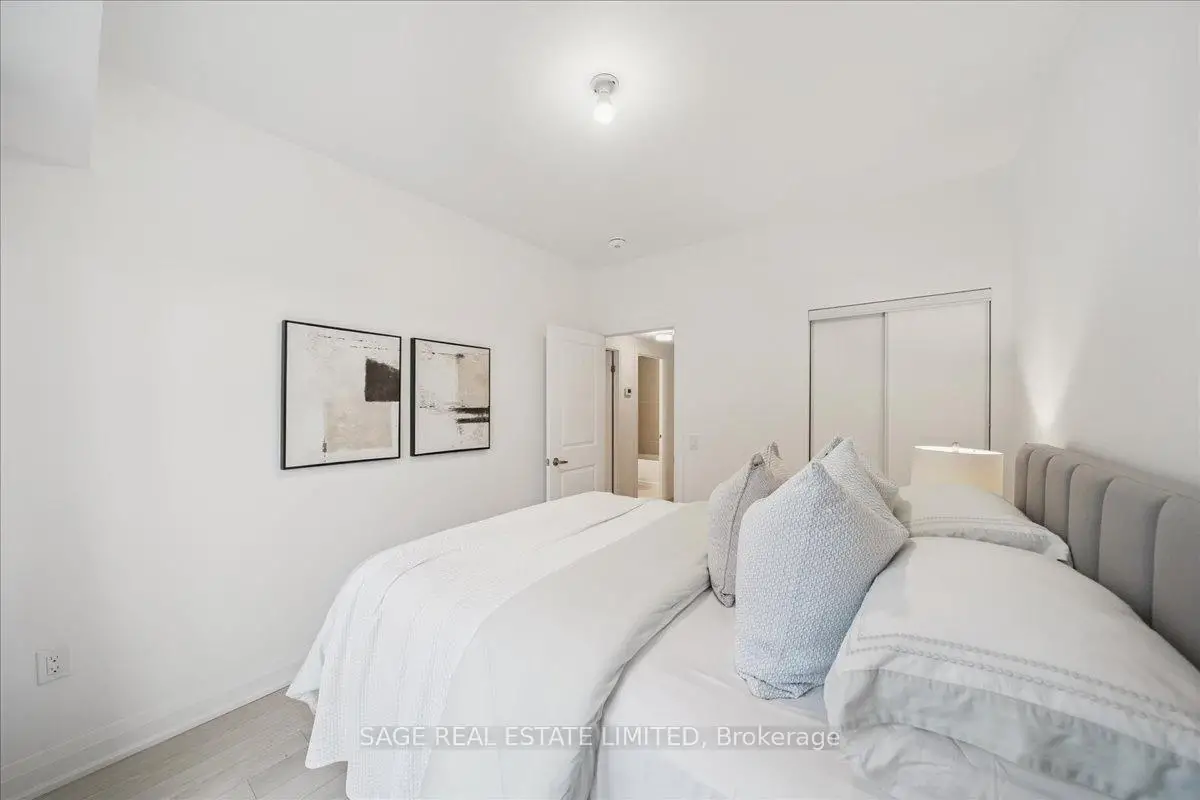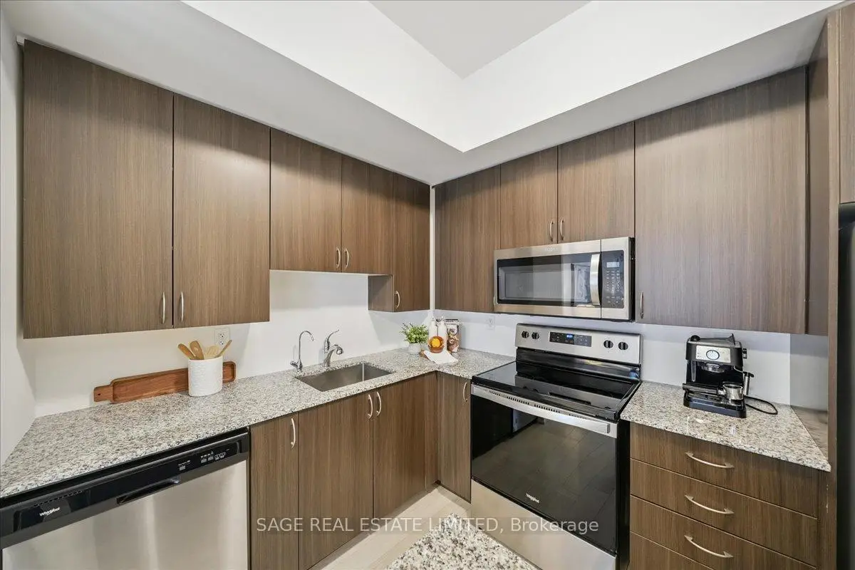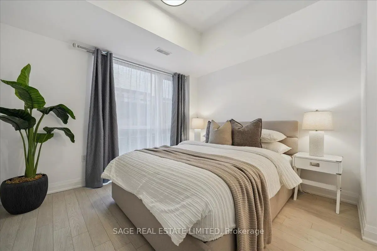 This two-storey townhome blends modern design with real-world comfort. Inside: open-concept living that actually feels open - hardwood-style floors, bright pot-lit ceilings, and a kitchen built for both weekday dinners and Friday-night take-out. Quartz counters, full-size stainless appliances, and a centre island that doubles as your best dinner-party wingman.Upstairs, two spacious bedrooms and two full baths deliver real privacy. The primary suite includes a walk-in closet and spa-style ensuite, while the second bedroom opens to its own balcony. And when you need fresh air - skip the crowded patios. Head up to your private rooftop terrace with open air views and enough space for a sectional, grill, and Sunday-morning coffee.Downstairs, two parking spaces and a locker keep life simple.Steps to the Highway 7 bus stop, Viva Transit, and a short ride to Vaughan Metropolitan Centre Station. Walk to Market Lane shops, Woodbridge Ave cafes, and endless parks.Ideal for professionals, first-time buyers, or downsizers who still like to entertain. A rare blend of space, storage, and serenity - all wrapped in a move-in-ready package.
