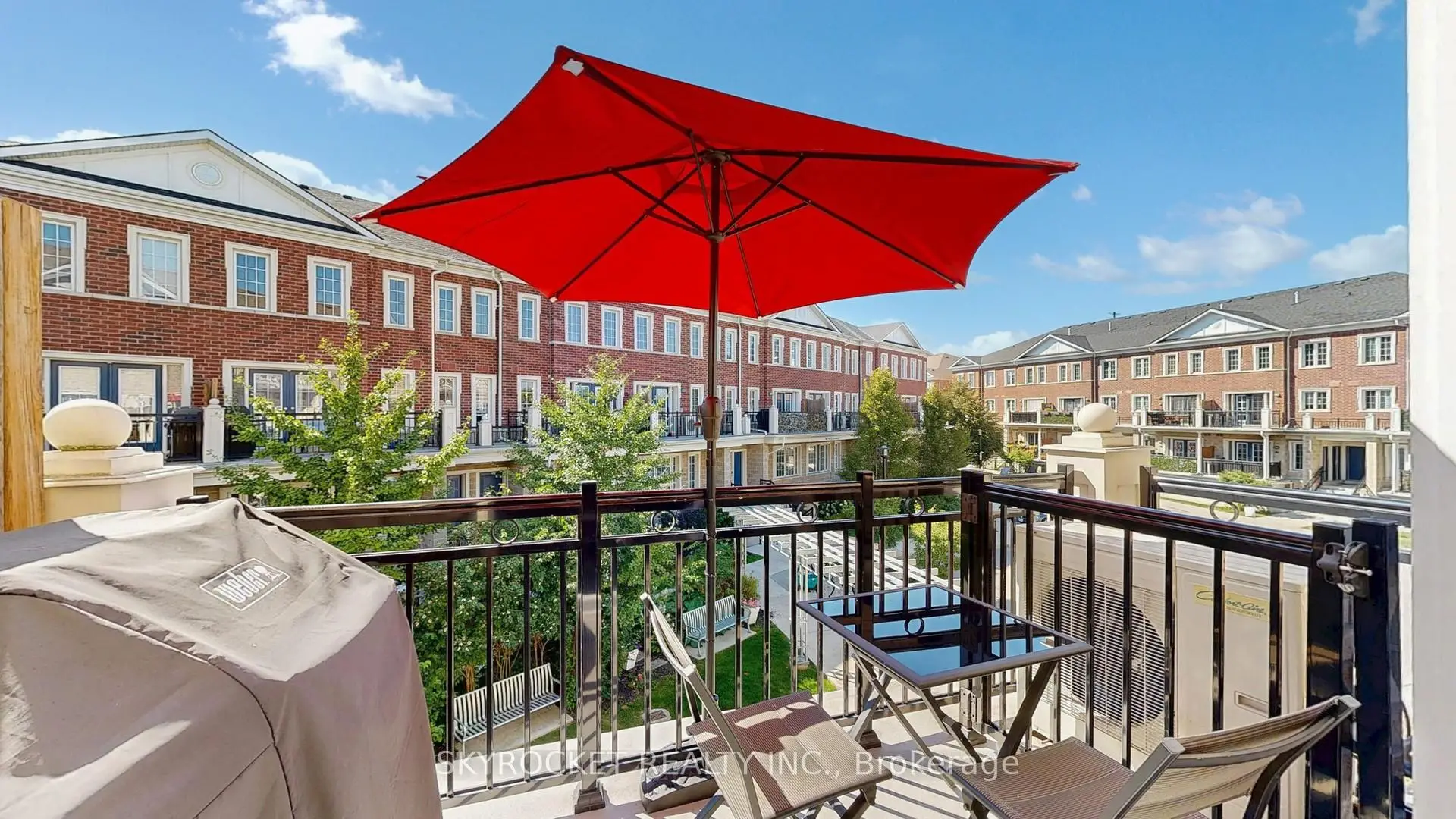 A Place to Call Home in the Heart of Woodbridge. This modern 2-bedroom, 2-bathroom multi-level Condo townhome combines style with everyday practicality. The main floor features a separate dining area, a spacious living room with custom built-in cabinets, and a sleek kitchen with quartz counters, stainless steel appliances, and a central island. From here, step out to your private balcony with a natural gas BBQ hookup, perfect for relaxed evenings or hosting friends overlooking the courtyard. Upstairs, the large primary bedroom includes a custom closet organizer, while the second bedroom offers its own Juliet balcony. Everyday comforts include in-unit laundry, a tankless water heater, central A/C, one parking space, and a storage locker, plus the added convenience of quick staircase access to the parking garage. Whether you're buying your first home or seeking a smart investment, this condo townhome offers comfort, convenience, and strong rental potential just steps to schools, shops, restaurants, parks, transit, and major highways. A perfect blend of lifestyle and location, ready to welcome its next owner.
