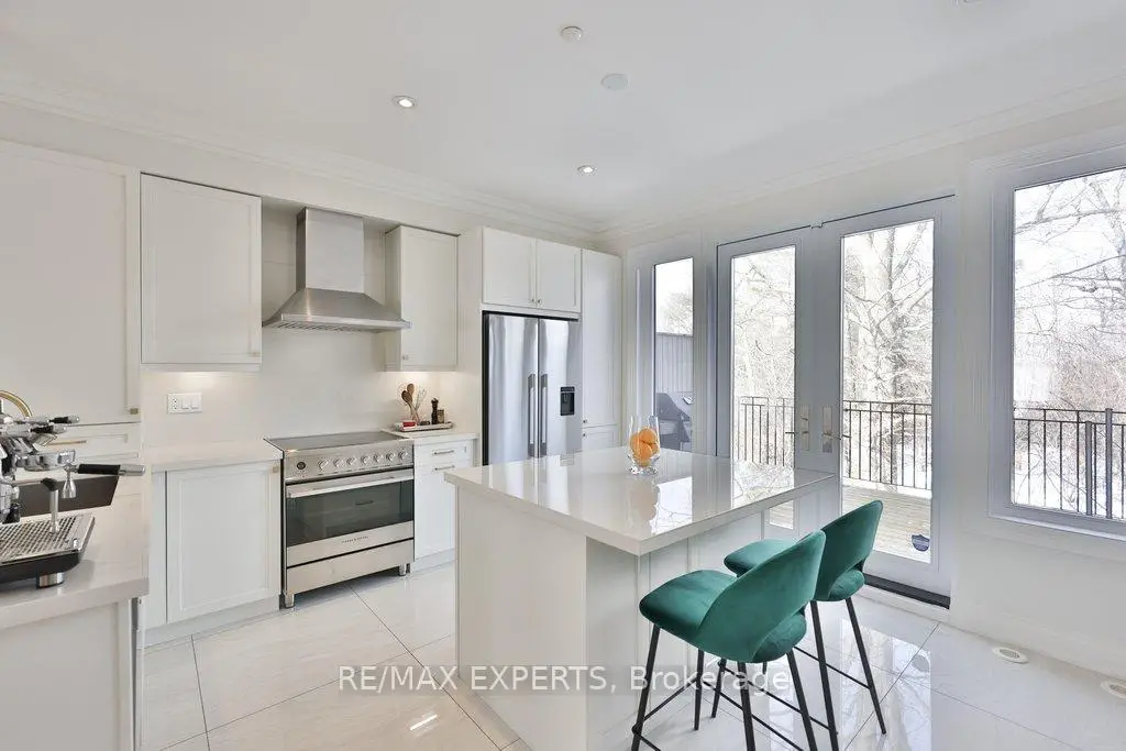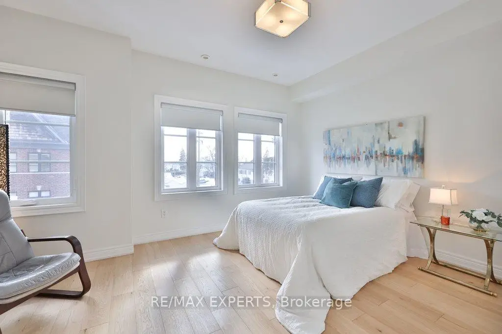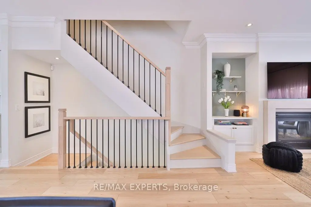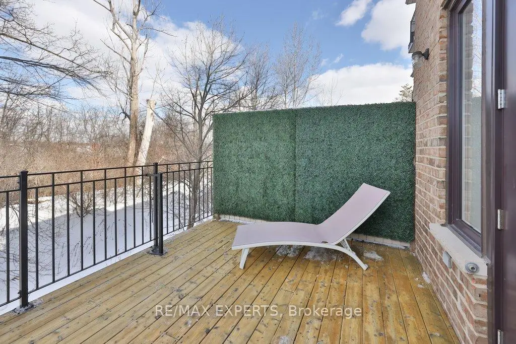 Exceptional design meets an exceedingly spacious floorplan in this executive townhouse backing onto a ravine and conservation. Rarely available true 4 bedroom unit with ground level suite that can be used as a 5th bedroom. Being an end-unit, this home is wider than its counterparts and is flooded with natural light throughout. No space in this home has been left untouched - brand new white oak flooring throughout, new windows and 8 ft tall sliding glass doors, a designer kitchen with high-end appliances and coffee station/servery, heated foyer floors, restoration hardware drapery, and a private primary retreat with custom walk-in closet to die for! Multiple rear walkouts on the home allow you to experience the tranquil ravine setting from almost anywhere in the house. The home features a finished ground level room (w/ bathroom & shower) with private access from the side of the house and leading out to the rear yard... a perfectly secluded space for older kids or in-laws - or as a home gym. Details in the home include: 9 foot smoothed ceilings throughout, pot lights, crown moulding, 32" porcelain tile floors in kitchen and foyer, custom-cabinetry in kitchen/walk-in closet/living room/foyer closet, insulated garage door, smoke and sprinkler system on all levels, custom white oak handrails and iron pickets, repainted in neutral pallet, gas outlet (& BBQ included) on rear deck, convenient laundry room on bedroom level with sink. Close to the conveniences of Market Lane shopping, banks, coffee shops, bakery, as well as Fortino's grocery and quick access to Hwy427 - it's hard to imagine a better spot to live!