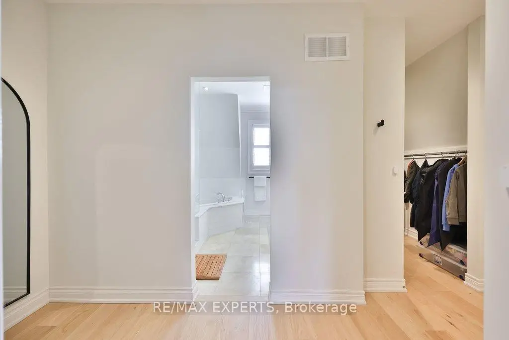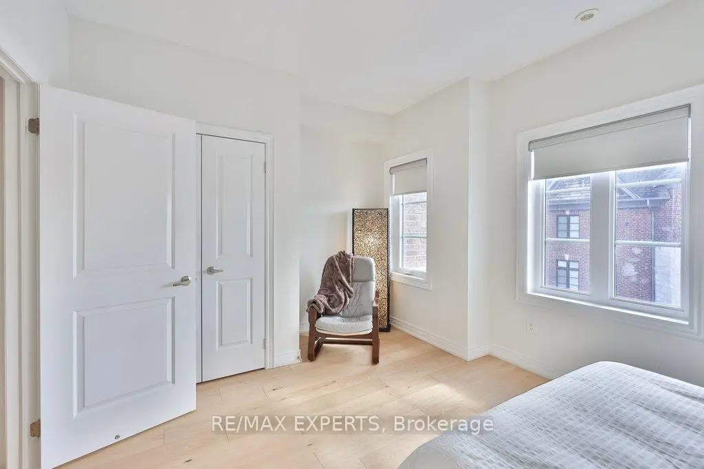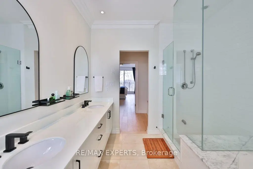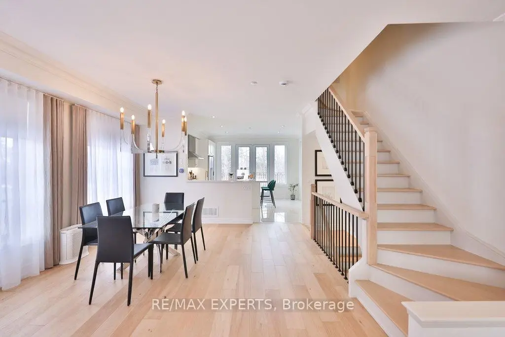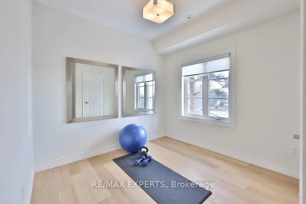 Exceptional design meets an exceedingly spacious floorplan in this executive townhouse backing onto a ravine and conservation. Rarely available true 4 bedroom unit with ground level suite that can be used as a 5th bedroom. Being an end-unit, this home is wider than its counterparts and is flooded with natural light throughout. No space in this home has been left untouched - brand new white oak flooring throughout, new windows and 8 ft tall sliding glass doors, a designer kitchen with high-end appliances and coffee station/servery, heated foyer floors, restoration hardware drapery, and a private primary retreat with custom walk-in closet to die for! Multiple rear walkouts on the home allow you to experience the tranquil ravine setting from almost anywhere in the house. The home features a finished ground level room (w/ bathroom & shower) with private access from the side of the house and leading out to the rear yard... a perfectly secluded space for older kids or in-laws - or as a home gym. Details in the home include: 9 foot smoothed ceilings throughout, pot lights, crown moulding, 32" porcelain tile floors in kitchen and foyer, custom-cabinetry in kitchen/walk-in closet/living room/foyer closet, insulated garage door, smoke and sprinkler system on all levels, custom white oak handrails and iron pickets, repainted in neutral pallet, gas outlet (& BBQ included) on rear deck, convenient laundry room on bedroom level with sink. Close to the conveniences of Market Lane shopping, banks, coffee shops, bakery, as well as Fortino's grocery and quick access to Hwy427 - it's hard to imagine a better spot to live!