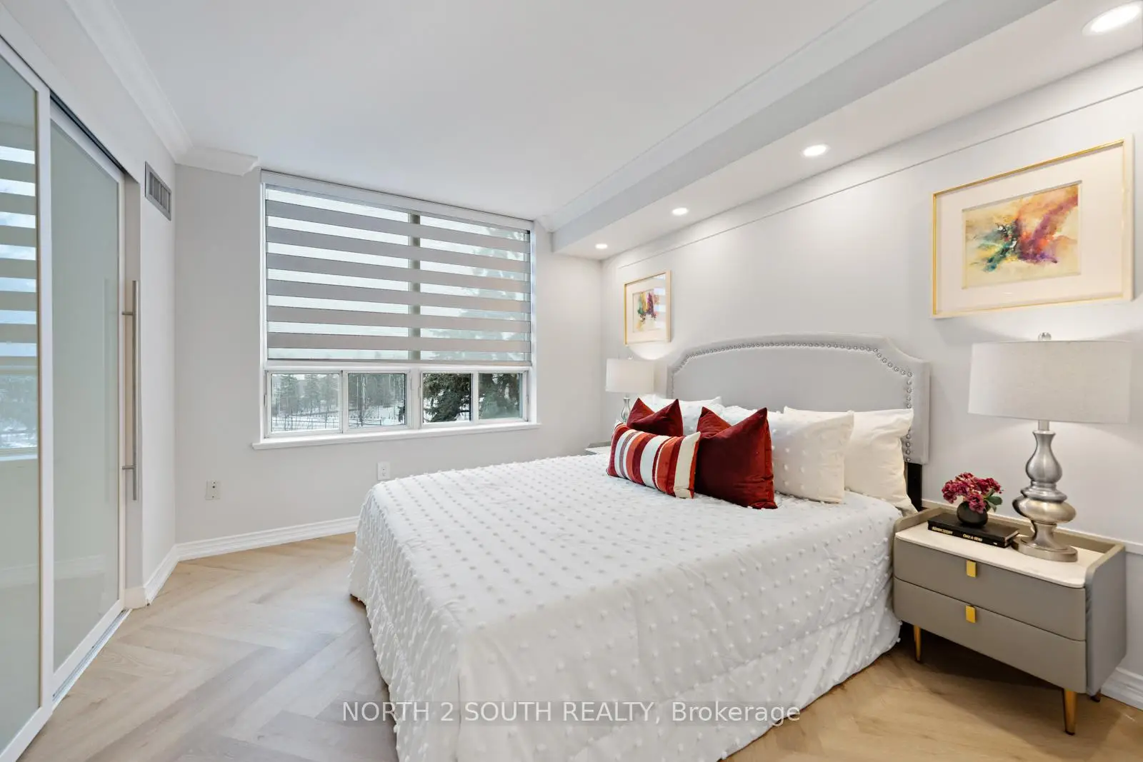 This Absolutely Stunning 2 Bed, 2 Bath Corner Unit Condo Has Been Renovated Top to Bottom With Quality Finishings and Attention to Detail! Never Lived in Since Complete Reno. Designer decorated,Open Concept literally Has It All, Just Move In and Enjoy. Spa-Like Primary Ensuite With Ceasarstone Counters and Backsplash, New S/S Appliances, New Washer and Dryer, High End Waterproof Herringbone floors, Tons of Lighting, New Interior Doors, Zebra blind Window Coverings, black out blinds in bedrooms, Crown Mouldings, Panelling, Closet Organizers, Parking Spot for 2 Cars.