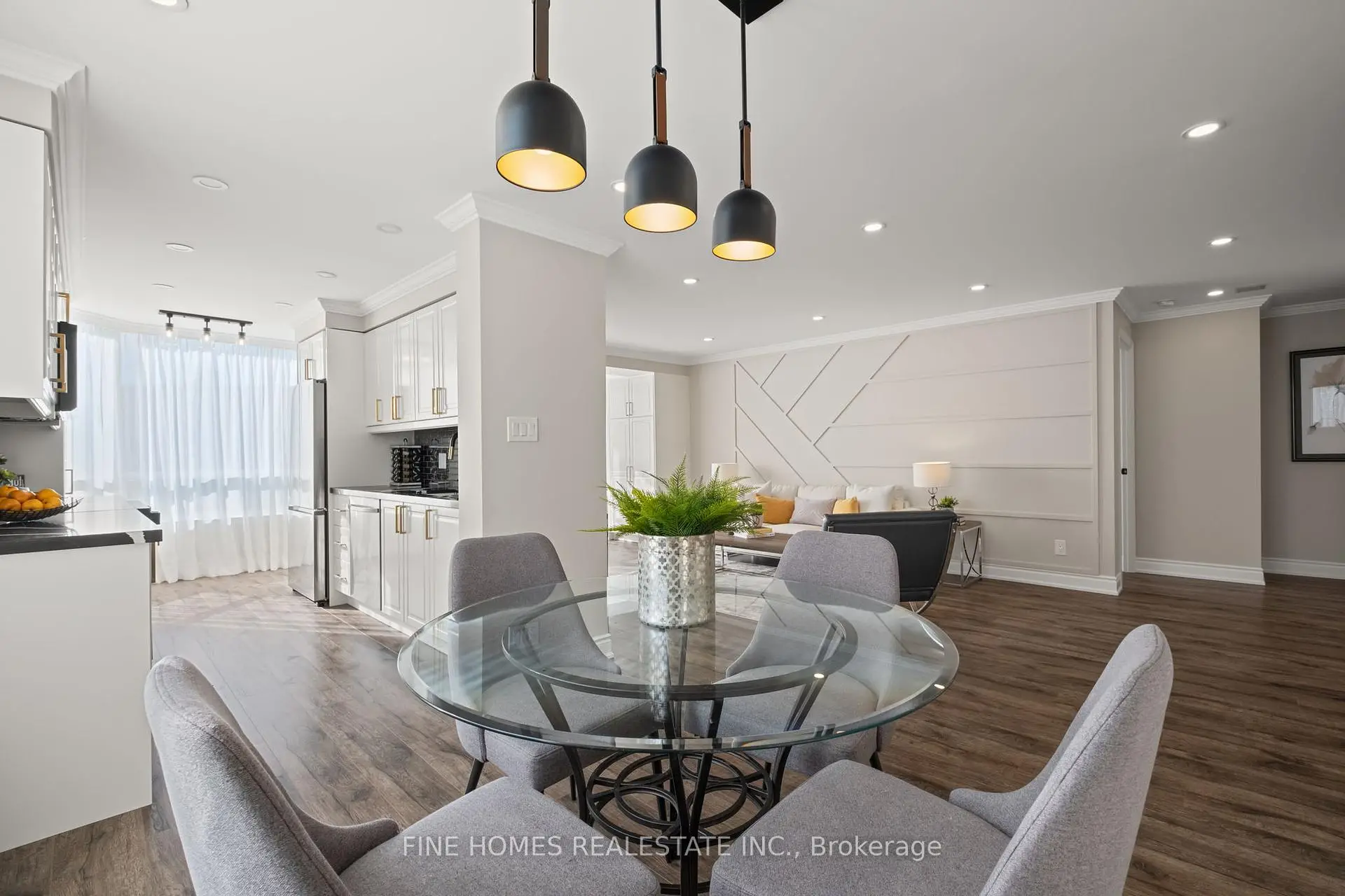 Fully Renovated Luxury Corner Suite! Stunning open-concept layout with a new kitchen featuring quartz countertops, stainless steel appliances, and premium finishes. Both bathrooms beautifully remodelled with sleek, modern design. Enjoy new flooring, LED pot lights, crown molding, and brand-new fan coil units throughout. Spacious primary bedroom with designer touches and custom built-ins. Truly a top-quality renovation-nothing overlooked.Located in a prestigious building with exceptional amenities: 24-hour gatehouse & security, pool, gym, sauna, tennis/squash courts, party & meeting rooms, library, guest suite, and ample visitor parking.Move-in ready and a rare opportunity in an unbeatable location!