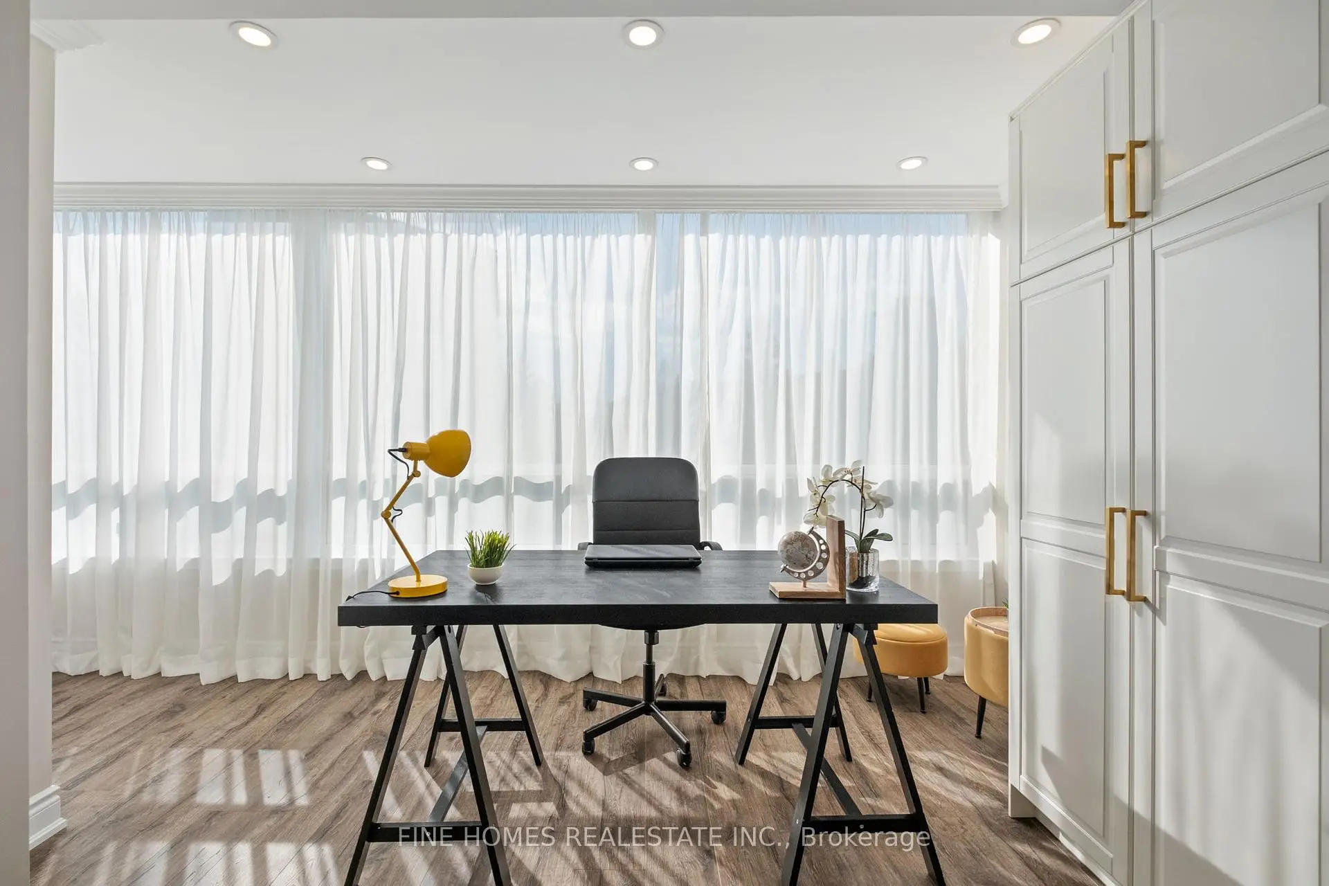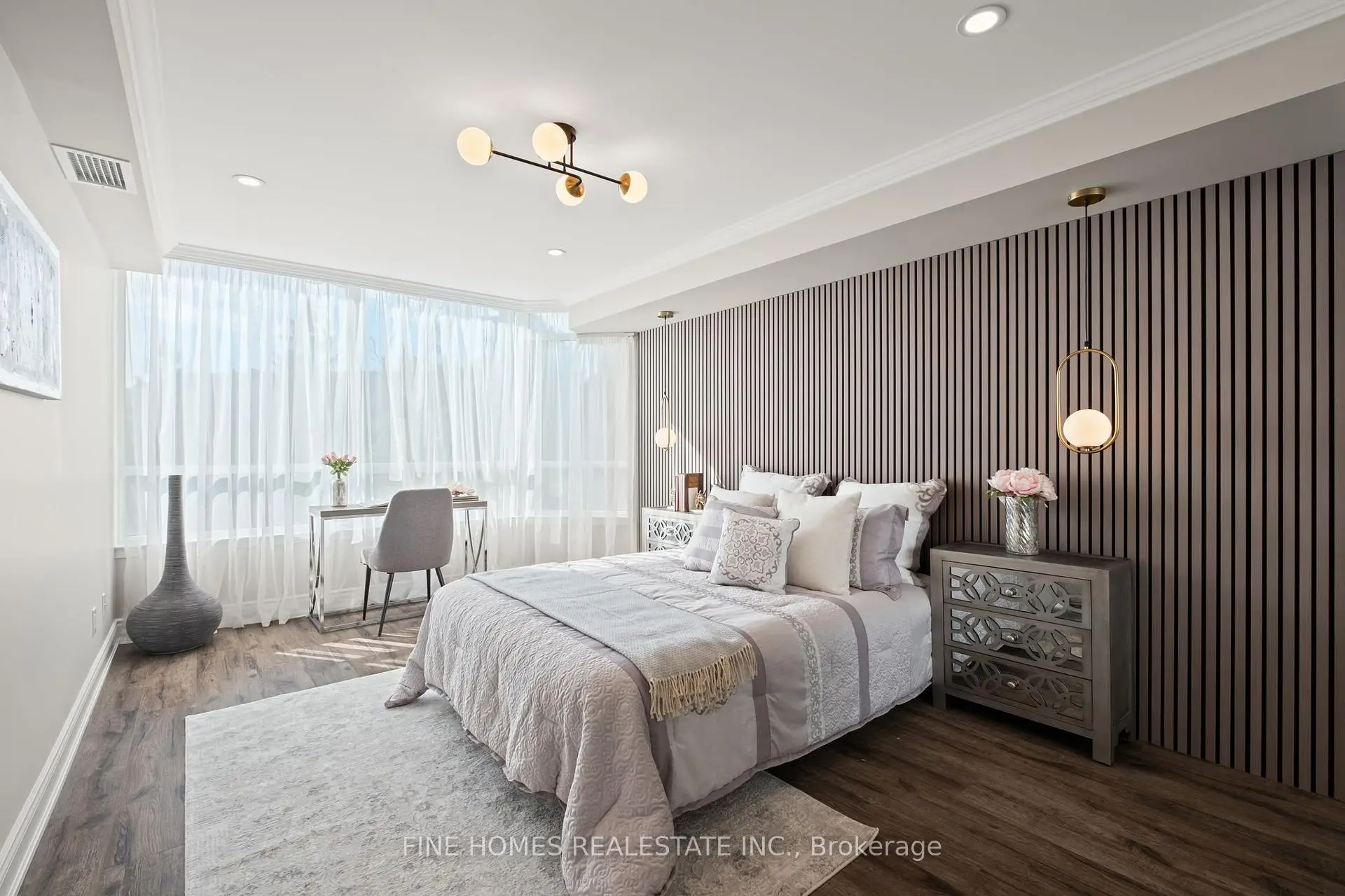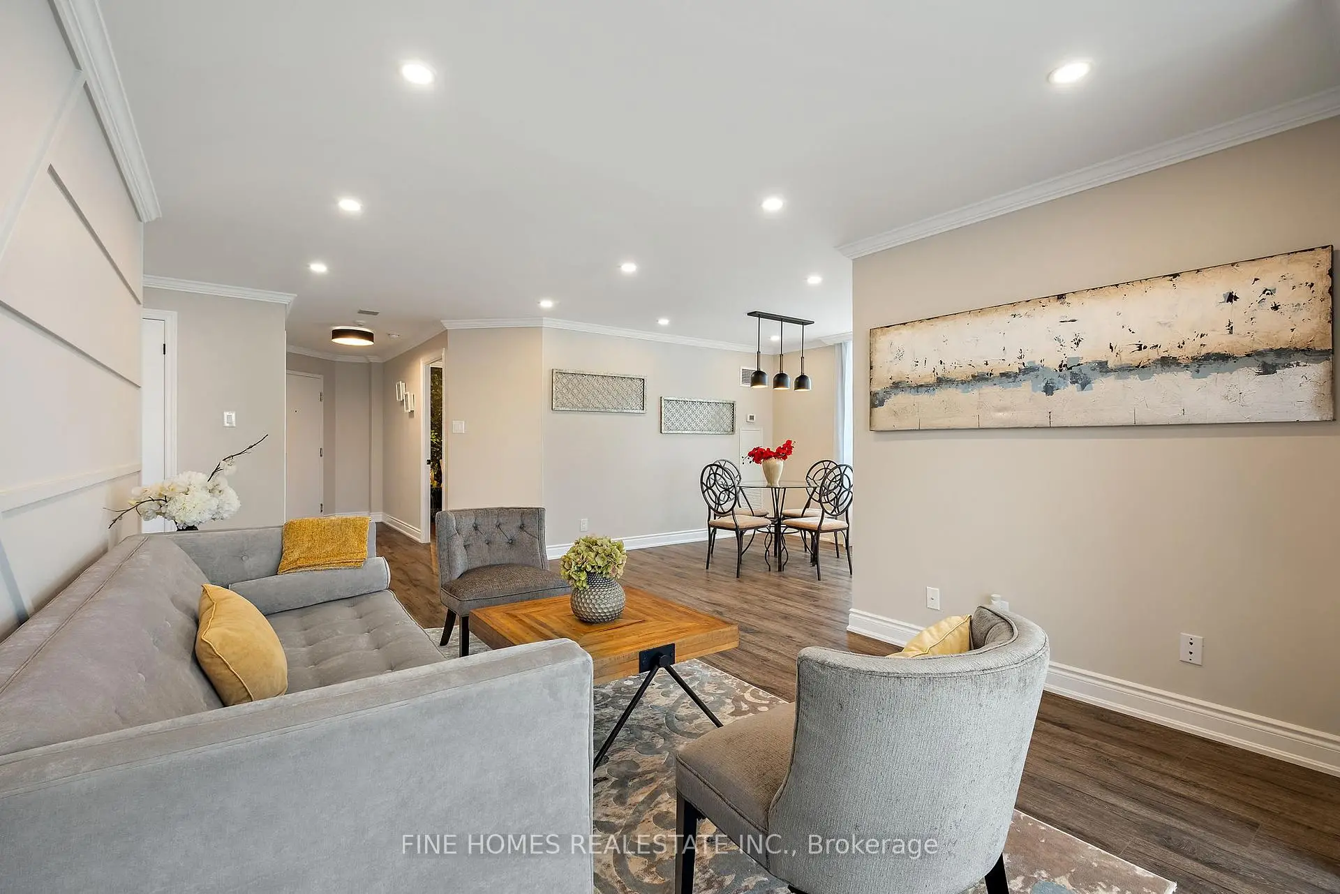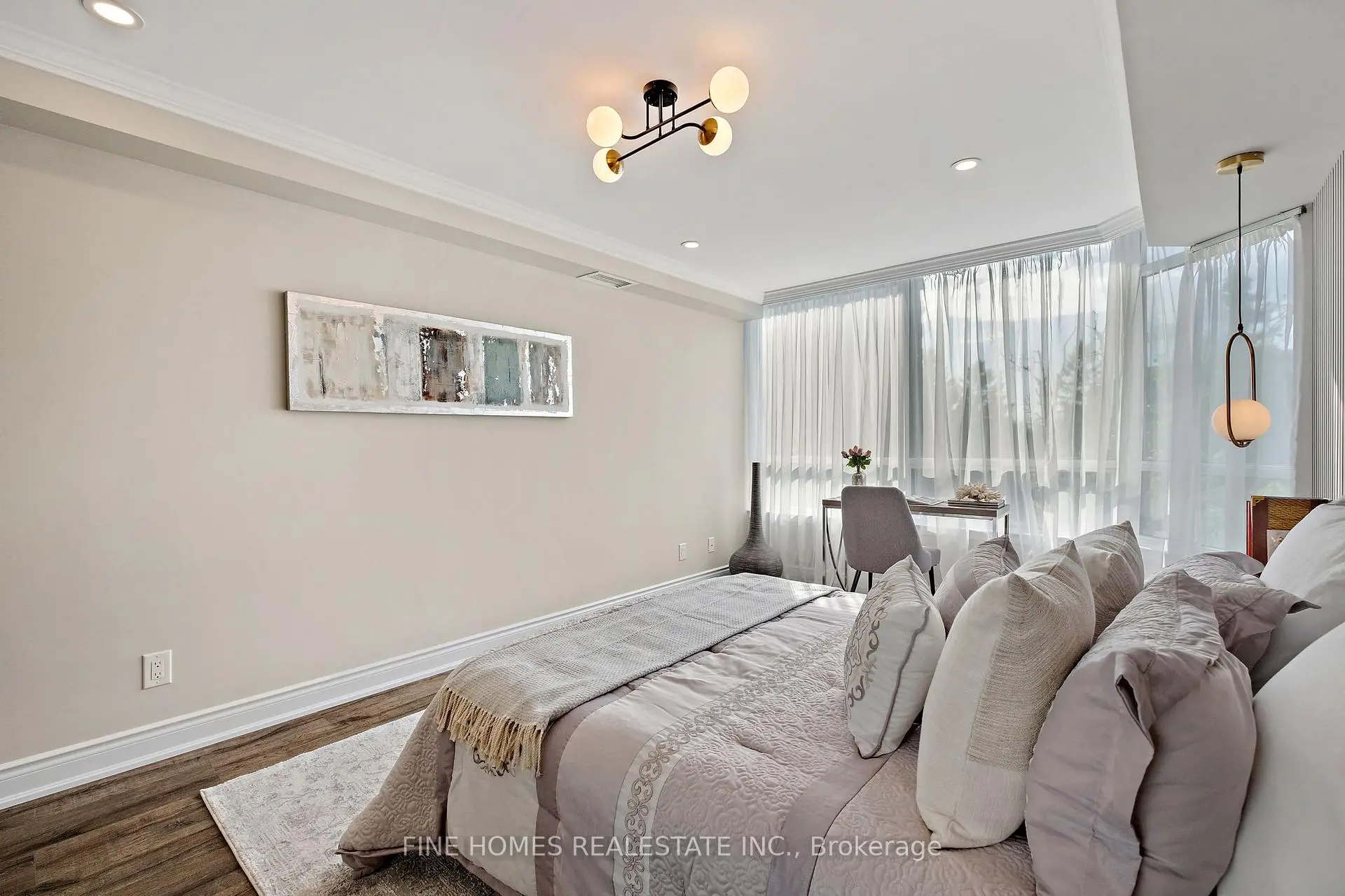 Fully Renovated Luxury Corner Suite! Stunning open-concept layout with a new kitchen featuring quartz countertops, stainless steel appliances, and premium finishes. Both bathrooms beautifully remodelled with sleek, modern design. Enjoy new flooring, LED pot lights, crown molding, and brand-new fan coil units throughout. Spacious primary bedroom with designer touches and custom built-ins. Truly a top-quality renovation-nothing overlooked.Located in a prestigious building with exceptional amenities: 24-hour gatehouse & security, pool, gym, sauna, tennis/squash courts, party & meeting rooms, library, guest suite, and ample visitor parking.Move-in ready and a rare opportunity in an unbeatable location!