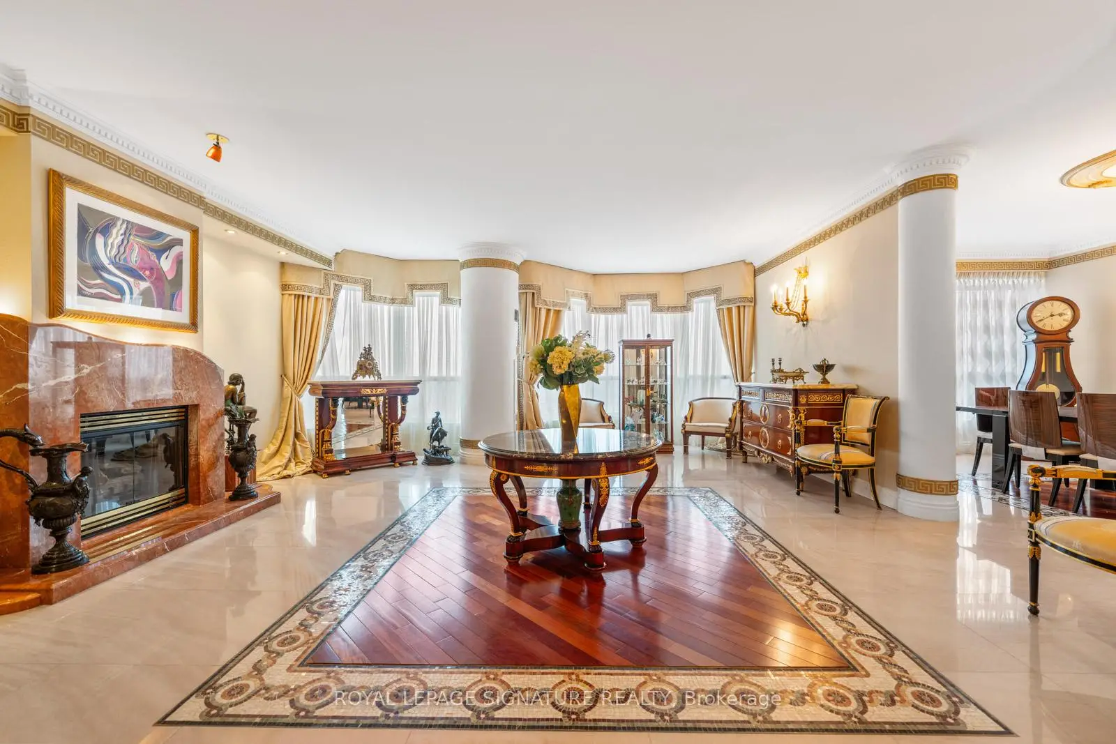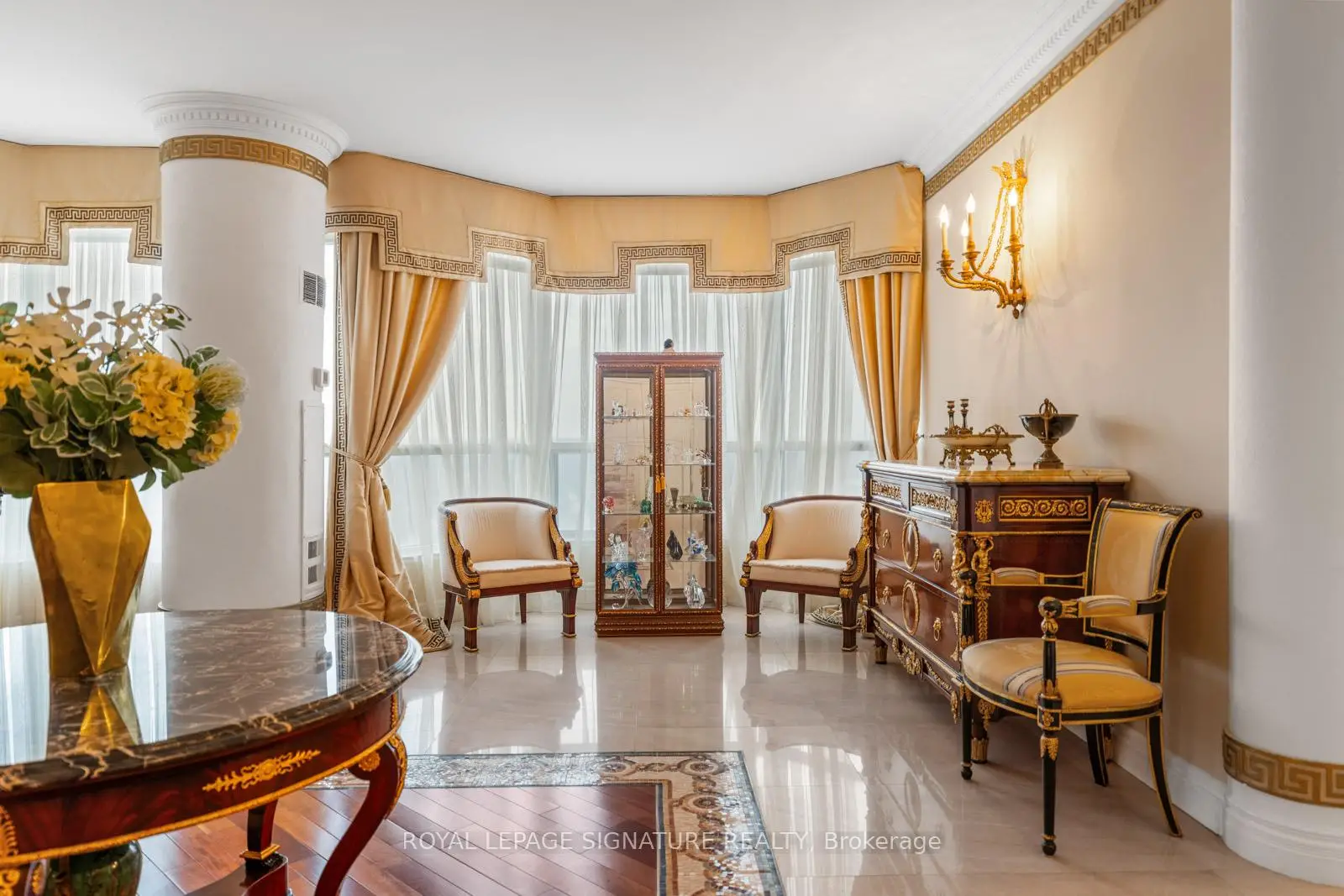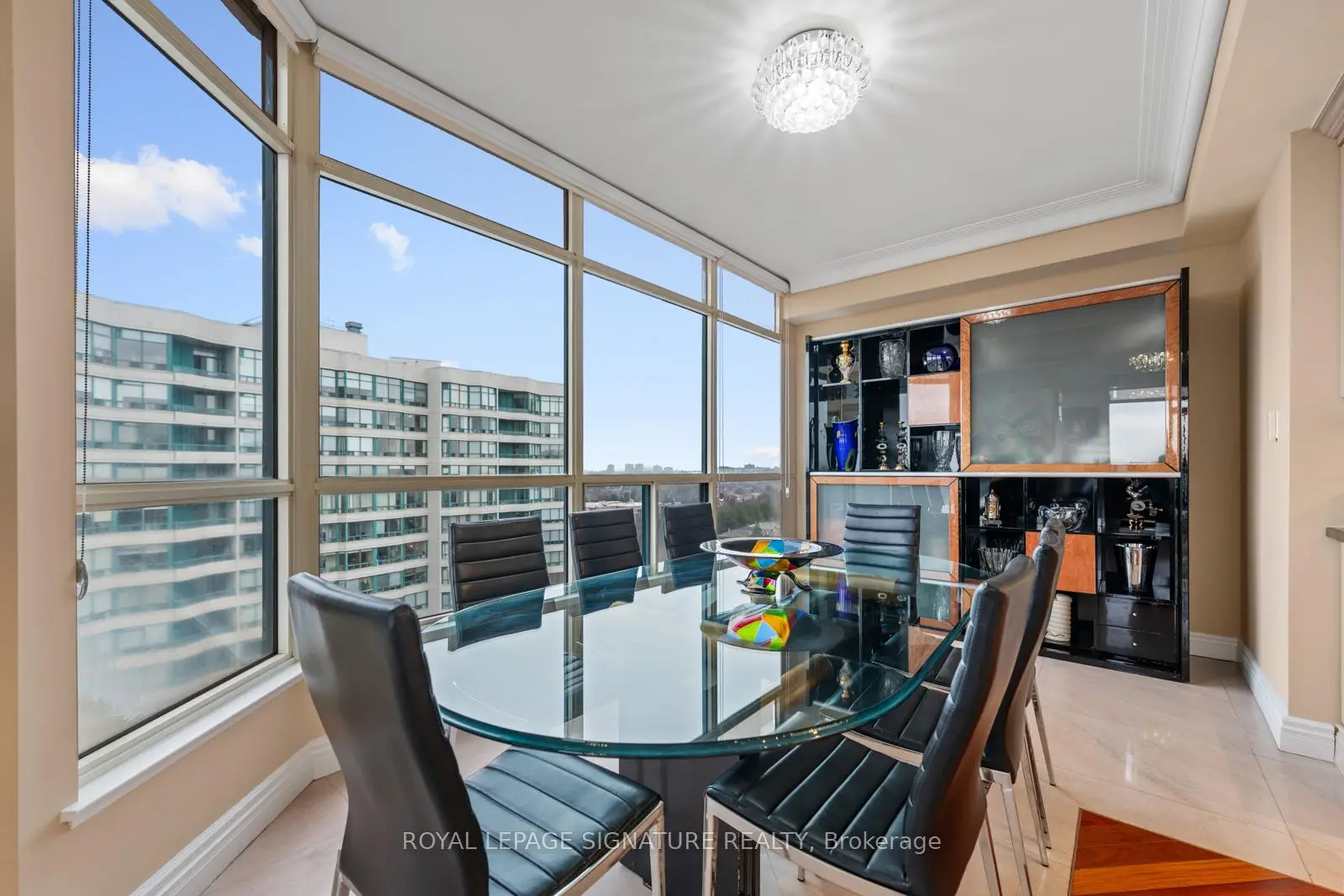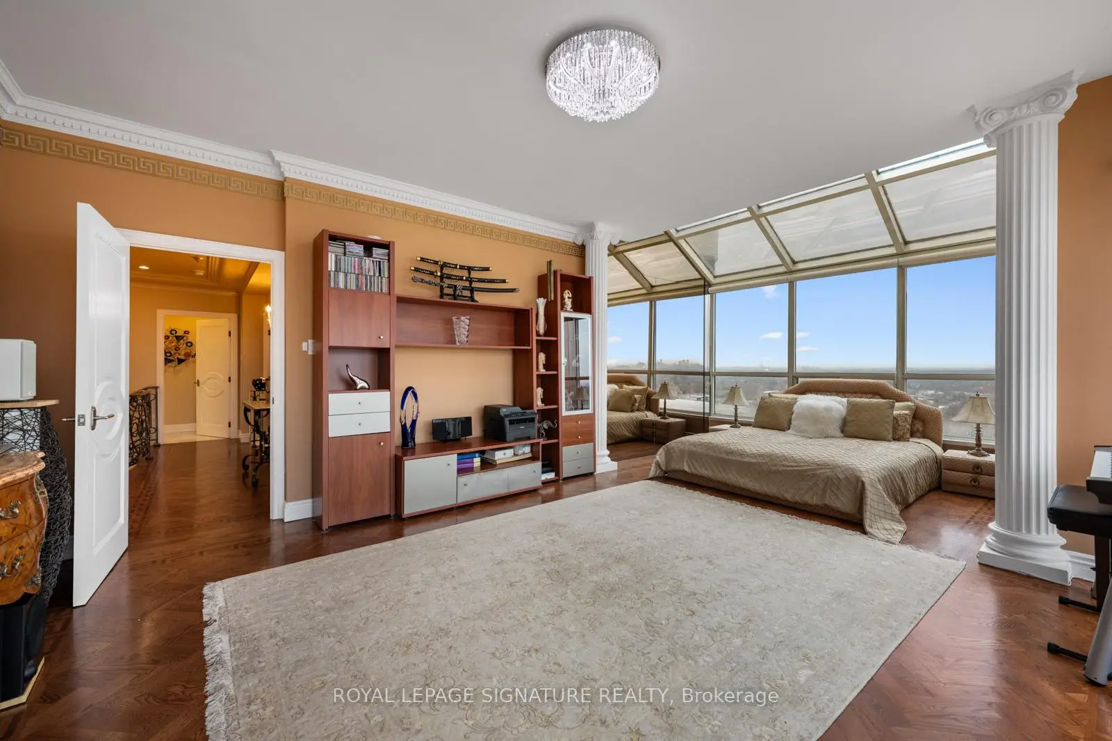 Welcome to 7300 Yonge Street, PH9 - Skyrise on Yonge, a rarely available, one-of-a-kind 2-storey penthouse offeringapproximately 3,620 sq. ft. of luxurious living space in the heart of Thornhill.This bright corner suite is an entertainer's dream, featuring breathtaking panoramic south-east views and an impressive grandfoyer with mosaic inserts in both ceiling and flooring. The residence offers 2 spacious bedrooms plus a solarium and 3 beautifullyrenovated bathrooms.Designed with exceptional craftsmanship and upscale finishes throughout, this home showcases a gourmet kitchen, elegantliving and dining areas with crown mouldings and architectural columns, and a striking floating wrought iron staircase. Theprimary suite is a private retreat, complete with a picture-window sitting area and sauna.Enjoy seamless indoor-outdoor living with a private terrace on the second floor and an additional balcony off the family room.Additional features include two parking spaces, a locker, and a large laundry room with ensuite storage.All-inclusive maintenance fees cover utilities plus TV, internet, and telephone.Residents enjoy premium amenities including an indoor pool, gym, party room, tennis and squash courts, and guest suites.Ideally located with TTC at your doorstep, and close to shopping, dining, and places of worship.A truly exceptional residence offering space, elegance, and convenience-showing to perfection.
