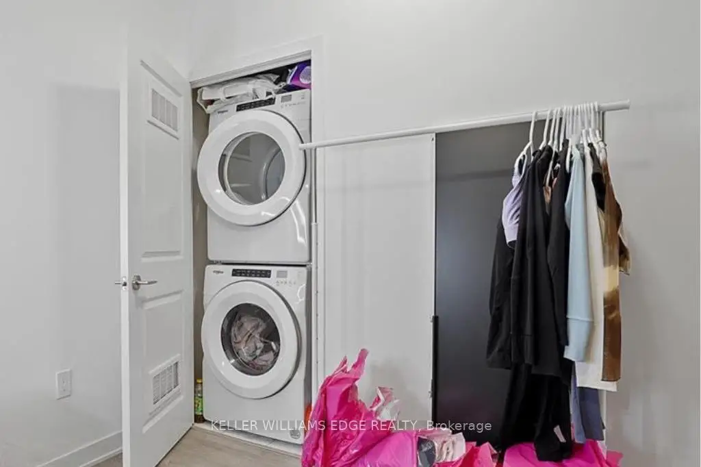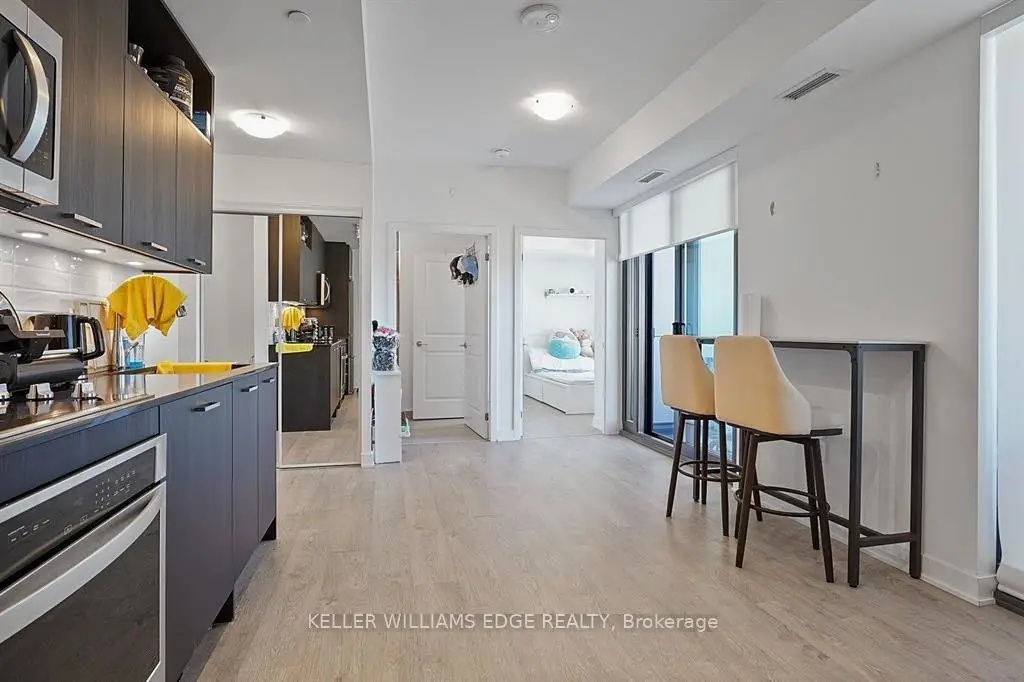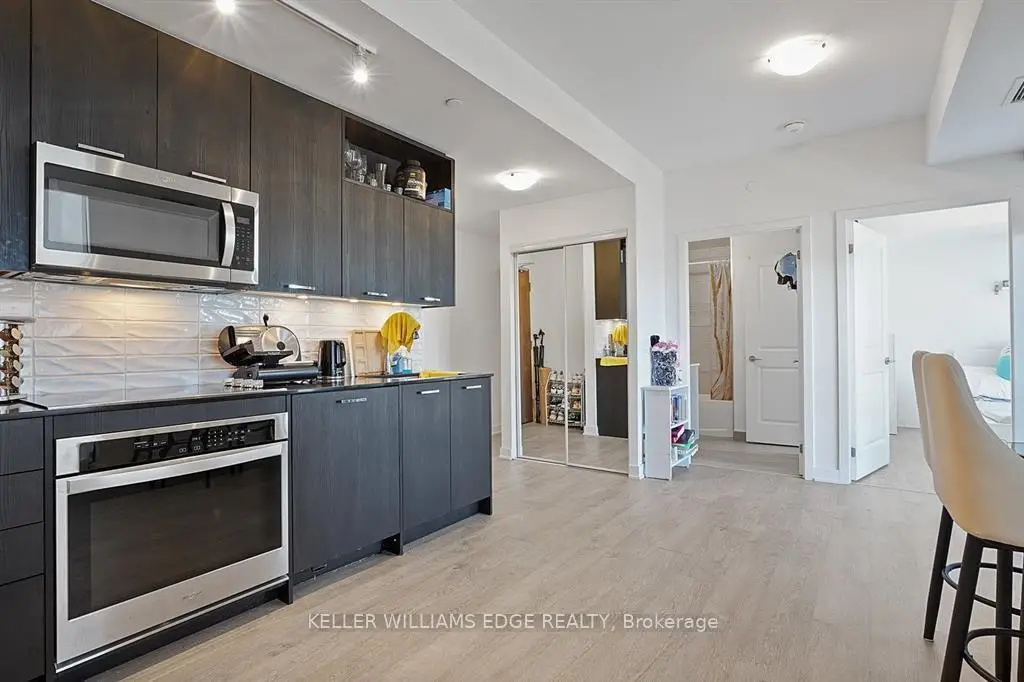 This spacious 1+den just a short 2-minute walk to Maple GO Station, offering incredible convenience for commuters. This bright unit features large windows and a generous balcony, filling the space with natural light. The den is comparable in size to the primary bedroom, making it ideal for a second bedroom or home office.The modern kitchen is equipped with high-end built-in appliances, and the smart layout gives the bathroom an ensuite feel. The primary bedroom includes a walk-in closet for added storage.Residents enjoy access to great amenities including a gym, green roof, party room, concierge, and visitor parking. Includes 1 parking space and 1 locker for added convenience.