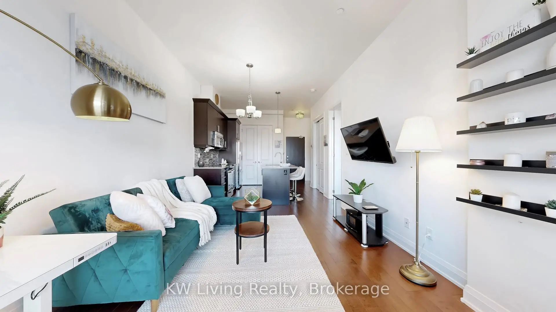 Elevated living in the heart of Aurora Village at the boutique Centro Condos. This bright and beautifully designed suite offers a functional open-concept layout with soaring ~10 ft ceilings, creating an airy and refined atmosphere. California shutters and expansive windows fill the space with natural light. The elegant kitchen features quartz countertops, crown moulded cabinetry, a glass backsplash, and an oversized island with breakfast bar-perfect for entertaining. The spacious bedroom includes a walk-in closet and semi-ensuite access to a full bath. Step outside to your generous ~100 sq ft private terrace-ideal for enjoying peaceful morning coffee. Enjoy exceptional walkability just steps to Yonge Street shops, restaurants, cafés, parks, and An ideal opportunity for first-time buyers, downsizers, or investors seeking a stylish, low everyday essentials. Minutes to Aurora GO Station, transit, and convenient access to Hwy 404. An ideal opportunity for first-time buyers, downsizers, or investors seeking a stylish, low maintenance home in a prime location with strong rental appeal.