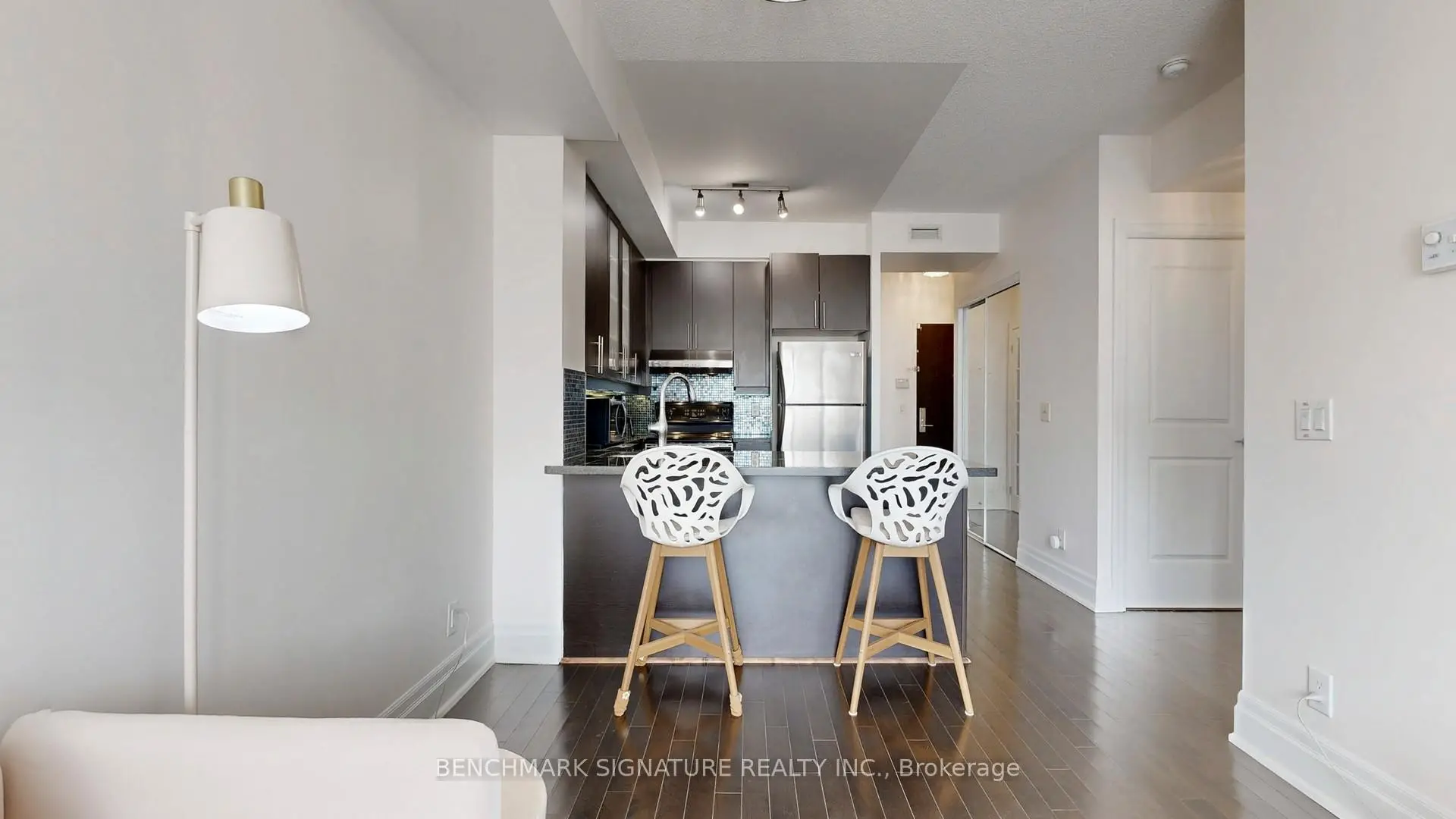 Welcome to Rouge Bijou Promenade in the heart of Downtown Markham! This functional 1+Den layout features soaring 9ft ceilings and a bright north exposure. The spacious den is enclosed with a French door, making it a perfect private home office or guest room. Open-concept kitchen with granite counters, stainless steel appliances, and a functional breakfast bar. Steps to Cineplex, VIP Cinemas, top-tier dining, and the York University Markham campus. Minutes to Unionville GO, Viva, and Hwy 407/404. Includes 1 parking and 1 locker. Well-managed building with premium amenities: 24hr concierge, fully-equipped gym, golf simulator, theatre, and guest suites. Perfect for first-time buyers or investors. Move-in ready