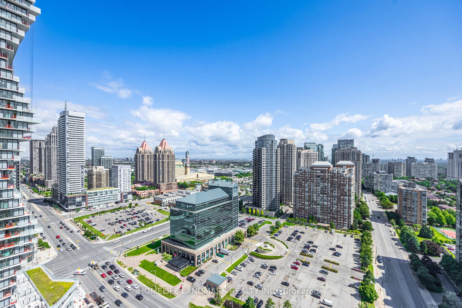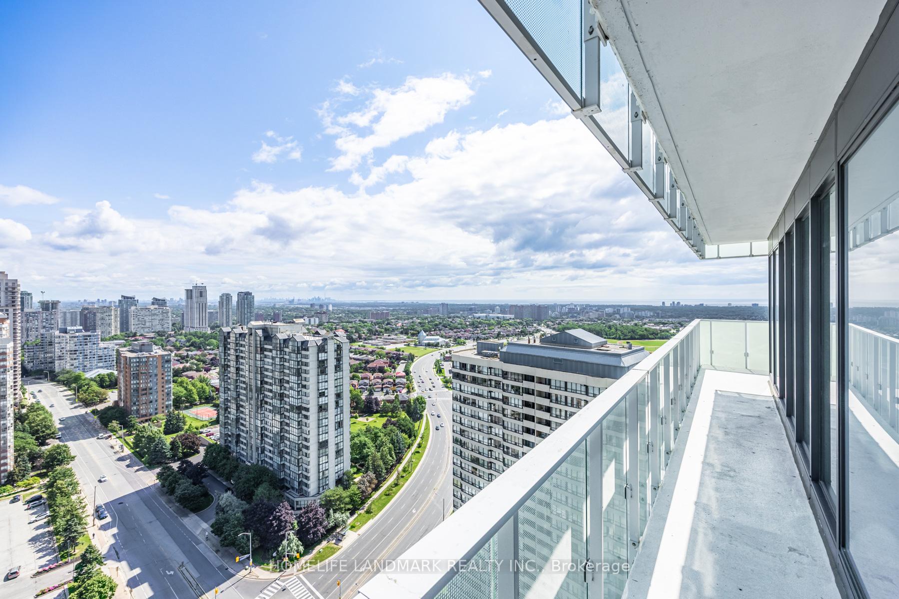 Welcome to M City2, an architectural icon and proud winner of the 2024 CTBUH Award of Excellence Best Tall Building. This stunning 2-bedroom + den corner suite offers one of the most sought-after floor plans in the building, with a 290+ sq. ft. wrap-around balcony showcasing breathtaking 270 panoramic views of Mississauga City Centre, the Toronto skyline, and Lake Ontario. The den is enclosed with a sliding door and window, making it a perfect private office or flexible third room. Builder upgrades include 4 ceiling outlets for added lighting design options and premium upgraded tiles in both bathrooms for a sleek, modern finish. The open-concept kitchen, dining, and living areas create an elegant flow ideal for both everyday living and entertaining. Residents of M City2 enjoy a wealth of 5-star amenities, including rooftop terrace, outdoor swimming pool, basketball court, hotel-style concierge, children's playroom, meeting rooms, fitness facilities, and more. Located in the heart of Mississauga, this residence puts you steps from Square One Mall, Celebration Square, Sheridan College, Living Arts Centre, YMCA, library, T&T, restaurants, parks, schools, movie theatre, future LRT, and the GO Transit Terminal. This is your chance to embrace luxury, convenience, and urban living at its finest in an award-winning community. Don't miss out on this extraordinary condo at M City2!