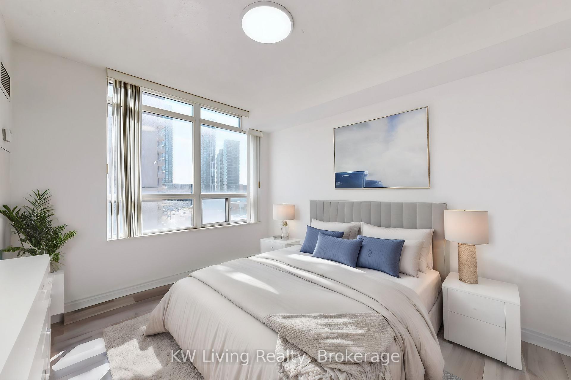 Why Settle For 2 Bedrooms Or 1 Parking? 3 Bedroom + Den & 2 Parking Spacious ~1100 Sq.Ft South Facing Quiet Corner Unit. Wonderful clear views from balcony with green space below. Just renovated, brand new S/S appliances, quartz countertop, undermount sink, laminate flrs, lower maintenance fees incl utilities. Enjoy The Great Amenities @ Tridel Built Ovation II: Bowling, Billiards, Theatre, Pool & Gym, Guest Suites, Party Room, And More! Central City Centre Location, Across The Street From Celebration Sq, Central Library, Art Gallery, Arts Centre, Sq.1, Sheridan College, Kariya Park, Future LRT City Centre loop, "Exchange District"
