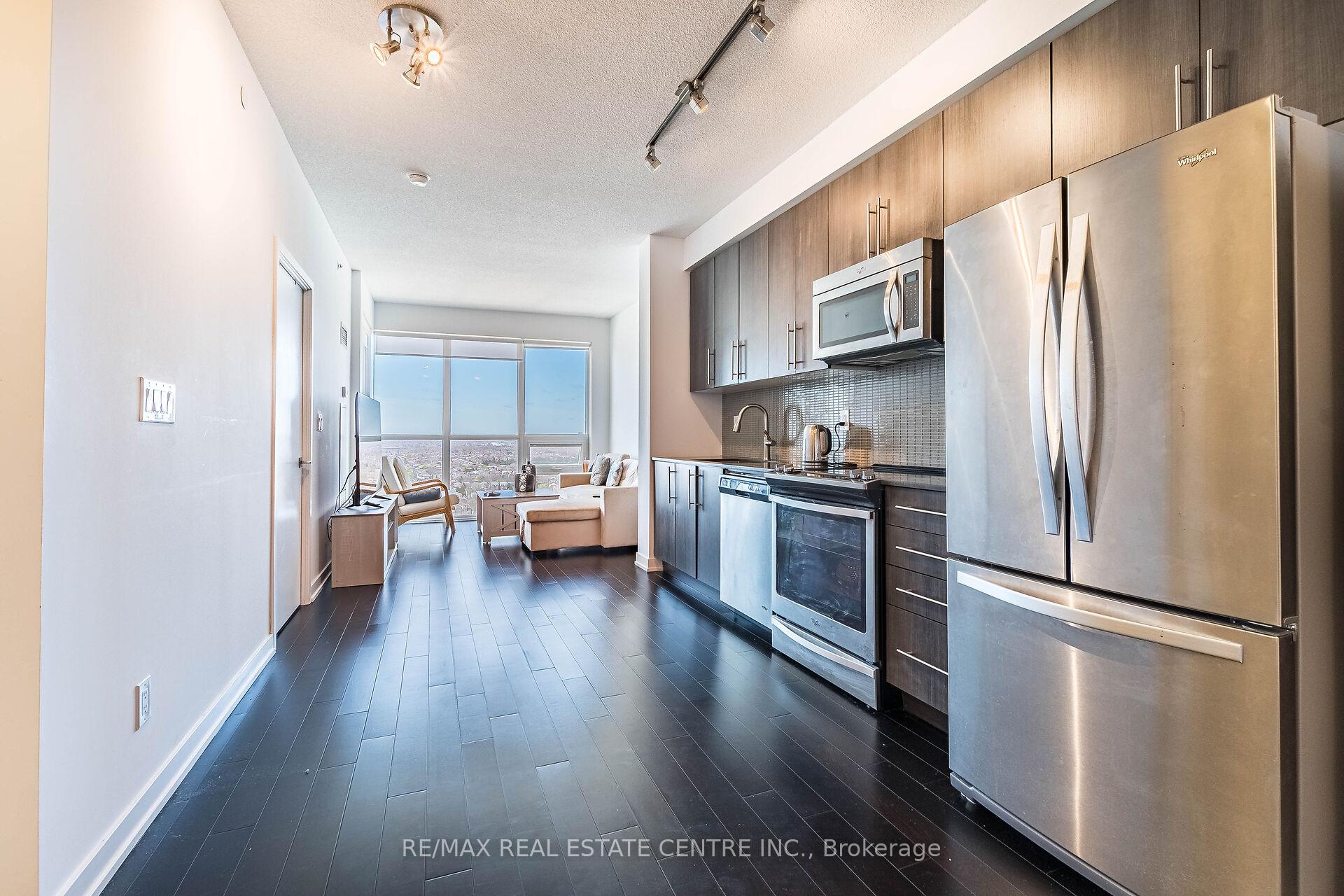 Welcome to 4011 Brickstone Mews, a modern 1-bedroom, 1-bathroom condo located in the heart of Mississaugas vibrant City Centre. This bright and stylish unit features an open-concept layout with floor-to-ceiling windows that fill the space with natural light. The contemporary kitchen offers sleek cabinetry, stainless steel appliances, perfect for both everyday living and entertaining. The cozy bedroom provides comfort and privacy, while the well-appointed bathroom adds a touch of elegance. Step out onto your private balcony and enjoy stunning city views. Residents of this sought-after building enjoy exceptional amenities including a fitness centre, indoor pool, party room, theatre, concierge, and more. One step away from Square One Shopping Centre, Sheridan College, restaurants, parks, and public transit, this condo offers the ultimate in convenience and urban living. Perfect for first-time buyers, investors, or anyone looking to enjoy a modern lifestyle in one of Mississaugas most desirable locations!